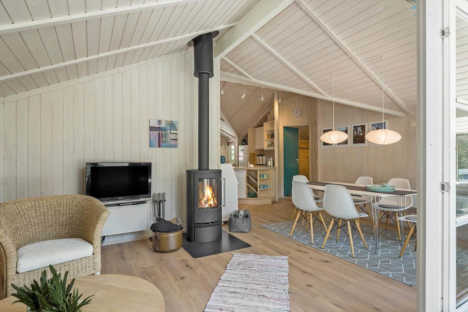 Die Ferienwohnung in Sømarken, Bornholm, bietet Platz für bis zu 6 Personen und überzeugt mit einer durchdachten Raumaufteilung auf 80 m². Drei einladende Schlafzimmer, ausgestattet mit zwei Doppelbetten, zwei Einzelbetten und einem Kinderbett, sorgen für erholsame Nächte. Der großzügige Wohnbereich mit Kamin lädt zum Verweilen ein und ist ideal für gemeinsame Stunden. Die offene Küche ist komplett ausgestattet und verfügt über einen Geschirrspüler, Elektro-/Gasherd, Kühlschrank, Mikrowelle und eine Kaffeemaschine, sodass die Urlaubsgäste alle Annehmlichkeiten genießen können. Das moderne Duschbad ergänzt die Ausstattung, die auch eine Waschmaschine sowie Fußbodenheizung umfasst. Für Unterhaltung sorgt der TV. WLAN hält die Gäste mit der Welt verbunden. Die Unterkunft bietet zudem eine Sauna und ist nur 320 Meter vom Strand entfernt. Ein Kinderhochstuhl ist ebenfalls vorhanden.