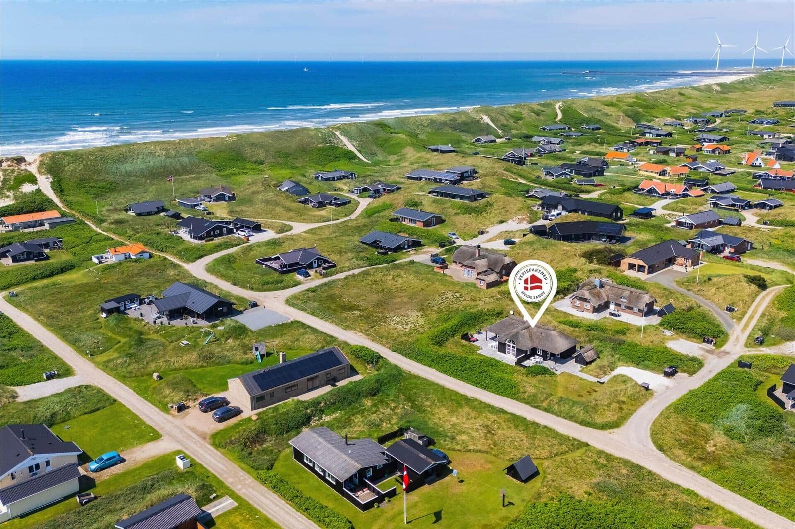 Die Ferienwohnung befindet sich in einer malerischen Küstenregion, nur wenige Kilometer von der beliebten Stadt Hvide Sande entfernt. Diese Lage bietet eine optimale Anbindung an den Strand, der nur etwa 1,5 Kilometer entfernt ist, und lädt zu erholsamen Spaziergängen oder ausgedehnten Strandtagen ein. In Hvide Sande, etwa 2 Kilometer entfernt, gibt es zahlreiche Restaurants, Geschäfte und Möglichkeiten für Wassersportaktivitäten wie Surfen und Angeln. Die Umgebung ist ideal für Radfahrer und Wanderer, mit abwechslungsreichen Wegen entlang des Wassers und durch die naturnahen Landschaften. Auch der nahe gelegene Nationalpark Thy ist in ca. 15 Minuten mit dem Auto erreichbar und bietet weitere Freizeitmöglichkeiten in unberührter Natur. Die Anreise erfolgt bequem über die gut ausgebauten Straßen, die Hvide Sande mit umliegenden Städten verbinden.