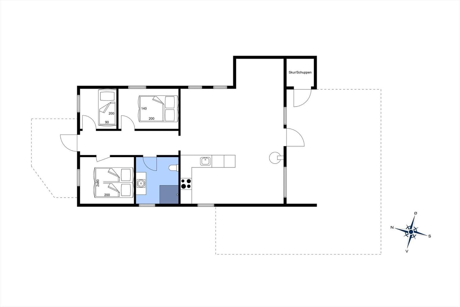 Die Ferienwohnung in Aargab bietet eine perfekte Kombination aus modernem Komfort und gemütlicher Atmosphäre. Die offene Küche ist ausgestattet mit Geschirrspüler, Elektro-/Gasherd, Kühlschrank und Kaffeemaschine, ideal für die Zubereitung von Mahlzeiten. Der Wohnbereich besticht durch große Giebelfenster, die einen Blick auf die umliegenden Dünen ermöglichen, sowie einen Holzofen und Fußbodenheizung. Die Wohnung verfügt über drei Schlafzimmer mit bequemen Betten für bis zu fünf Personen und ein helles, neu renoviertes Duschbad. Zur Unterhaltung stehen ein TV sowie ein DVD/Blu Ray-Player zur Verfügung. WLAN sorgt für hohen Komfort, während die Waschmaschine praktische Unterstützung bietet. Die nach Südwesten ausgerichtete Terrasse ist ideal für entspannte Stunden im Freien. Auf dem 1200 m² großen Naturgrundstück ist auch ein Parkplatz vorhanden, und Haustiere sind willkommen.