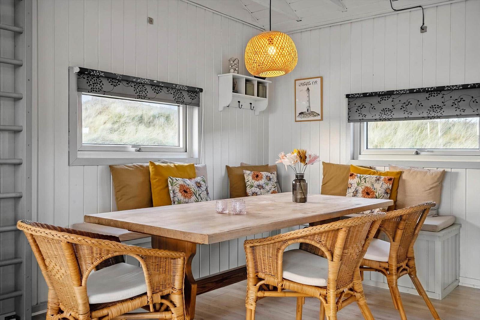 Die Ferienunterkunft in Aargab, Westjütland, besticht durch ihre ruhige Lage in unmittelbarer Nähe zum Strand, der nur 200 Meter entfernt liegt. Hier können die Gäste entspannen und die frische Meeresluft genießen. Die Umgebung bietet zahlreiche Freizeitmöglichkeiten, wie lange Spaziergänge oder Radfahren entlang der Küste. Einkaufsmöglichkeiten sind in nur 3.000 Metern erreichbar, was den Aufenthalt besonders komfortabel gestaltet. Die Unterkunft selbst befindet sich auf einem großzügigen 1.200 m² großen Grundstück, das mit einer Schaukel ausgestattet ist, ideal für Familien mit Kindern. Für eine komfortable Anreise steht den Gästen eine gute Verkehrsanbindung zur Verfügung, sodass sowohl die Anreise mit dem Auto als auch die Nutzung öffentlicher Verkehrsmittel problemlos möglich ist. Die Kombination aus der gemütlichen Einrichtung und der attraktiven Lage macht diese Ferienwohnung zu einem idealen Rückzugsort für Erholungssuchende.