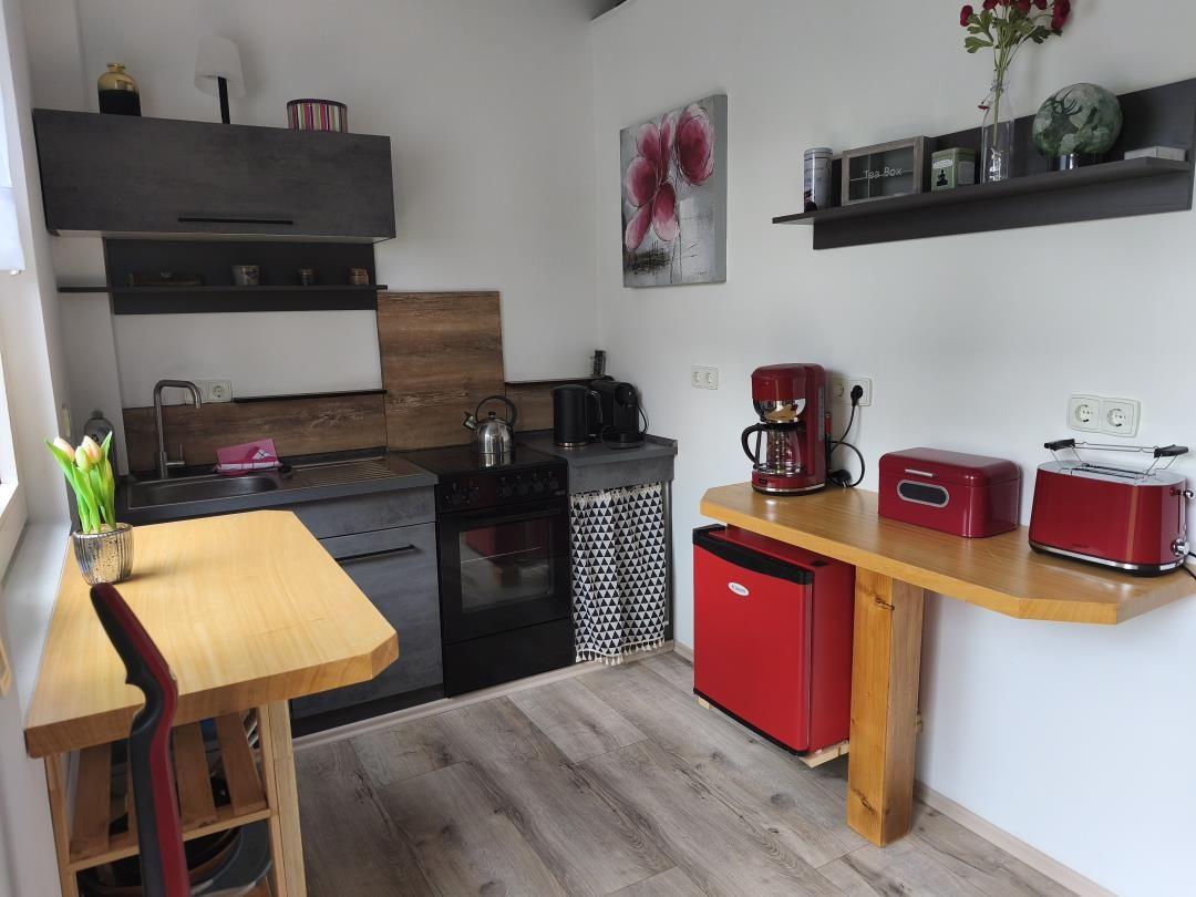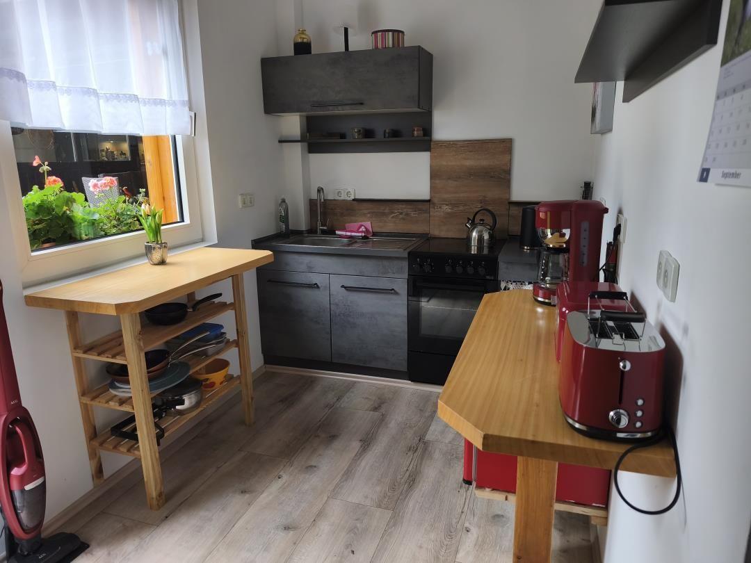 Die Ferienwohnung bietet ein harmonisches Ambiente mit hochwertigen Ausstattungsmerkmalen, die den Aufenthalt angenehm gestalten. Sie verfügt über ein separates Schlafzimmer mit einem komfortablen Doppelbett, ideal für erholsame Nächte. Die helle, gut ausgestattete Küche lädt zum Kochen ein und ist mit einem Elektro-/Gasherd, Backofen, Kühlschrank, Kaffeemaschine, Wasserkocher, Toaster sowie einer Gefriermöglichkeit ausgestattet. Das moderne Duschbad sorgt für einen erfrischenden Start in den Tag. Gemütliche Abende sind am Kamin oder Kachelofen besonders einladend. Zudem stehen ein TV, WLAN-Internet, ein Esstisch und ein Parkplatz zur Verfügung. Für zusätzlichen Komfort sorgen Fliegengitter, ein Rauchmelder und ein Staubsauger. Der private Eingang und die Solaranlage unterstreichen die Selbstständigkeit und Umweltfreundlichkeit. Diese Ferienwohnung ist der perfekte Rückzugsort für einen gelungenen Urlaub.