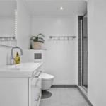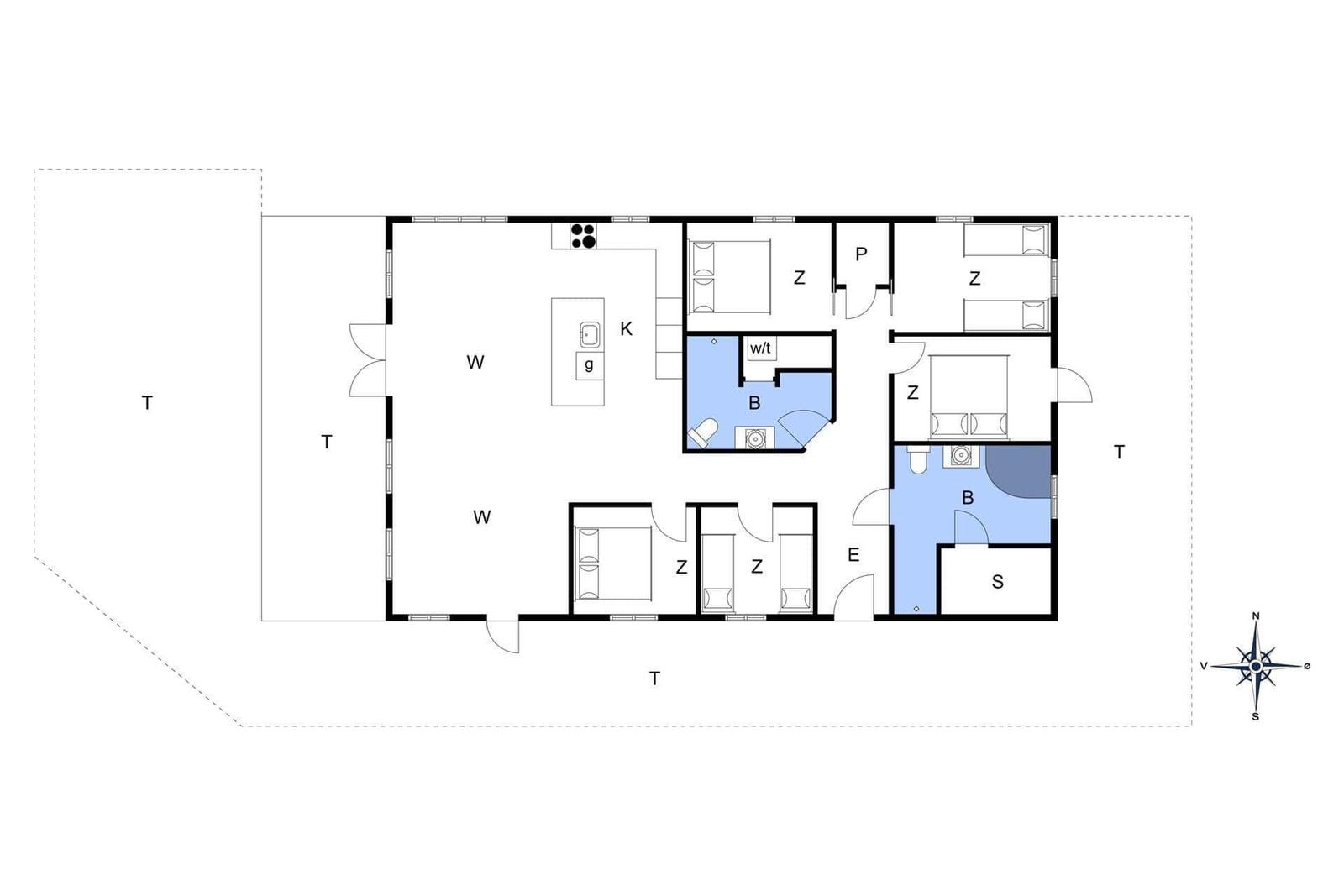 Die Wohnung verfügt über 5 Schlafzimmer, darunter 3 Doppelbetten und 4 Einzelbetten, sowie 4 Kinderbetten. Zwei moderne Badezimmer, eines mit Duschbad und eines mit Badewanne, sorgen für Komfort.