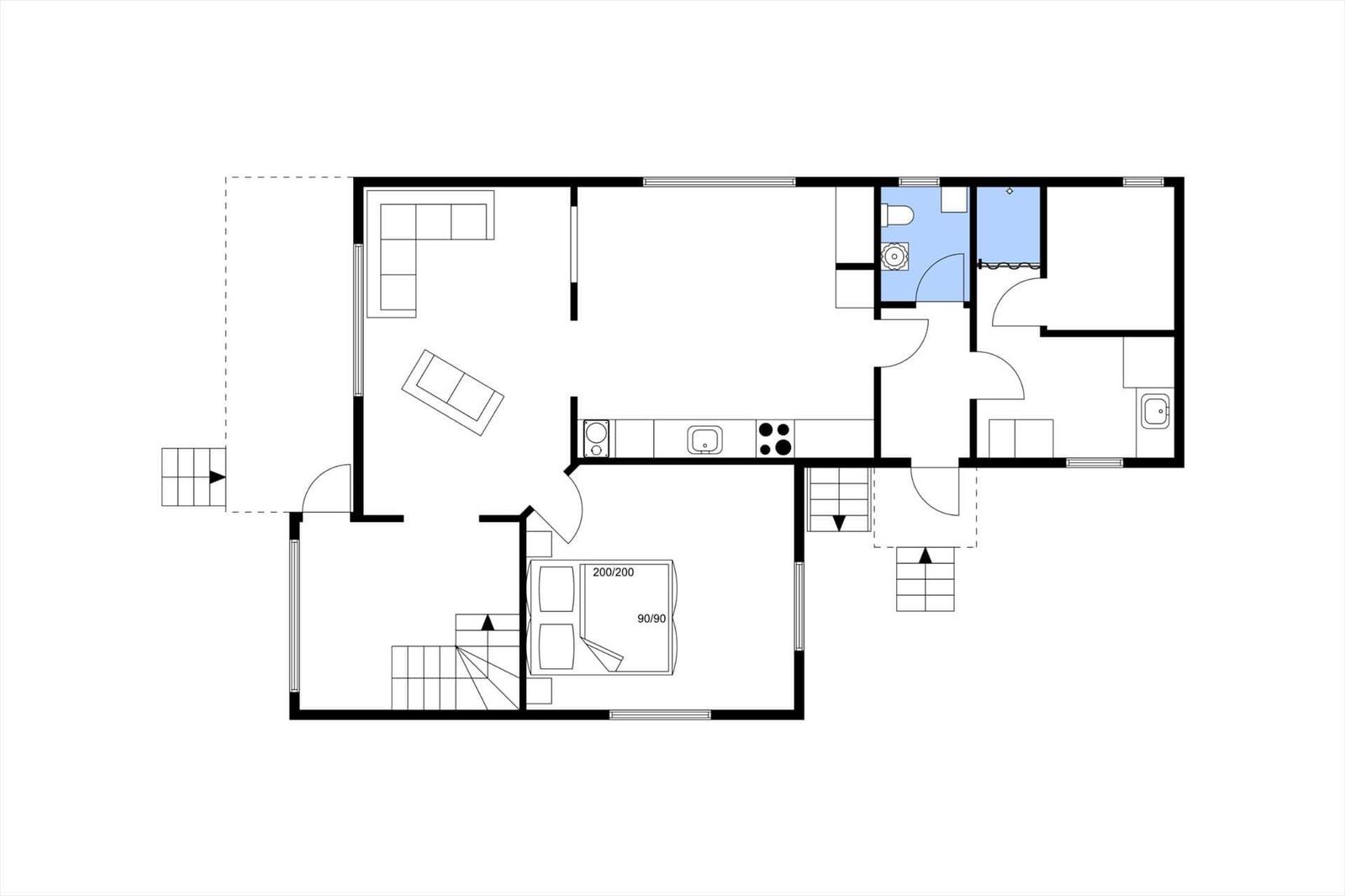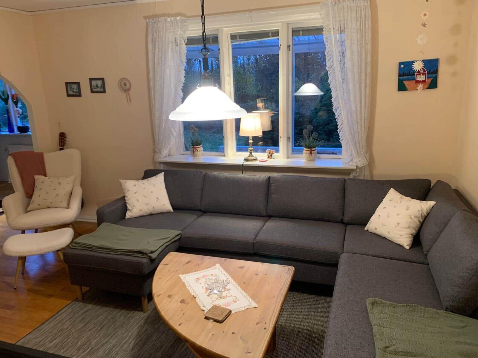 Das Ferienhaus Medelvägen, erbaut 1934 und auf etwa 138 m² erweitert, bietet Platz für bis zu sechs Personen. Im Erdgeschoss finden sich eine große Wohnküche mit Essplatz, ausgestattet mit Elektro- und Holzherd, Kühlschrank, Mikrowelle und Geschirrspüler. Das Wohnzimmer ist mit einer Sitzecke, SAT-TV und Stereoanlage ausgestattet. Ein Schlafzimmer mit Doppelbett und ein Hauswirtschaftsraum mit Waschmaschine, Trockner und Tiefkühlschrank sind ebenfalls im Erdgeschoss untergebracht. Eine Sauna mit Dusche und separatem WC ergänzt die Ausstattung. Im Obergeschoss gibt es zwei Schlafzimmer, eines mit Doppelbett, das andere mit zwei Einzelbetten. Das Haus verfügt über fließend Wasser und zentrale elektrische Heizung. Gemeinschaftlich nutzbare Ausstattungen umfassen ein Ruderboot, ein Kanu sowie sieben Fahrräder. Bettwäsche und Handtücher werden nicht bereitgestellt. Rauchen ist nicht gestattet, und Haustiere sind nicht erlaubt.