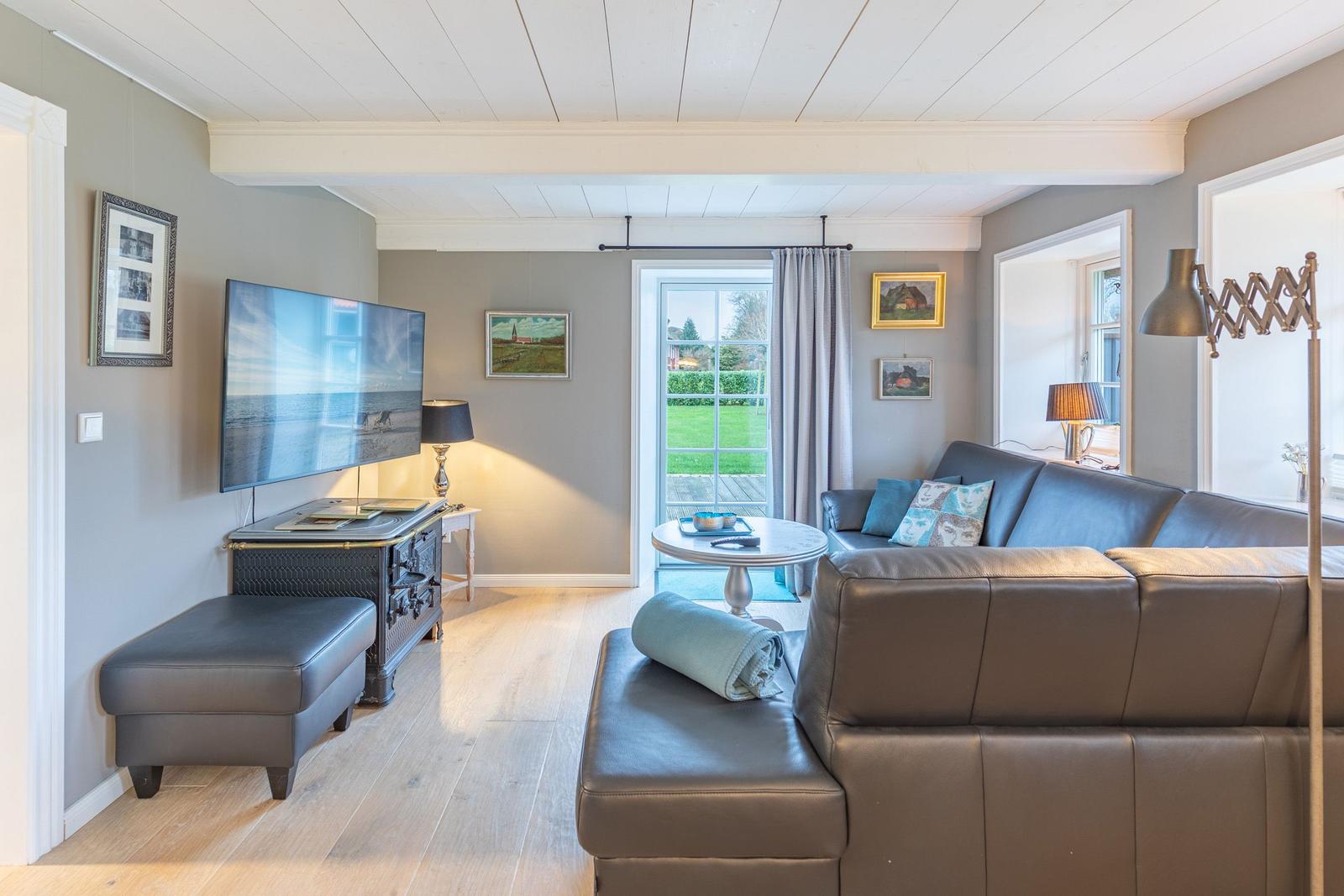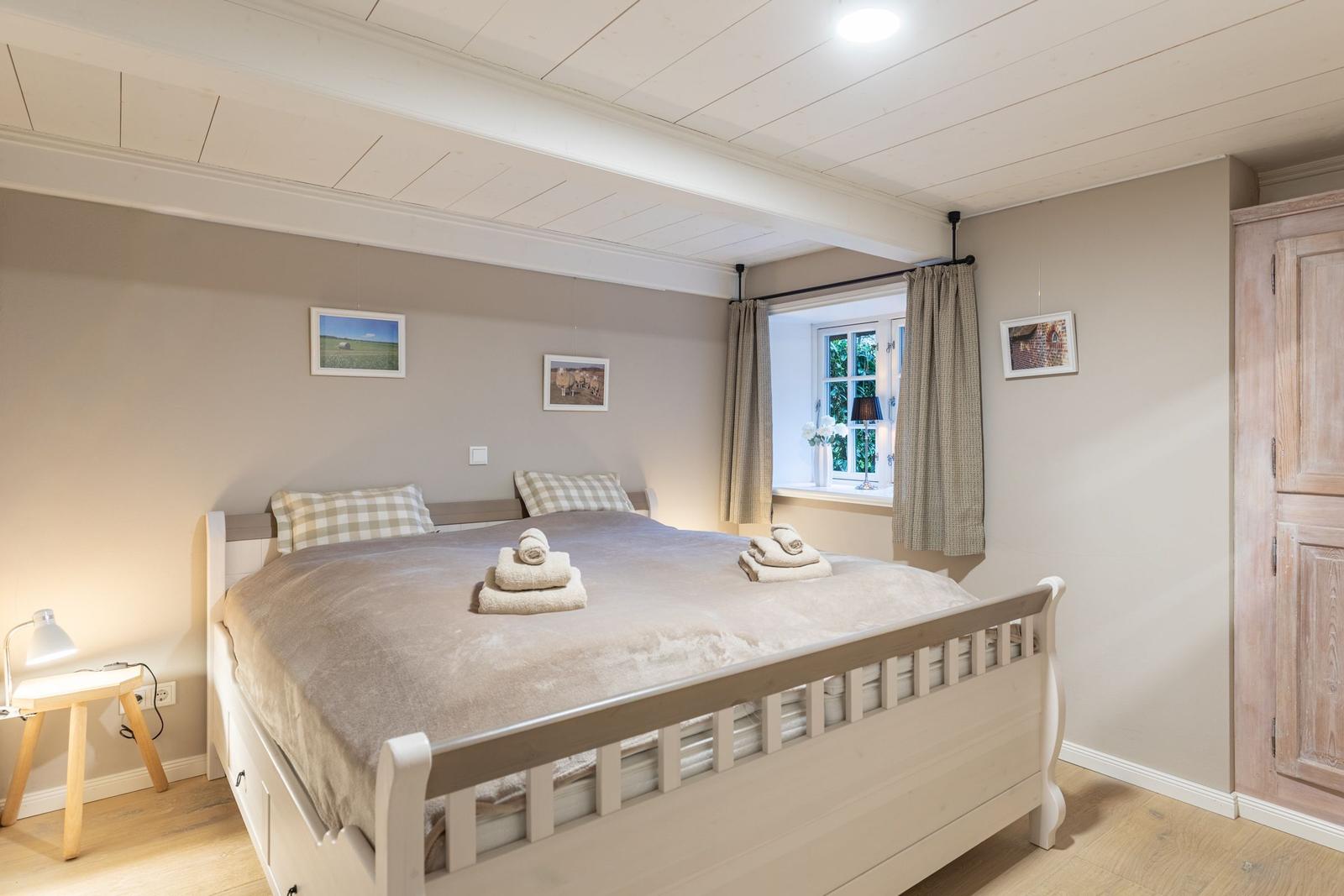 Das Ferienhaus "Frieda" befindet sich in Aventoft, einer ruhigen Gemeinde an der dänischen Grenze, umgeben von einer idyllischen Marschlandschaft. Die Lage bietet zahlreiche attraktive Ausflugsziele, darunter das UNESCO Weltnaturerbe Wattenmeer, das in unmittelbarer Nähe liegt. Tagesausflüge nach Tønder, Møgeltønder oder Højer sind in wenigen Minuten möglich, ebenso wie Besuche auf den Nordseeinseln Sylt und Föhr. Das Museum des Malers Emil Nolde, nur etwa 3 km entfernt, beeindruckt mit wechselnden Ausstellungen und einem Blumengarten. Die Anreise zur Unterkunft gestaltet sich unkompliziert: Niebüll ist in rund 15 Minuten erreichbar, während die Nordsee und die Ostseeküste in etwa 50 km Entfernung liegen. Gäste können die malerische Umgebung bestens mit dem Fahrrad erkunden, da komplette Mietstationen nur 100 m entfernt liegen.