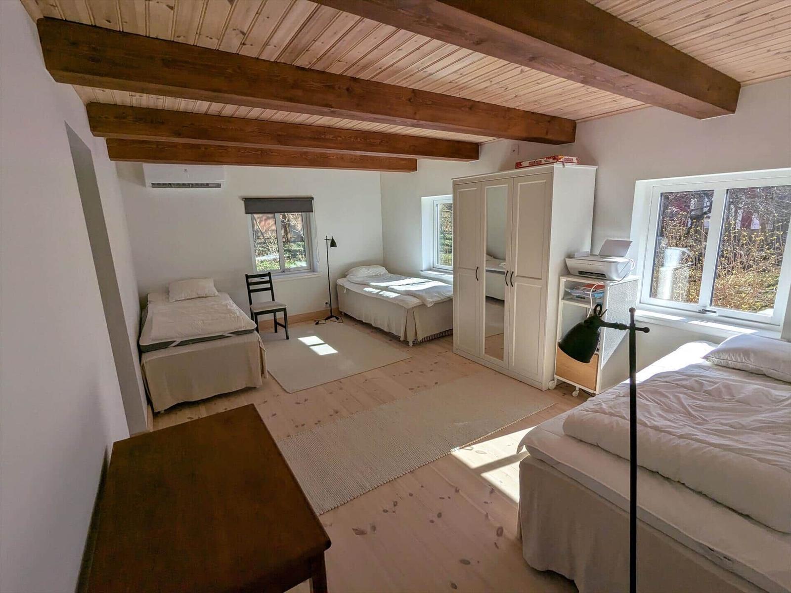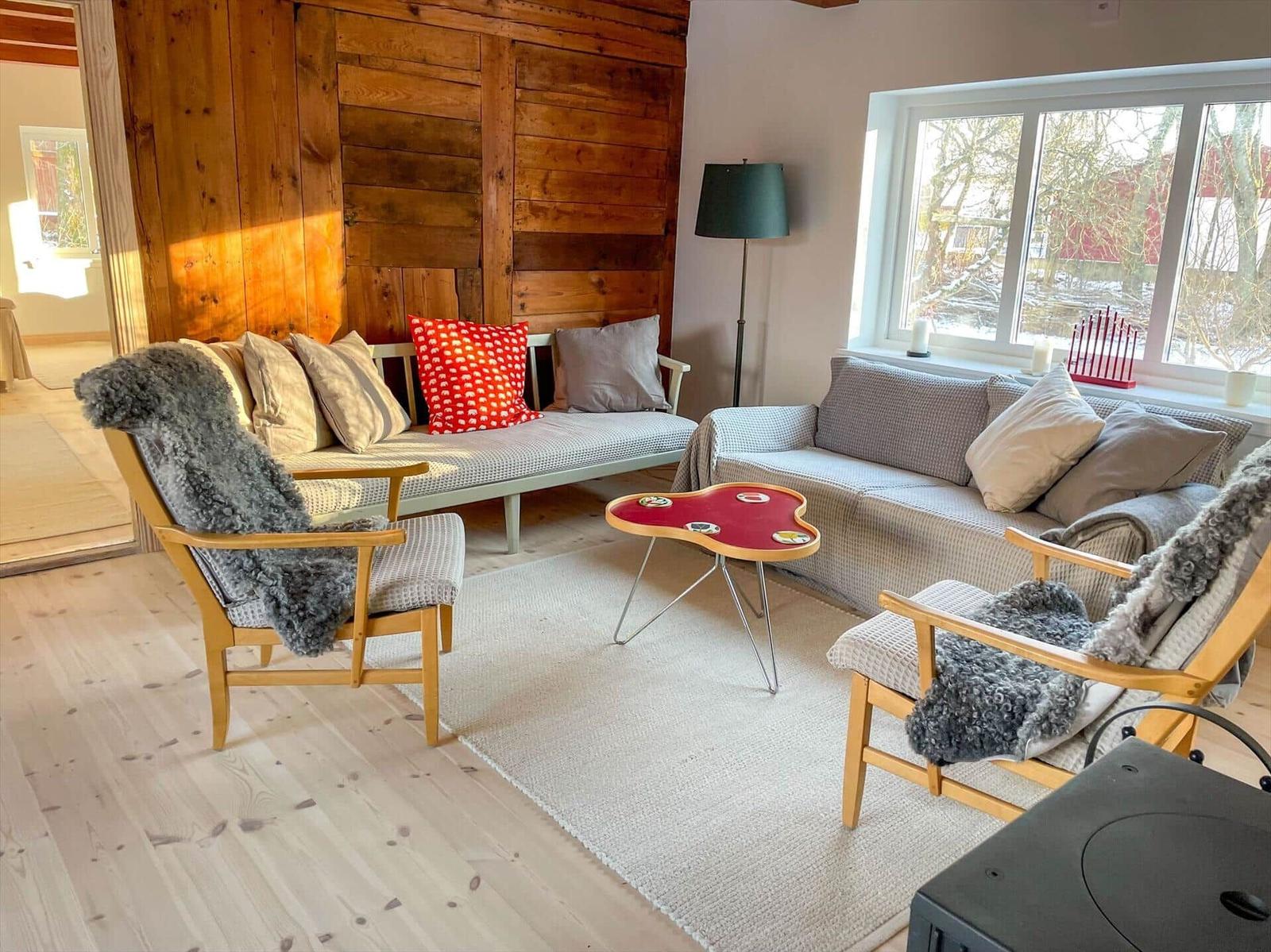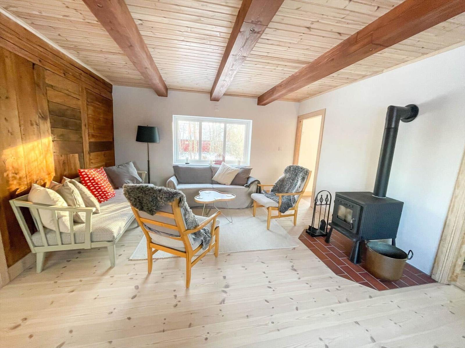Das charmante, geschmackvoll renovierte Bauernhaus bietet auf einer Wohnfläche von etwa 140 m² Platz für bis zu sechs Gäste. Das urgemütliche Wohnzimmer verfügt über freiliegende Deckenbalken, eine unverkleidete Holzwand, Sofas, Sessel und einen Kaminofen. Ein Fernsehgerät, ein CD-Player und WLAN sind ebenfalls vorhanden. Die moderne Küche ist gut ausgestattet mit einem Elektroherd, Backofen, Kühl-Gefrierkombination, Geschirrspüler und Kaffeemaschine sowie einem Esstisch für sechs Personen. Es gibt zwei Schlafzimmer: eines mit Doppelbett und das andere mit zwei Einzelbetten sowie einem Doppelbett. Das Badezimmer bietet eine Badewanne, WC und Handwaschbecken. Eine Waschmaschine steht in einem separaten Waschhäuschen zur Verfügung. Die Ausstattung wird durch Gartenmöbel und einen Holzkohlegrill ergänzt. Das Ferienhaus ist ganzjährig buchbar und Haustiere sowie das Rauchen sind nicht gestattet.