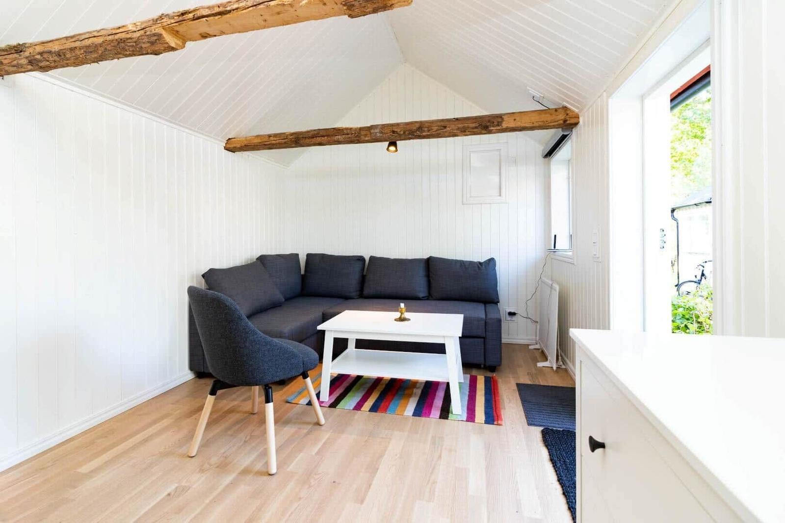 Das Ferienhaus bei Bergkvara verfügt über eine Gesamtwohnfläche von 70 m², aufgeteilt in ein Haupthaus und ein zusätzliches Außenhaus. Im Haupthaus, das für bis zu 4 Personen geeignet ist, befinden sich ein Schlafraum mit einem ausziehbaren Doppelbett, ein Wohn- und Schlafbereich mit einem weiteren ausziehbaren Doppelbett sowie ein Kamin. Die Küche ist vollständig ausgestattet mit Herd, Ofen, Kühlschrank, Mikrowelle und Kaffeemaschine. Toiletten sind im Haupthaus vorhanden, eine Dusche befindet sich im Außenhaus. Das Außenhaus bietet Platz für bis zu 4 Personen mit einem Etagenbett und einem Schlafsofa. Dort ist zudem ein Badezimmer mit WC, Dusche und Waschmaschine untergebracht. Internet kann über einen mobil verfügbaren Router genutzt werden. Handtücher und Bettbezüge sind mitzubringen, Haustiere sind nicht erlaubt.