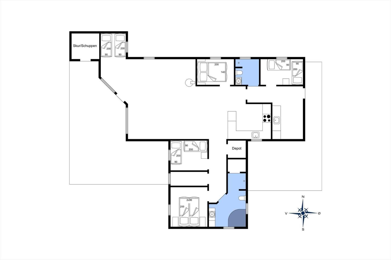 In der Ferienwohnung im Bjerregårdsvej 408 finden bis zu 10 Personen ein komfortables Zuhause. Die offene Küche ist mit modernen Geräten wie einem Geschirrspüler, Elektro-/Gasherd, Mikrowelle, Kühlschrank und Kaffeemaschine ausgestattet und bietet einen idealen Raum zum Kochen und Verweilen. Der großzügige Wohnbereich mit großen Fenstern und Zugang zur Terrasse lädt zu entspannten Stunden ein. Vier Schlafzimmer, darunter zwei Doppelbetten und vier Einzelbetten, sowie zwei Badezimmer – eines mit Whirlpool und Sauna – gewährleisten höchsten Komfort. Zur Ausstattung gehören außerdem WLAN, TV, Wäschetrockner, Waschmaschine und Fußbodenheizung für ein angenehmes Raumklima. Auf den Terrassen lassen sich sonnige Stunden genießen, während die Lage nur 250 Meter vom Strand entfernt ideale Voraussetzungen für erholsame Urlaubstage bietet. Ein Kinderhochstuhl kann kostenlos ausgeliehen werden.