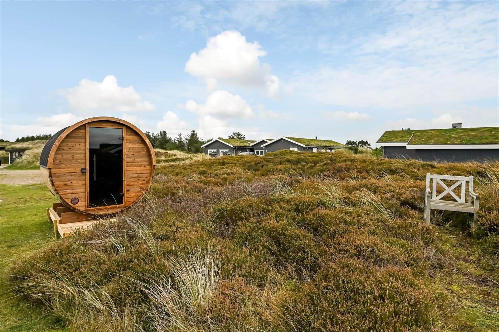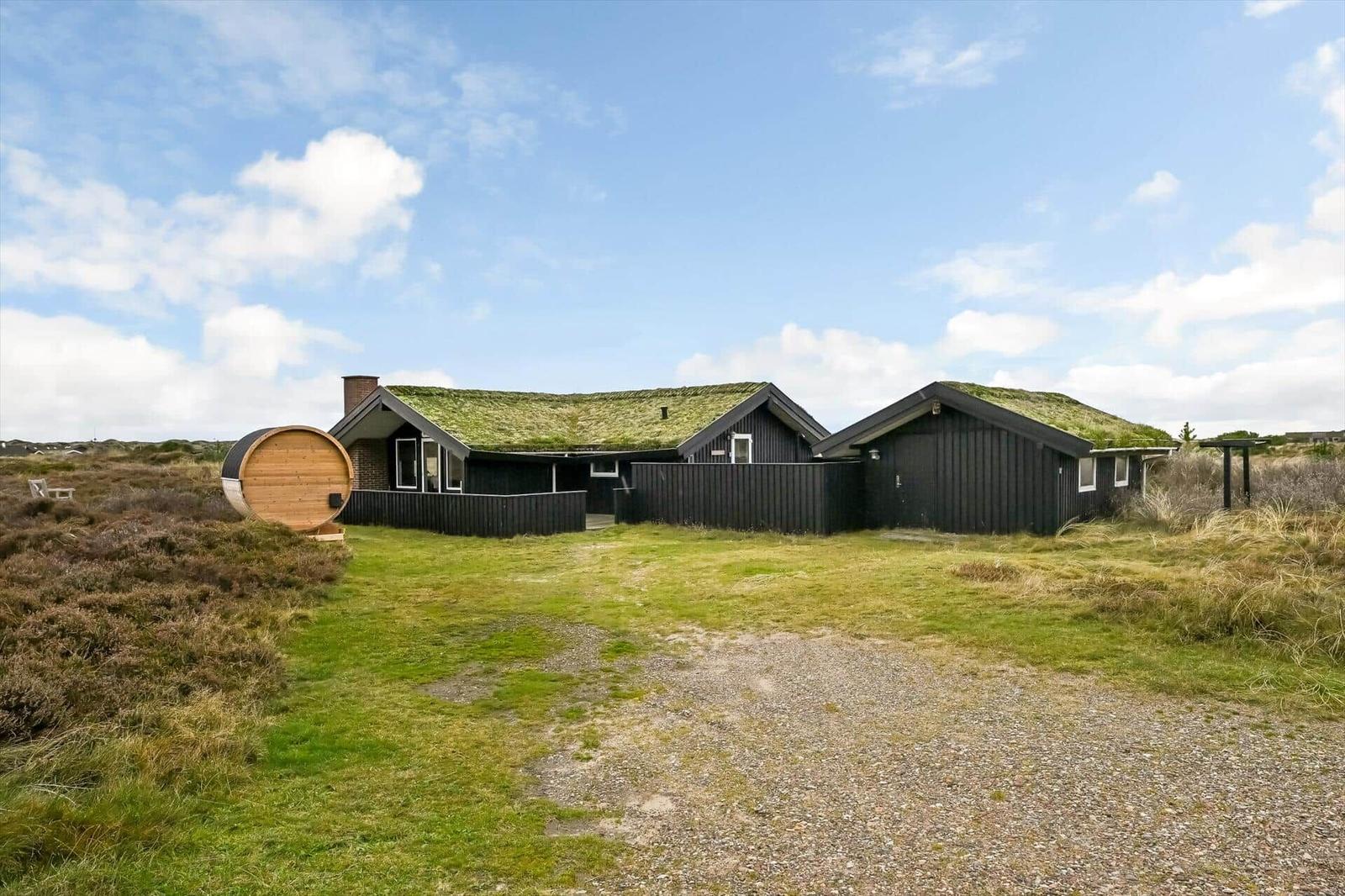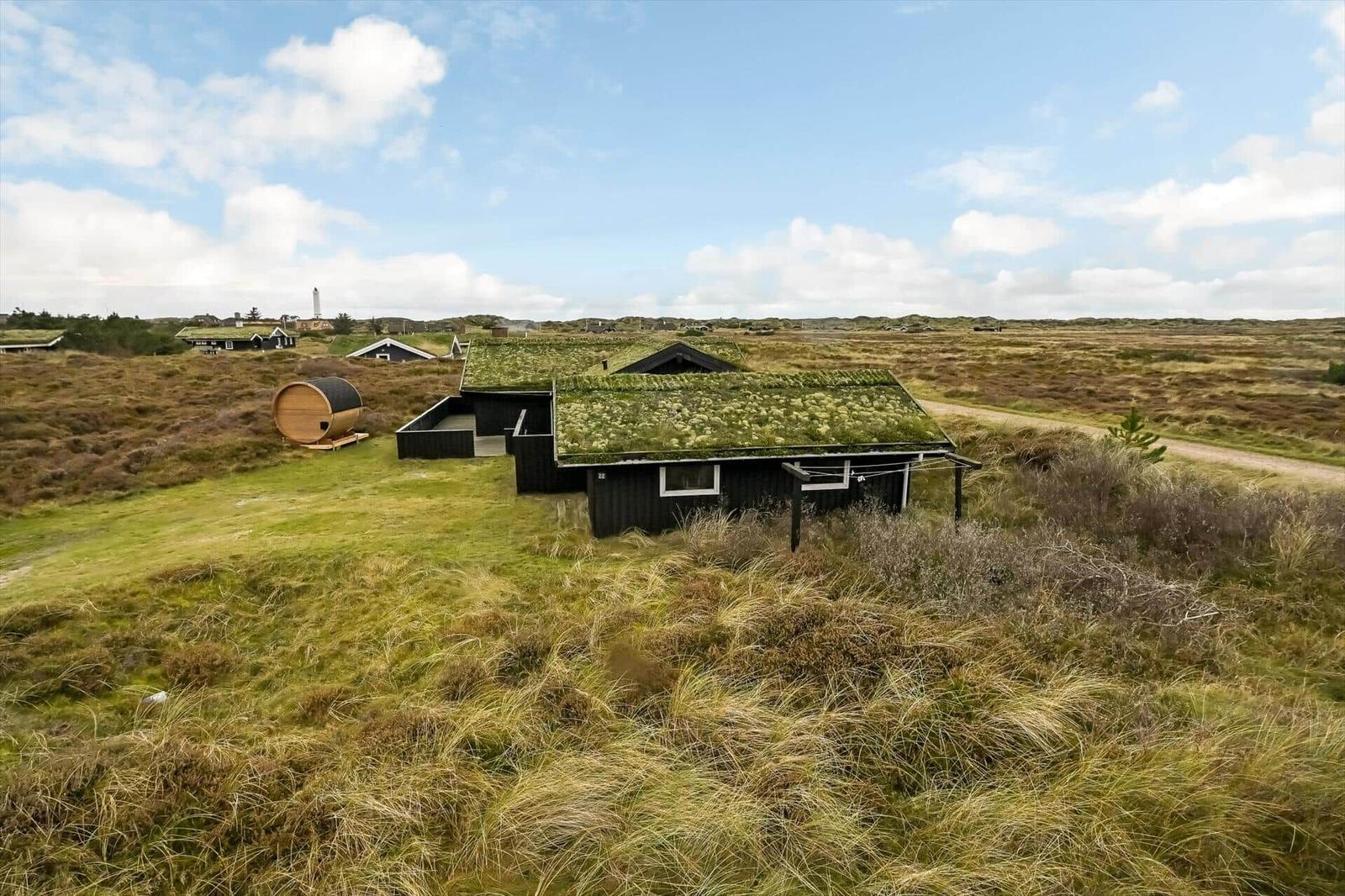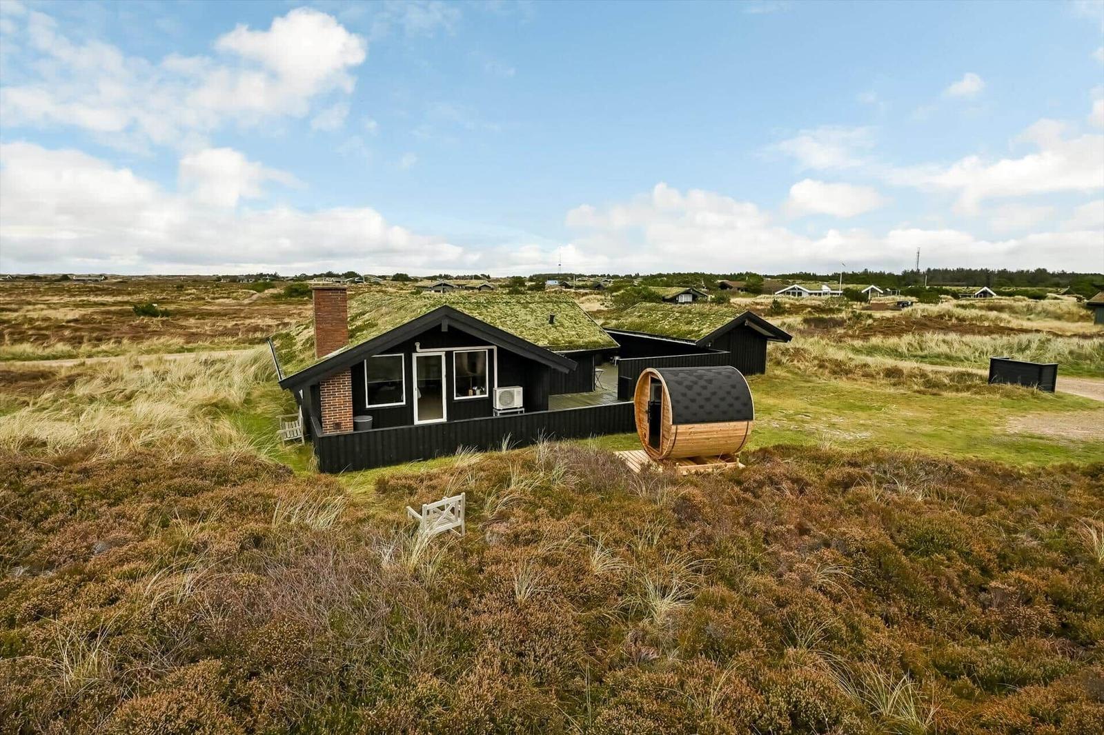 Dieses ansprechende Ferienhaus in Blåvand bietet eine harmonische Kombination aus modernem Komfort und natürlichem Ambiente. Mit drei hellen Schlafzimmern, darunter zwei Doppelbetten und ein Einzelbett, sowie einem schlichten Duschbad mit Fußbodenheizung, ist der Wohnraum ideal für erholsame Urlaubstage. Der Wohnbereich lädt mit einem Kamin zum Verweilen ein und ermöglicht einen Blick auf die umliegende Heidelandschaft.