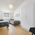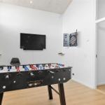 Die Ferienwohnung in Gl. Skolevej 26 in Blåvand bietet auf 217 m² ein modernes Urlaubsdomizil für acht Personen. Die Ausstattung umfasst vier Schlafzimmer mit zwei Doppelbetten, vier Einzelbetten und ein Kinderbett. Zwei stilvolle Badezimmer, eines mit Whirlpool und Sauna, laden zur Entspannung ein. Der großzügige Wohnbereich besticht durch einen Kaminofen, eine offene Küche mit Geschirrspüler, Elektro- und Gasherd, Backofen, Mikrowelle, Kühlschrank und Kaffeemaschine. Für Unterhaltung sorgen ein Smart-TV und ein Aktivitätsraum mit Tischtennisplatte und Billardtisch. Das Haus, ausgestattet mit Fußbodenheizung und einer energieeffizienten Erdwärmeanlage, garantiert ganzjährig behagliche Stunden. Das kinderfreundliche Ambiente bietet zudem Hochstuhl und Waschmöglichkeiten wie eine Waschmaschine und einen Wäschetrockner. Eine Holzterrasse und Lademöglichkeit für E-Autos rundet das Angebot ab.