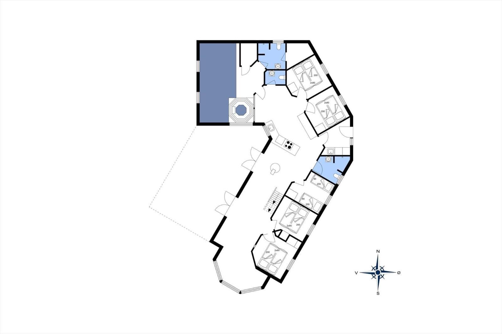 Die Ferienwohnung in Blåvand Strand og By, Westjütland, bietet Platz für bis zu 10 Erwachsene und 2 Haustiere. Auf großzügigen 210 m² erwarten die Gäste fünf Schlafzimmer, ausgestattet mit 4 Doppelbetten, 2 Einzelbetten und 2 Kinderbetten, sowie zwei moderne Badezimmer mit Duschbad. Der Wohnbereich überzeugt mit einem gemütlichen Kamin und einer Fußbodenheizung, die für wohlige Wärme sorgt. Die voll ausgestattete Küche mit Geschirrspüler, Elektro-/Gasherd, Backofen, Mikrowelle und Kühlschrank lässt keine Wünsche offen. Weitere Annehmlichkeiten wie WLAN, TV, Wäschetrockner, Waschmaschine und Wasserkocher stehen zur Verfügung. Auf dem 3.000 m² großen Grundstück befinden sich eine Schaukel und ein Sandkasten für die kleinen Gäste. Zudem gelangen die Mieter in nur 50 Metern zum Strand und in 1.000 Metern zu Einkaufsmöglichkeiten.
