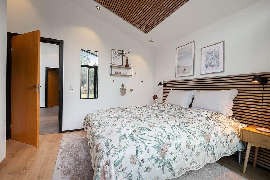 Die gut ausgestattete Küche verfügt über einen Geschirrspüler, Elektro-/Gasherd, Backofen, Mikrowelle, Kühlschrank und eine Kaffeemaschine. Ein gemütliches Wohnschlafzimmer mit Kamin und TV lädt zum Entspannen ein.