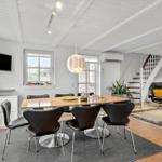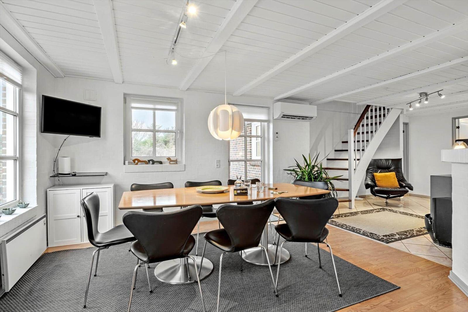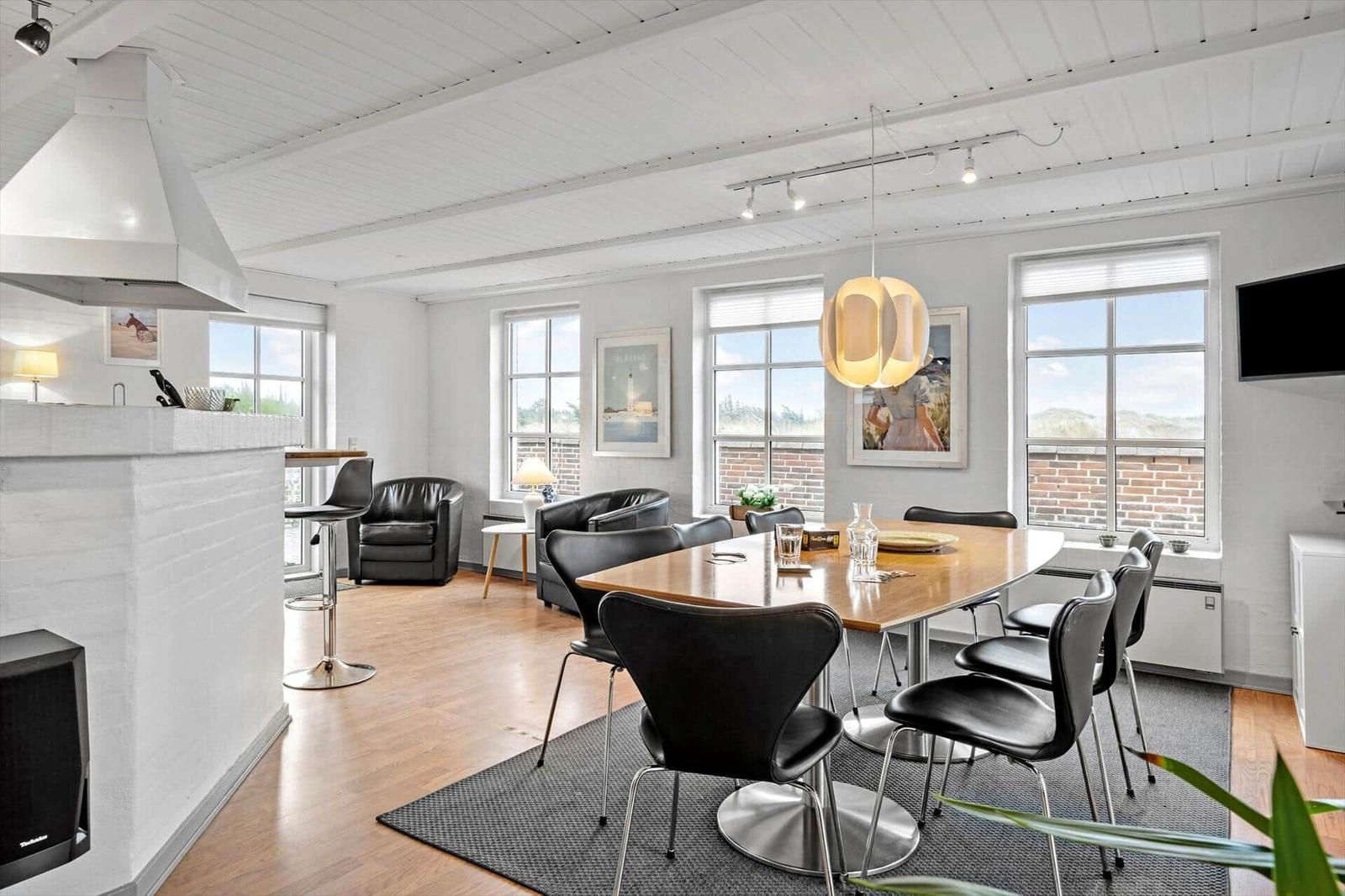 Das Ferienhaus im Fyrvej in Blåvand ist eine ideale Wahl für einen erholsamen Urlaub an der Nordsee. Es bietet vier gemütliche Schlafzimmer, darunter drei Doppelbetten und zwei Einzelbetten, und ist perfekt für Familien oder Gruppen. Die helle Ausstattung umfasst eine moderne Küchenzeile mit Geschirrspüler, Elektro-/Gasherd, Backofen, Mikrowelle, Kühlschrank und Kaffeemaschine. Der Wohnraum im Obergeschoss öffnet sich mit großen Giebelfenstern und einer Wohnschlafzimmer-Atmosphäre, während Fußbodenheizung und Kaminofen für wohlige Wärme sorgen. Das Badezimmer im Erdgeschoss ist mit einem Duschbad sowie einer Sauna zur Entspannung ausgestattet. Internet mit WLAN, eine Waschmaschine, ein Wäschetrockner sowie ein Bügeleisen runden die Ausstattung ab. Die große Terrasse und das kindgerechte Außengelände sorgen für unvergessliche Momente im Freien.