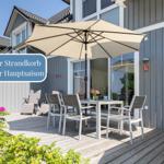 Das Ferienhaus Belvedere 2c, gelegen in einem ruhigen Neubaugebiet im Schwedenstil, bietet einen stilvollen Außenbereich, der direkt vom Wohn- und Essbereich zugänglich ist. Auf der Terrasse laden gemütliche Gartenmöbel zum Entspannen ein. Nur etwas mehr als einen Kilometer entfernt erstreckt sich einer der feinsten Sandstrände der Region, wo saisonbedingt ein Strandkorb zur Verfügung steht. Für Autofahrer sind zwei PKW-Stellplätze direkt vor dem Haus vorhanden, während Fahrräder bequem neben dem Hauseingang abgestellt werden können. Das Haus ist ein Nichtraucherhaus und bietet Platz für bis zu 8 Personen (4 Erwachsene und 4 Kinder). WLAN und Hundezugang sind ebenfalls gegeben. Genießen Sie die harmonische Verbindung von Innen- und Außenbereich im Ferienhaus Belvedere 2c!
