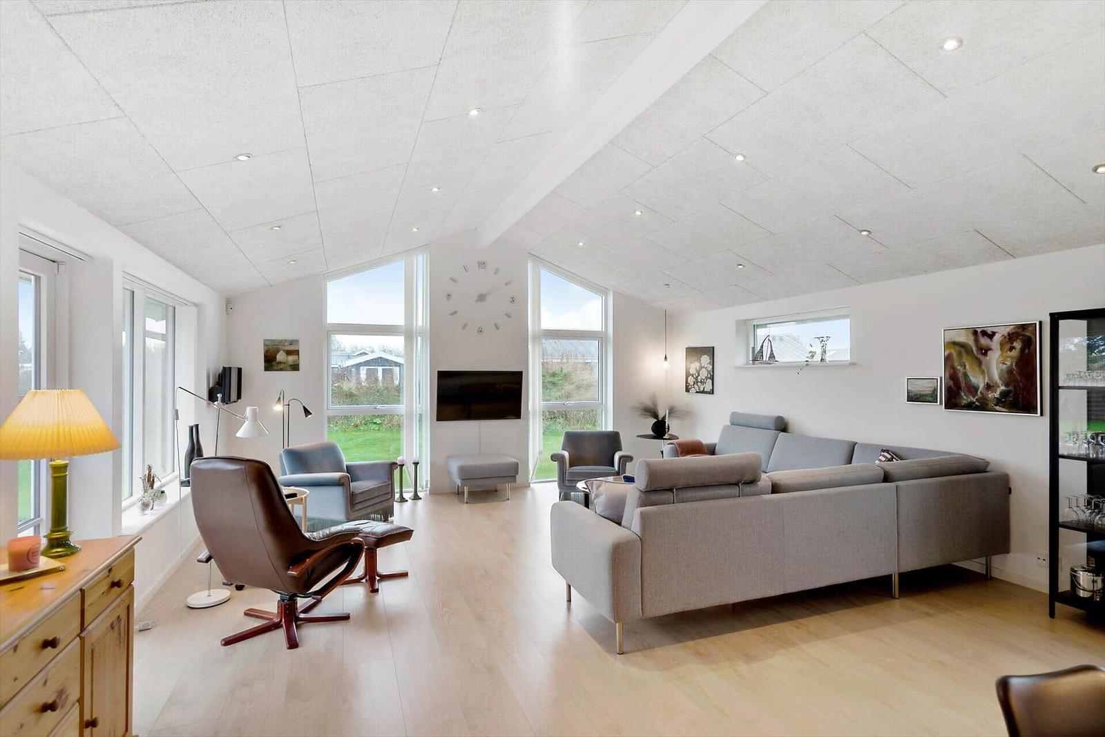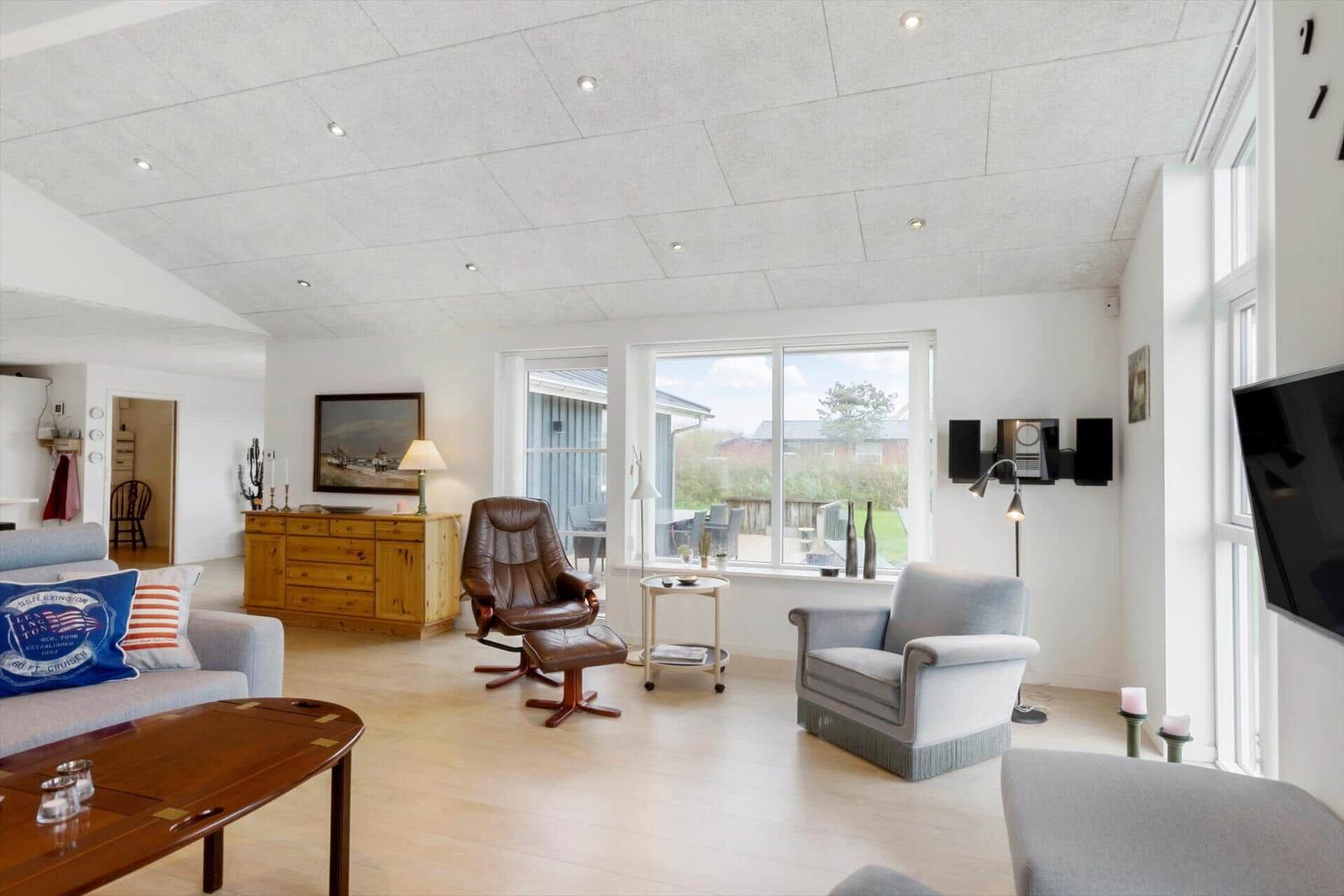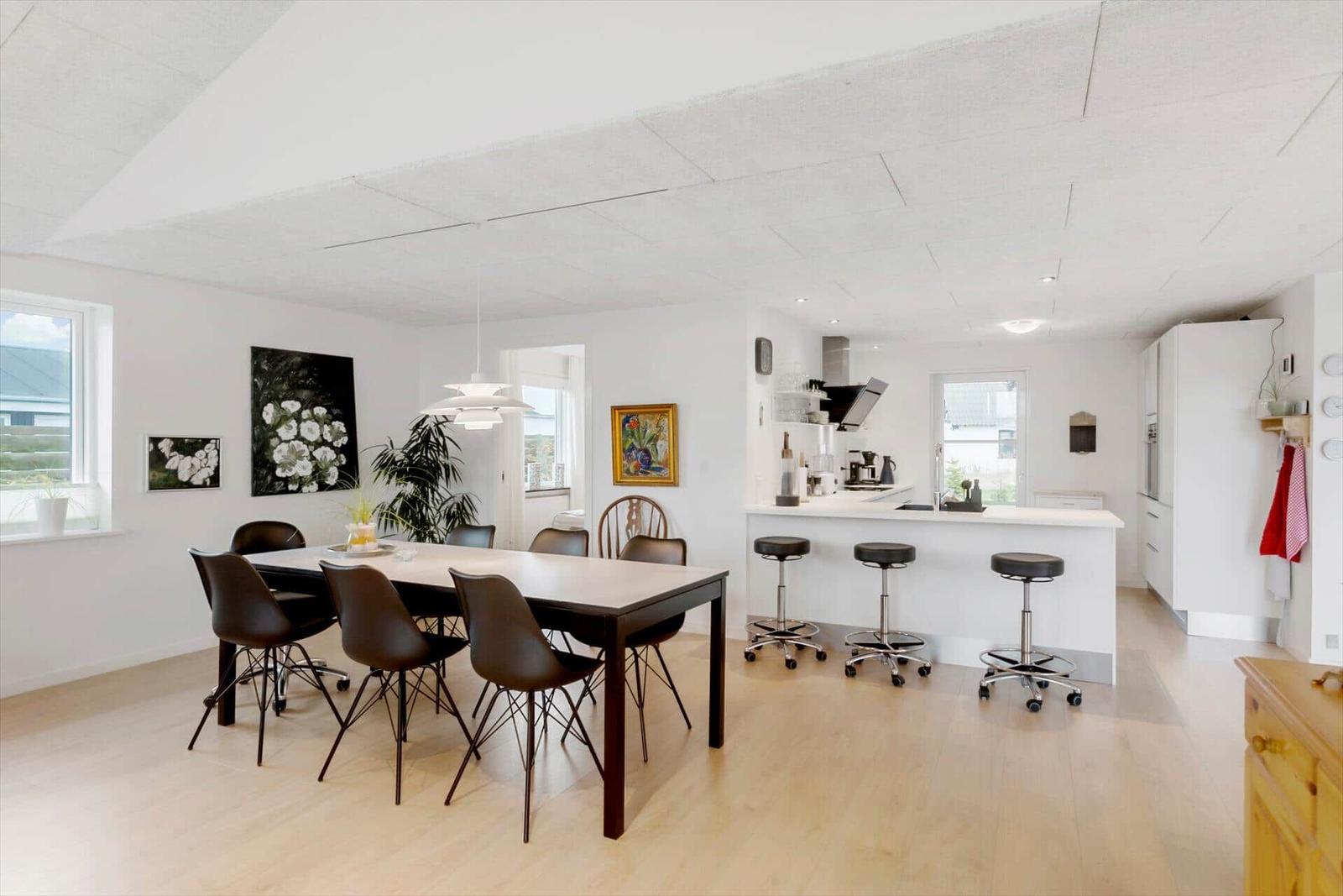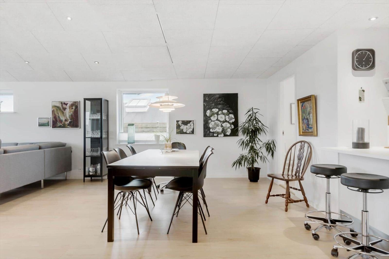 Diese Ferienwohnung in Blokhus Strand og By, Nordjütland, bietet Platz für bis zu 8 Erwachsene und überzeugt durch eine durchdachte Raumaufteilung auf 138 m². Die Unterkunft verfügt über 5 Schlafzimmer, darunter 3 Doppelbetten und 2 Einzelbetten sowie eine Schlafcouch im Wohnschlafzimmer. Zwei moderne Badezimmer mit Duschbad ergänzen den Komfort.