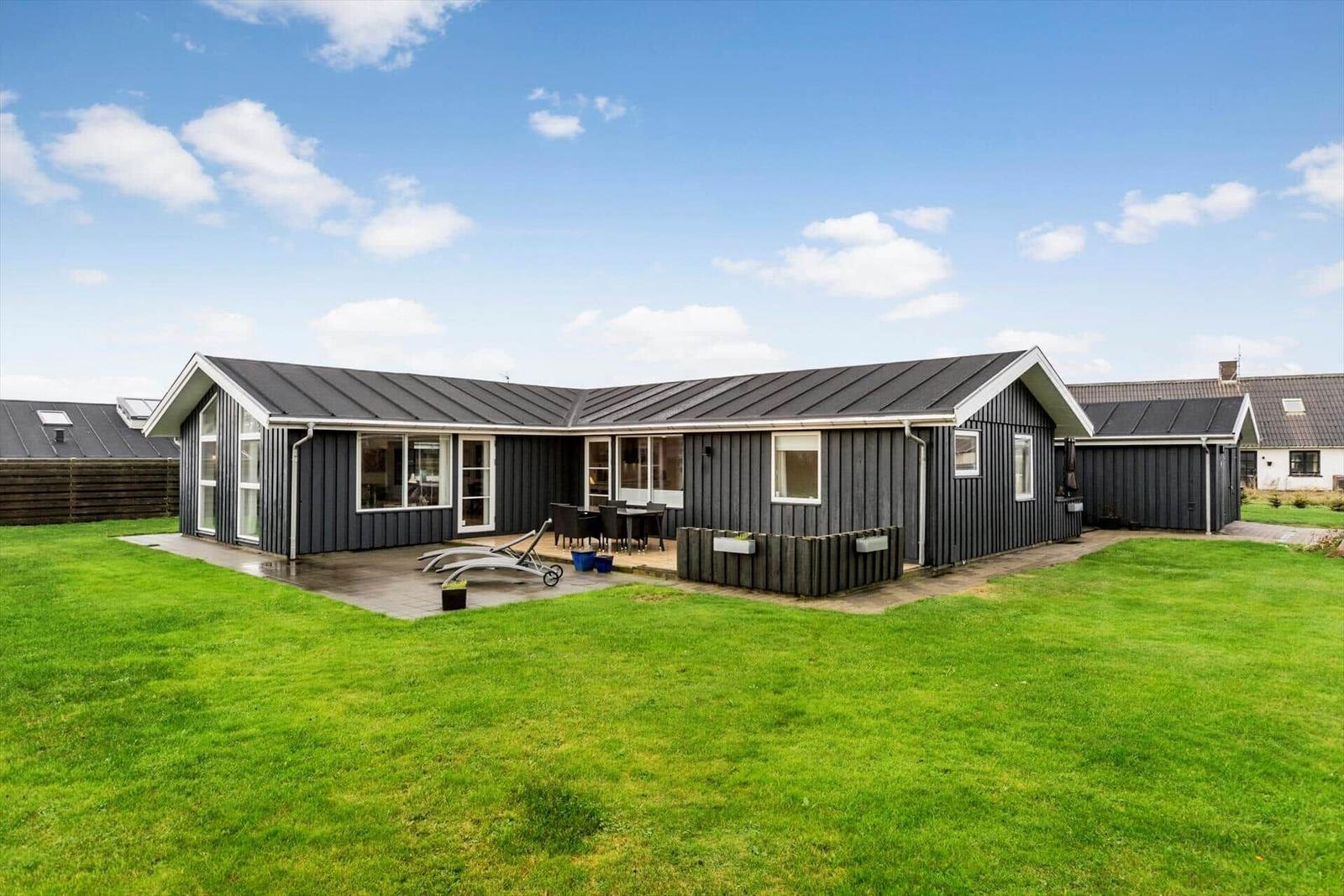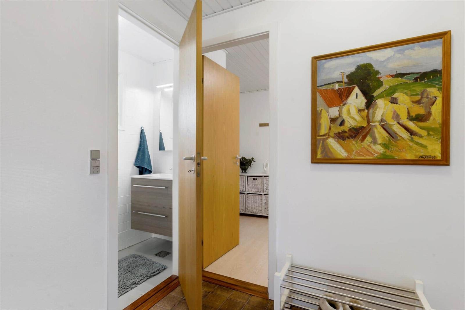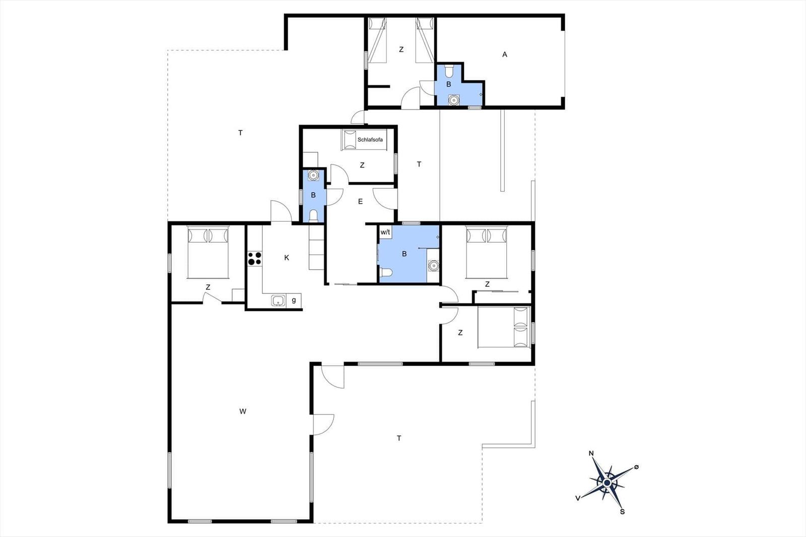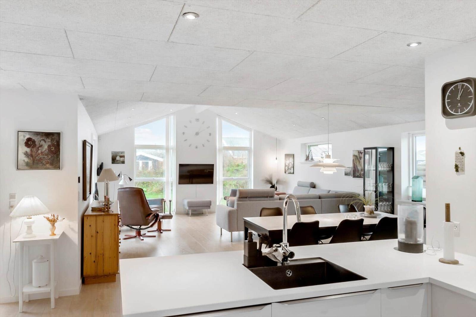 Diese Ferienwohnung in Blokhus Strand og By, Nordjütland, bietet Platz für bis zu 8 Erwachsene und überzeugt durch eine durchdachte Raumaufteilung auf 138 m². Die Unterkunft verfügt über 5 Schlafzimmer, darunter 3 Doppelbetten und 2 Einzelbetten sowie eine Schlafcouch im Wohnschlafzimmer. Zwei moderne Badezimmer mit Duschbad ergänzen den Komfort.