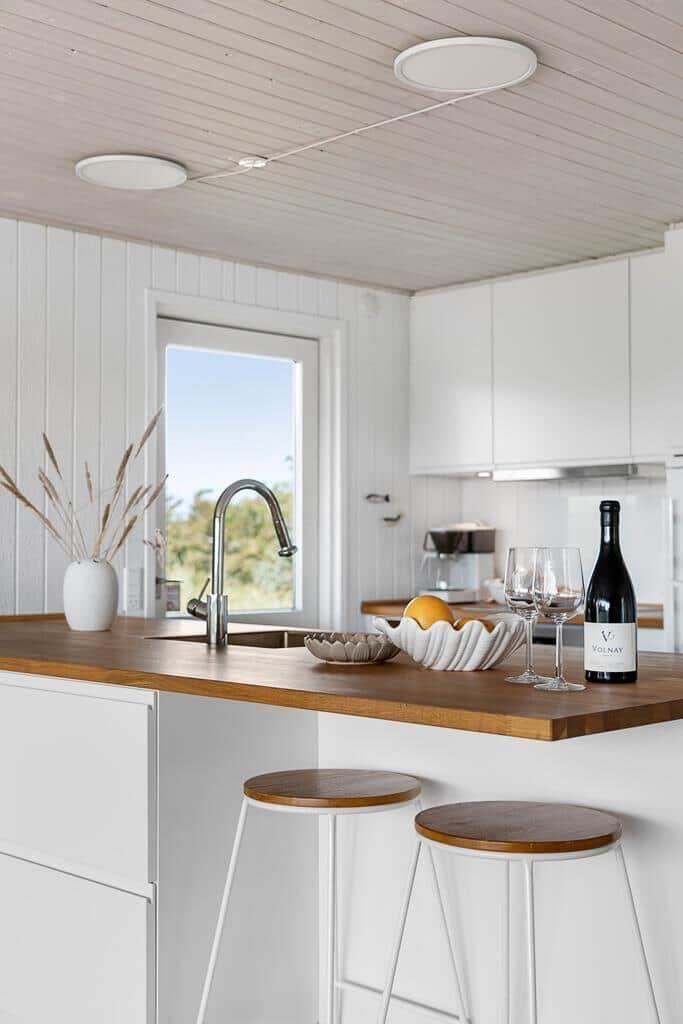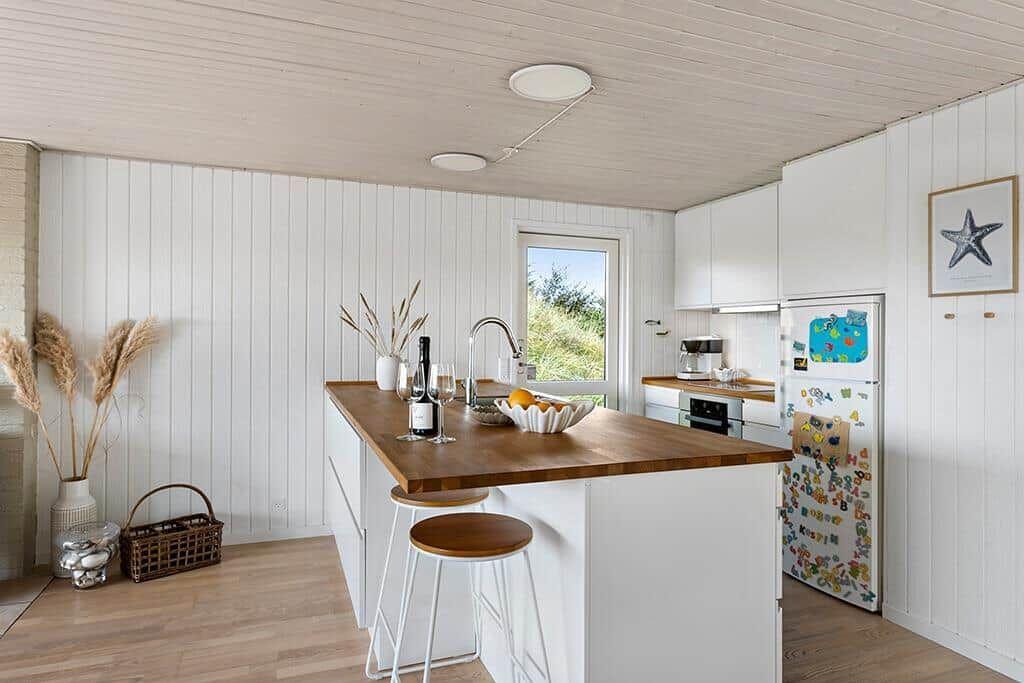 Die Ferienwohnung in Blokhus Strand og By, Nordjütland, bietet Platz für bis zu 6 Erwachsene und überzeugt mit einer durchdachten Raumaufteilung auf 72 m². In drei gemütlichen Schlafzimmern stehen jeweils Doppelbetten bereit. Der offene Wohnbereich ist mit einem Smart-TV, Kamin und komfortablen Sitzgelegenheiten ausgestattet und lädt zum Entspannen ein. Die moderne Küche ist ideal für Selbstversorger und verfügt über einen Geschirrspüler, Elektro-/Gasherd, Kühlschrank, Kaffeemaschine und Wasserkocher. Das Duschbad lässt keine Wünsche offen. Zudem sorgt energieeffizientes Heizen für ein angenehmes Raumklima. Internet mit WLAN steht ebenfalls zur Verfügung. Die Unterkunft liegt auf einem großzügigen Grundstück von 1.250 m², nur 980 Meter vom Strand und 1.375 Meter von Einkaufsmöglichkeiten entfernt. Perfekt für einen erholsamen Aufenthalt am Meer.