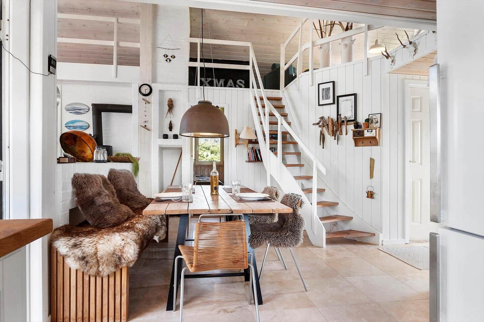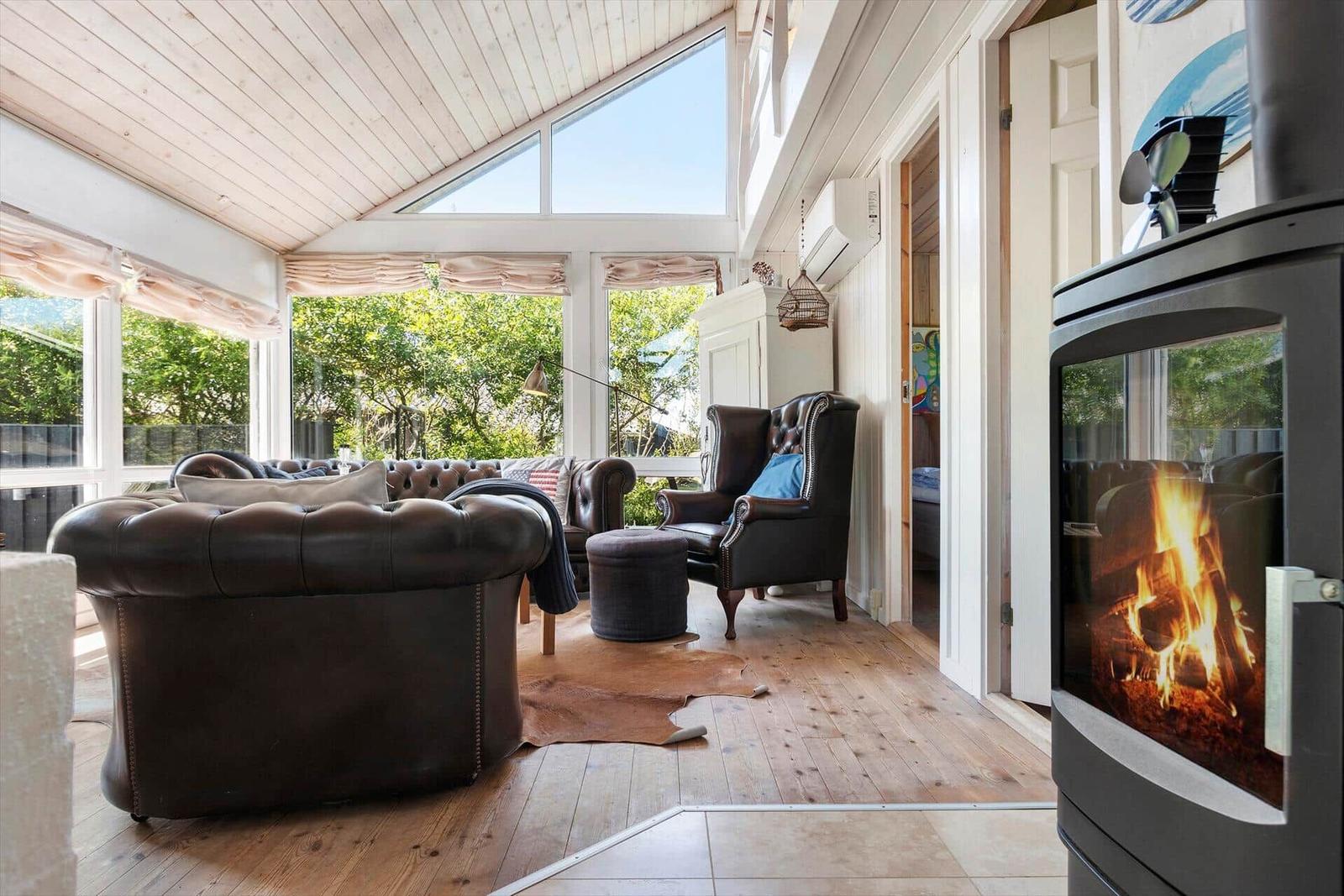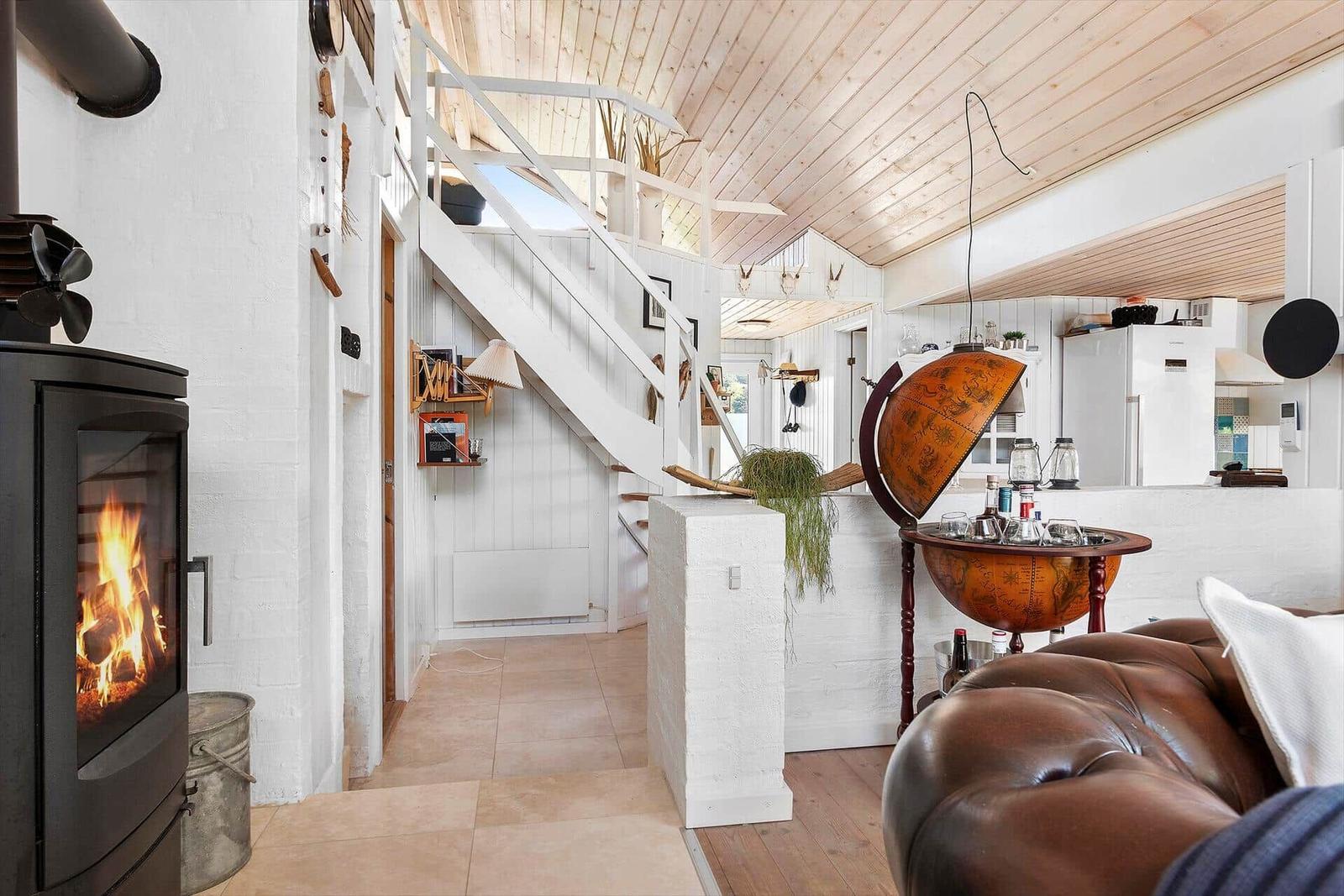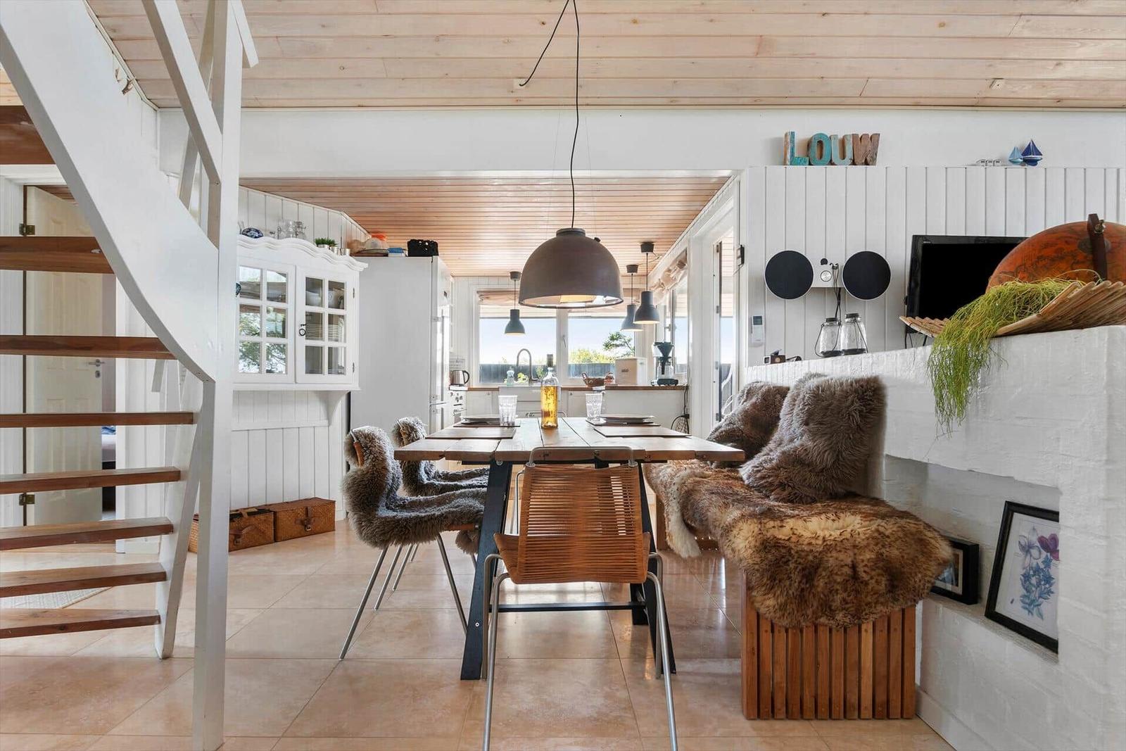 Die Ferienwohnung in Blokhus Strand og By, Nordjütland, bietet Platz für bis zu 7 Erwachsene und überzeugt mit einer gemütlichen Einrichtung. Auf einer Fläche von 90 m² stehen 4 Schlafzimmer mit Doppelbetten zur Verfügung, ideal für erholsame Nächte. Das helle Wohnschlafzimmer mit Kamin lädt zum Verweilen ein. Die moderne Küche ist mit einem Elektro-/Gasherd, Backofen, Kühlschrank, Geschirrspüler und einer Kaffeemaschine ausgestattet, um kulinarische Wünsche zu erfüllen. Für Entspannung sorgen das Duschbad sowie die bereitgestellte Sauna. Zur Komfortsteigerung bieten Fußbodenheizung und energieeffizientes Heizen angenehme Temperaturen. Technische Annehmlichkeiten wie WLAN, Smart-TV und eine Waschmaschine runden das Angebot ab. Nur 250 Meter sind es bis zum Strand; Einkaufsmöglichkeiten sind in 2.200 Metern erreichbar. Diese Ferienwohnung ist der perfekte Ort für einen erholsamen Aufenthalt an der nordjütländischen Küste.
