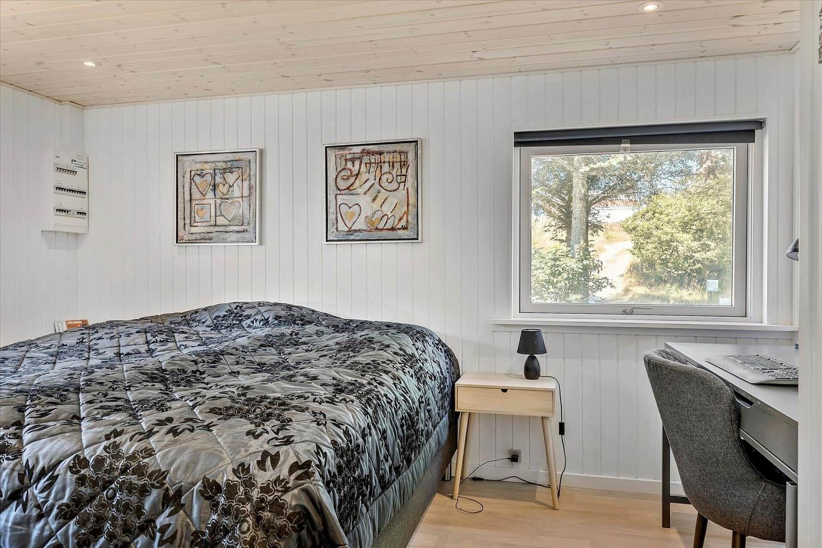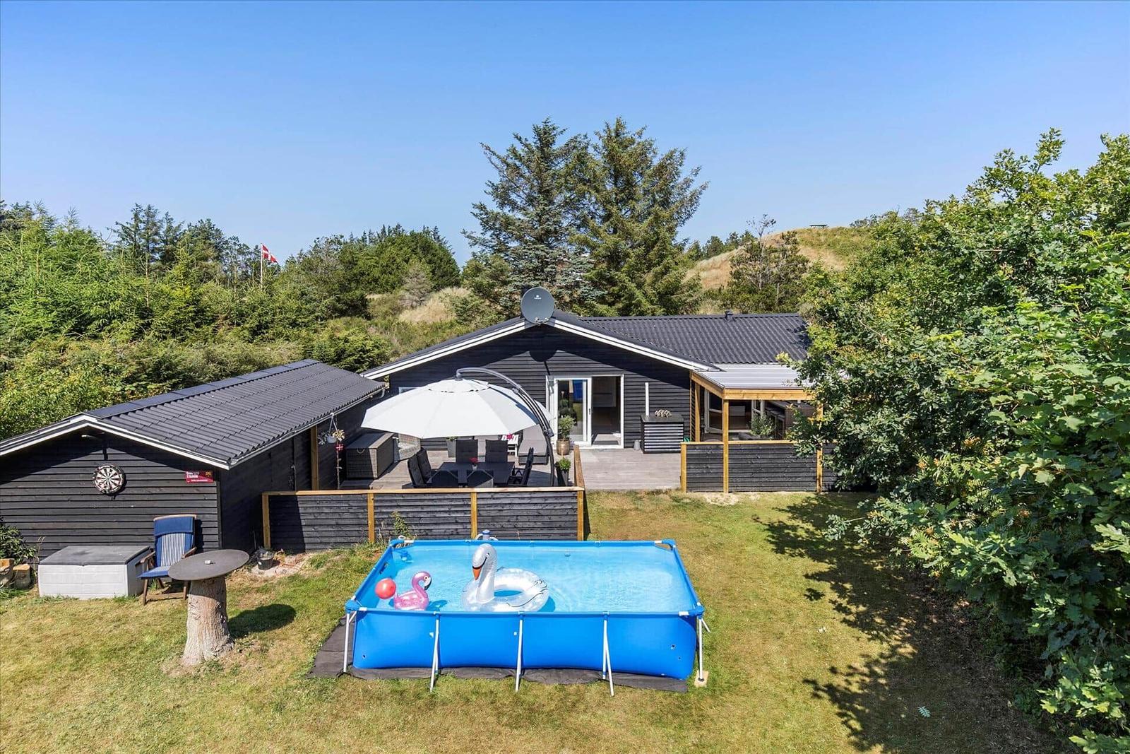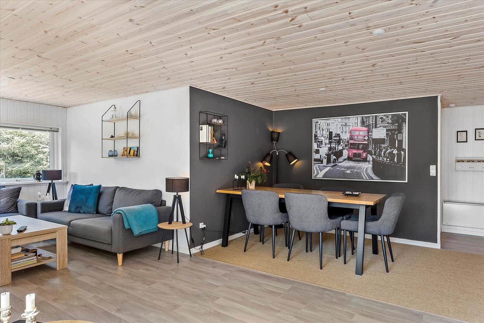 In der Ferienwohnung in Blokhus Strand og By, Nordjütland, finden bis zu 6 Erwachsene Platz. Auf 95 m² erstrecken sich 4 Schlafzimmer, darunter 2 Doppelbetten, 2 Einzelbetten und ein Kinderbett. Das Wohnschlafzimmer bietet eine Schlafcouch für zusätzlichen Komfort. Die Unterkunft verfügt über ein modernes Duschbad und eine voll ausgestattete Küche, die mit Geschirrspüler, Elektro-/Gasherd, Backofen, Mikrowelle, Kühlschrank und Kaffeemaschine ausgestattet ist. Ein Kinderhochstuhl steht ebenfalls zur Verfügung. Für entspannte Abende sorgt ein Kamin, während die Fußbodenheizung und das energieeffiziente Heizen für behagliche Wärme sorgen. Zudem stehen Internet mit WLAN, ein TV, eine Waschmaschine, ein Wäschetrockner und ein Wasserkocher zur Verfügung. Der nächste Strand ist nur 1.350 Meter entfernt und Einkaufsmöglichkeiten sind in 1.150 Metern erreichbar.
