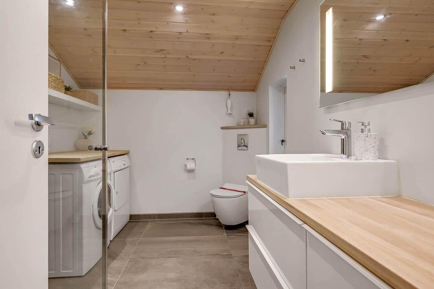 Zur Ausstattung gehört eine vollwertige Küche mit Geschirrspüler, Elektro-/Gasherd, Mikrowelle, Kühlschrank, Gefriermöglichkeit und Kaffeemaschine – ideal für die Zubereitung eigener Mahlzeiten. Für Familien steht ein Kinderhochstuhl zur Verfügung. WLAN sorgt für schnelle Internetverbindung, während der Smart-TV für Unterhaltung sorgt. Eine Waschmaschine, Wäschetrockner und Bügeleisen bieten zusätzlichen Komfort. Für ein angenehmes Wohnklima sorgt die energieeffiziente Heizung. Der nächste Strand ist nur 350 Meter entfernt, und die nächste Einkaufsmöglichkeit erreichen Sie in 500 Metern.