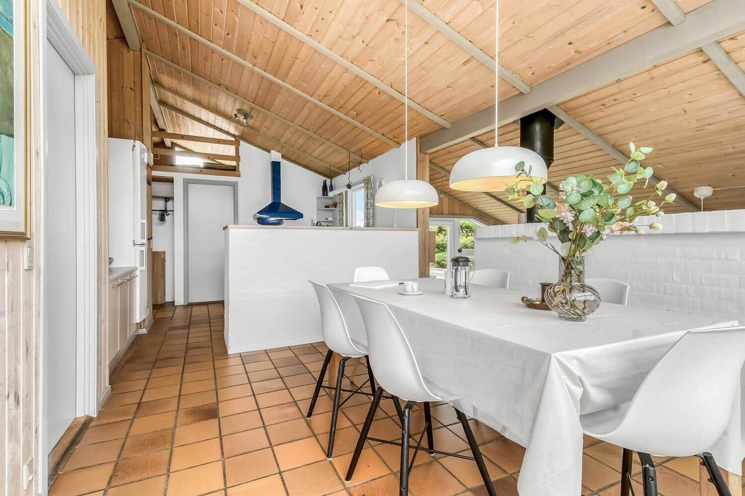 Die Ferienwohnung in Bork Havn, Westjütland, bietet auf 88 m² Platz für bis zu 6 Erwachsene. Die gemütliche Einrichtung sorgt für eine entspannte Atmosphäre, ideal für erholsame Tage. Die drei Schlafzimmer sind mit zwei Doppelbetten und zwei Einzelbetten ausgestattet und garantieren einen erholsamen Schlaf. In der modernen Küchenzeile finden sich ein Geschirrspüler, Elektro- und Gasherd, Mikrowelle, Kaffeemaschine sowie ein Wasserkocher, die die Zubereitung von Mahlzeiten erleichtern. Das Duschbad ergänzt die komfortable Ausstattung. Für Unterhaltung sorgt der TV, während kostenloses WLAN für Internetzugang sorgt. Praktische Annehmlichkeiten wie Waschmaschine, Wäschetrockner und ein Parkplatz sind ebenfalls vorhanden. Gästen steht zudem eine Sauna zur Verfügung, und von der Unterkunft sind es nur wenige Schritte zum nächsten Strand und zur Einkaufsmöglichkeit. Das großzügige Grundstück von 704 m² mit einer Schaukel rundet das Angebot ab.