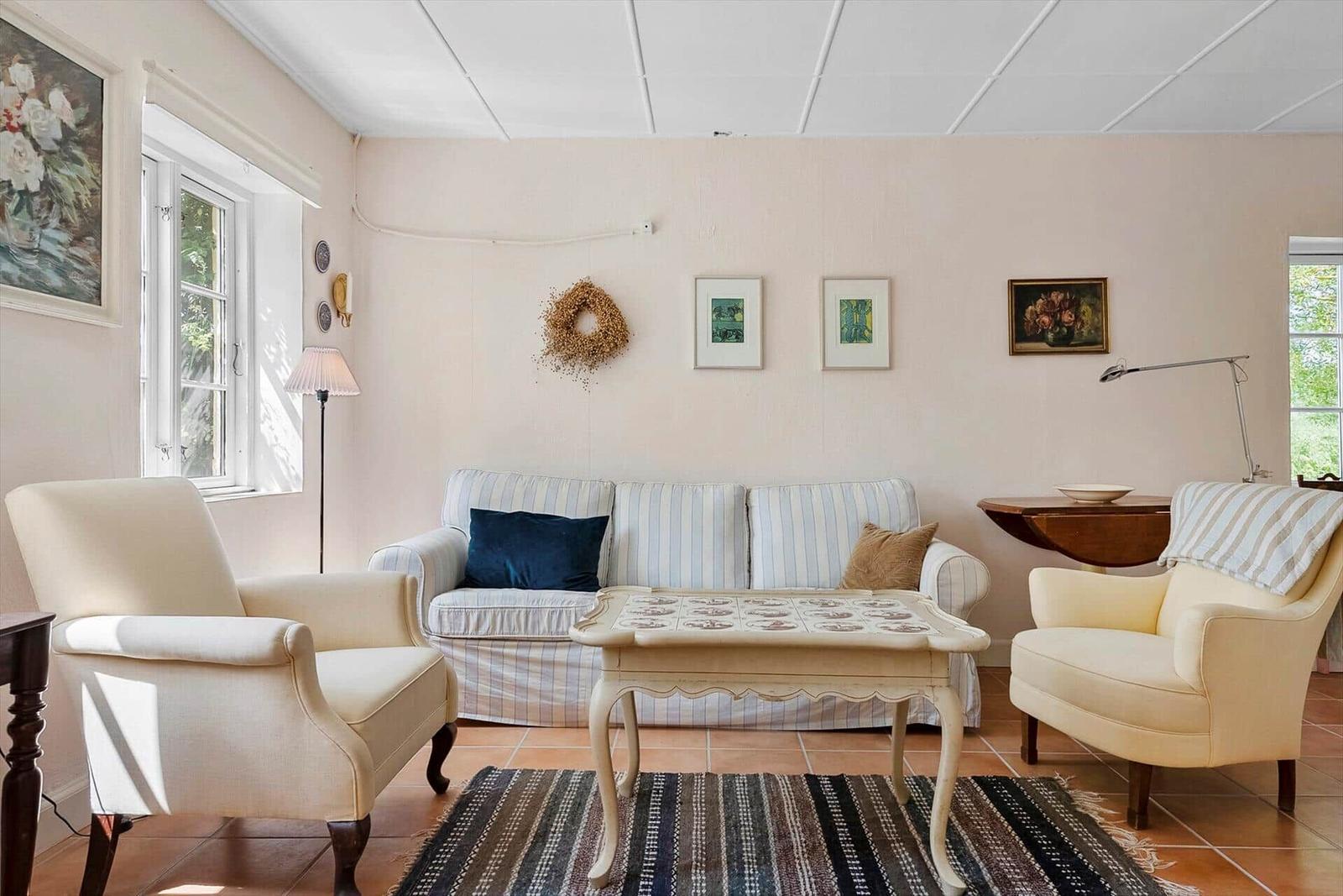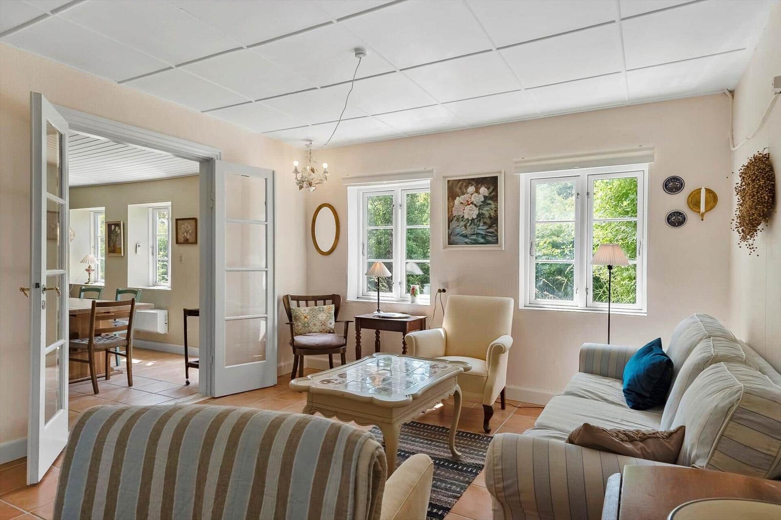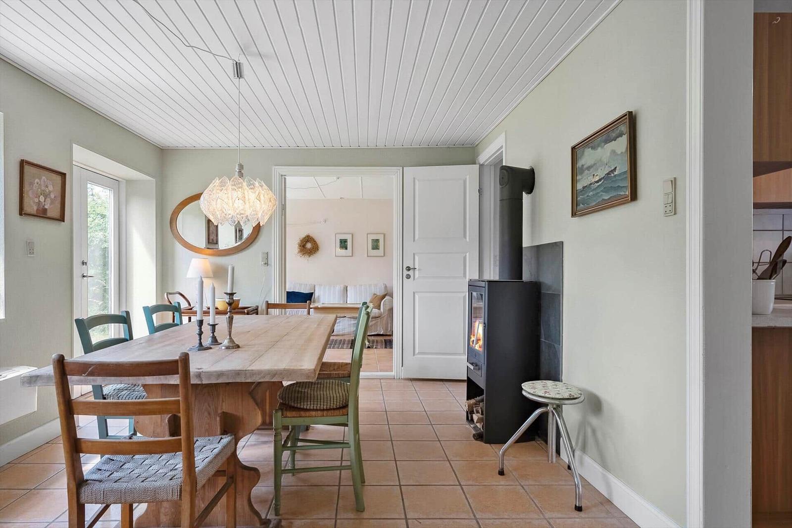 Das Ferienhaus, erbaut im Jahr 1875, bietet eine ruhige und einladende Atmosphäre. Es verfügt über eine Eingangshalle mit Fliesenboden und eine gut ausgestattete Küche, die sich zu einem lichtdurchfluteten Esszimmer mit Holzofen und Wärmepumpe öffnet. Das Esszimmer führt in ein gemütliches Wohnzimmer mit Doppelschlafsofa und WLAN. Die Schlafmöglichkeiten umfassen ein Schlafzimmer mit Doppelbett im Erdgeschoss sowie ein weiteres Doppelzimmer im 1. Stock, der durch Elektroradiatoren beheizt wird. Das große Badezimmer ist mit Dusche, Toilette, Waschbecken und Wickeltisch ausgestattet. Gemeinschaftlich nutzbare Einrichtungen wie die schöne Terrasse mit Gartenmöbeln und Ausblick auf die Felder laden zum Entspannen ein. Hier können Urlaubsfreuden im geschützten Raum genossen werden.