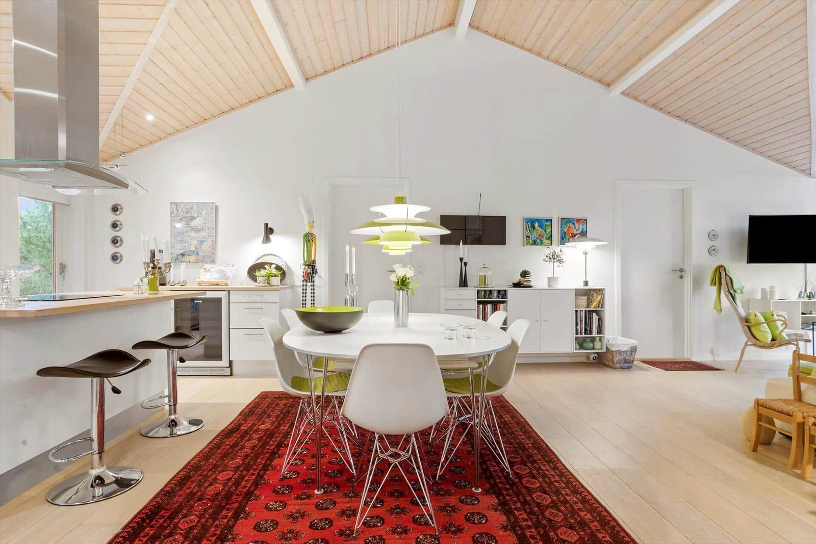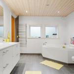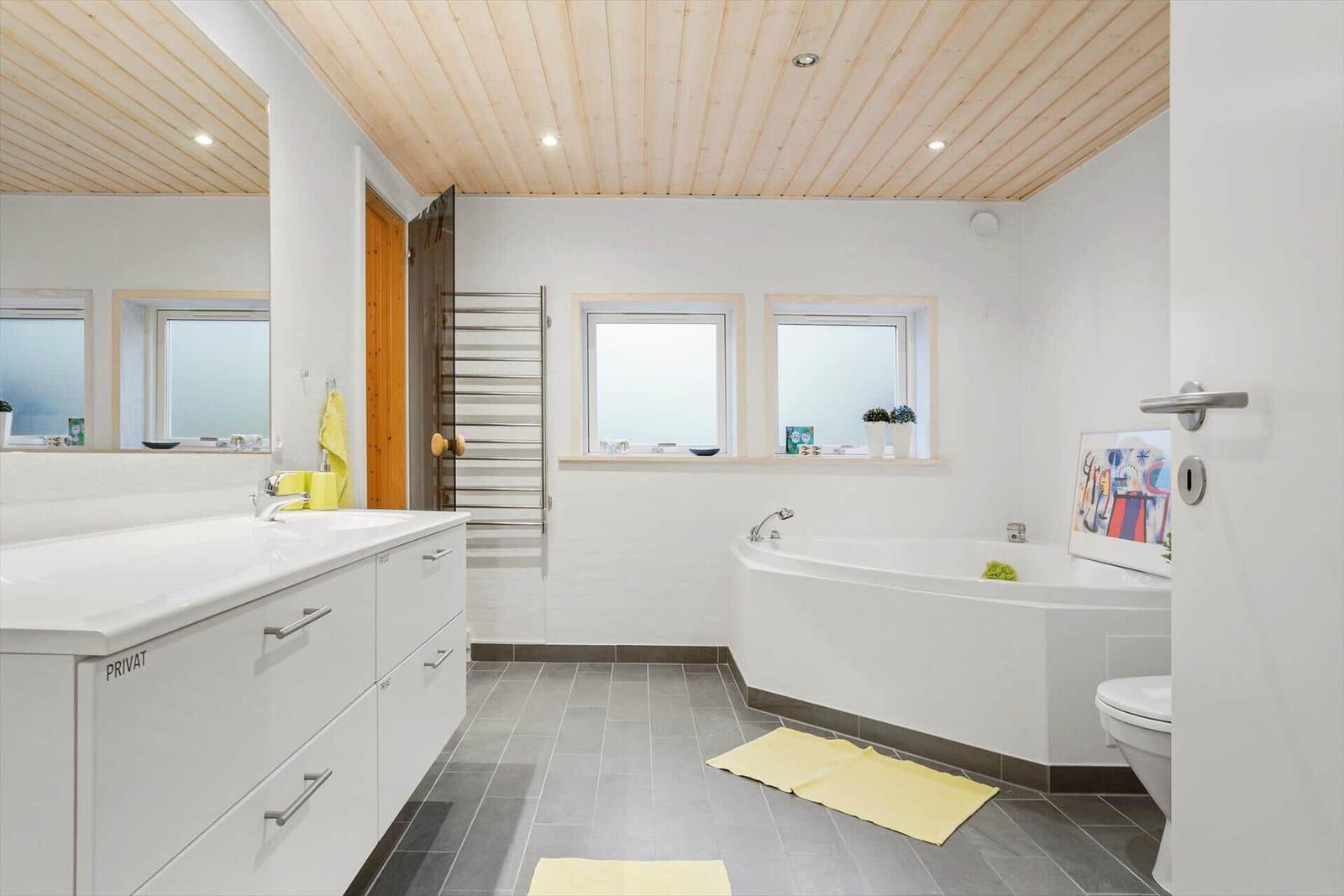 Die Ferienwohnung in Bratten, Nordjütland, bietet auf 128 m² ein ideales Zuhause für bis zu 6 Erwachsene. Drei Schlafzimmer mit insgesamt drei Doppelbetten, zwei Einzelbetten und einem Kinderbett gewährleisten erholsame Nächte. Das Badezimmer ist mit einer Duschbadewanne ausgestattet, und Fußbodenheizung sorgt für wohlige Wärme.