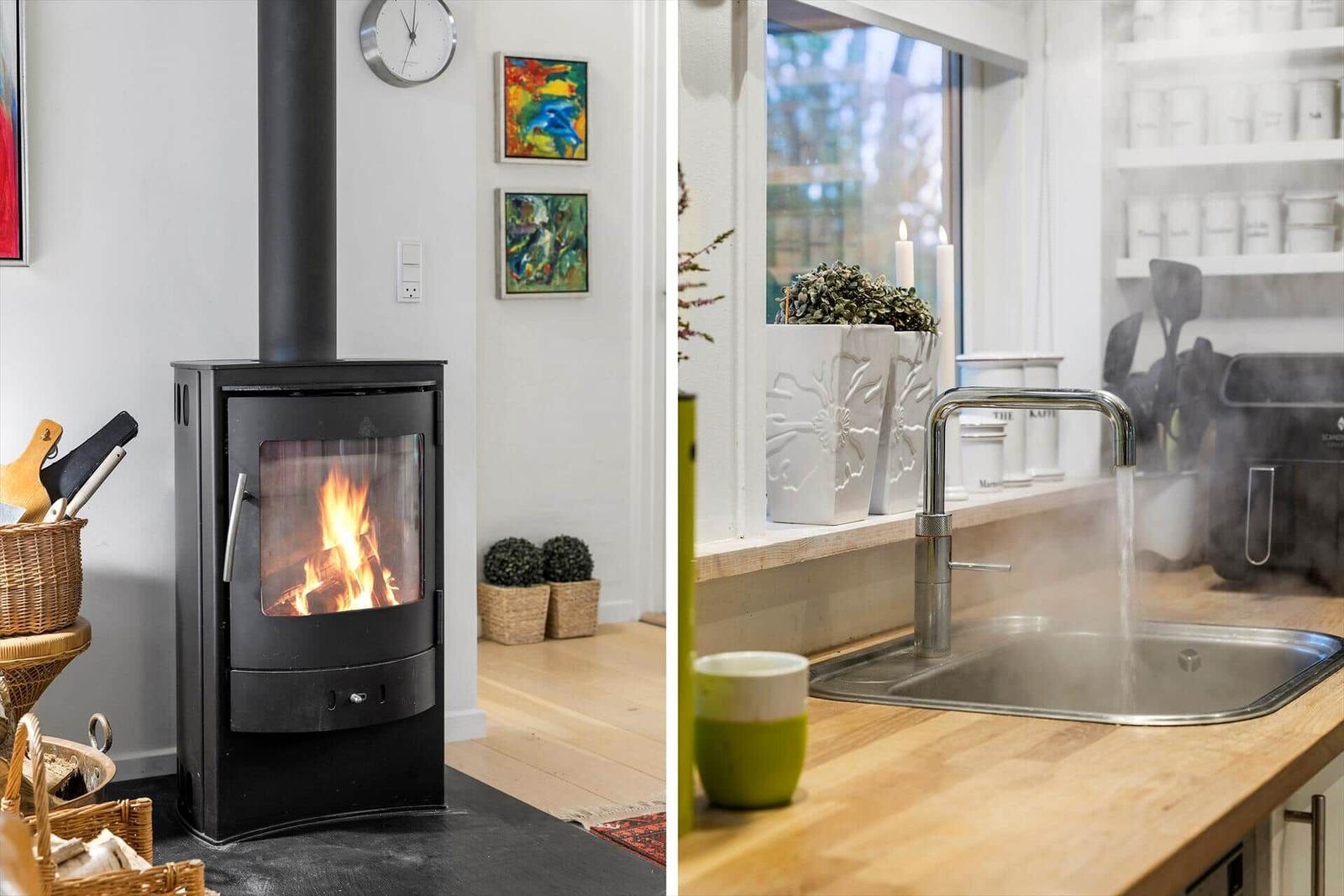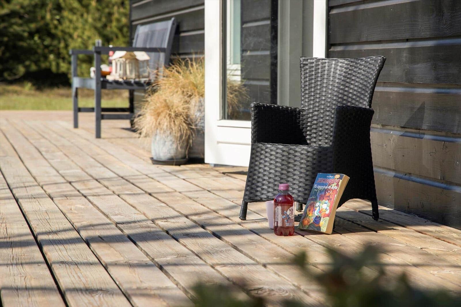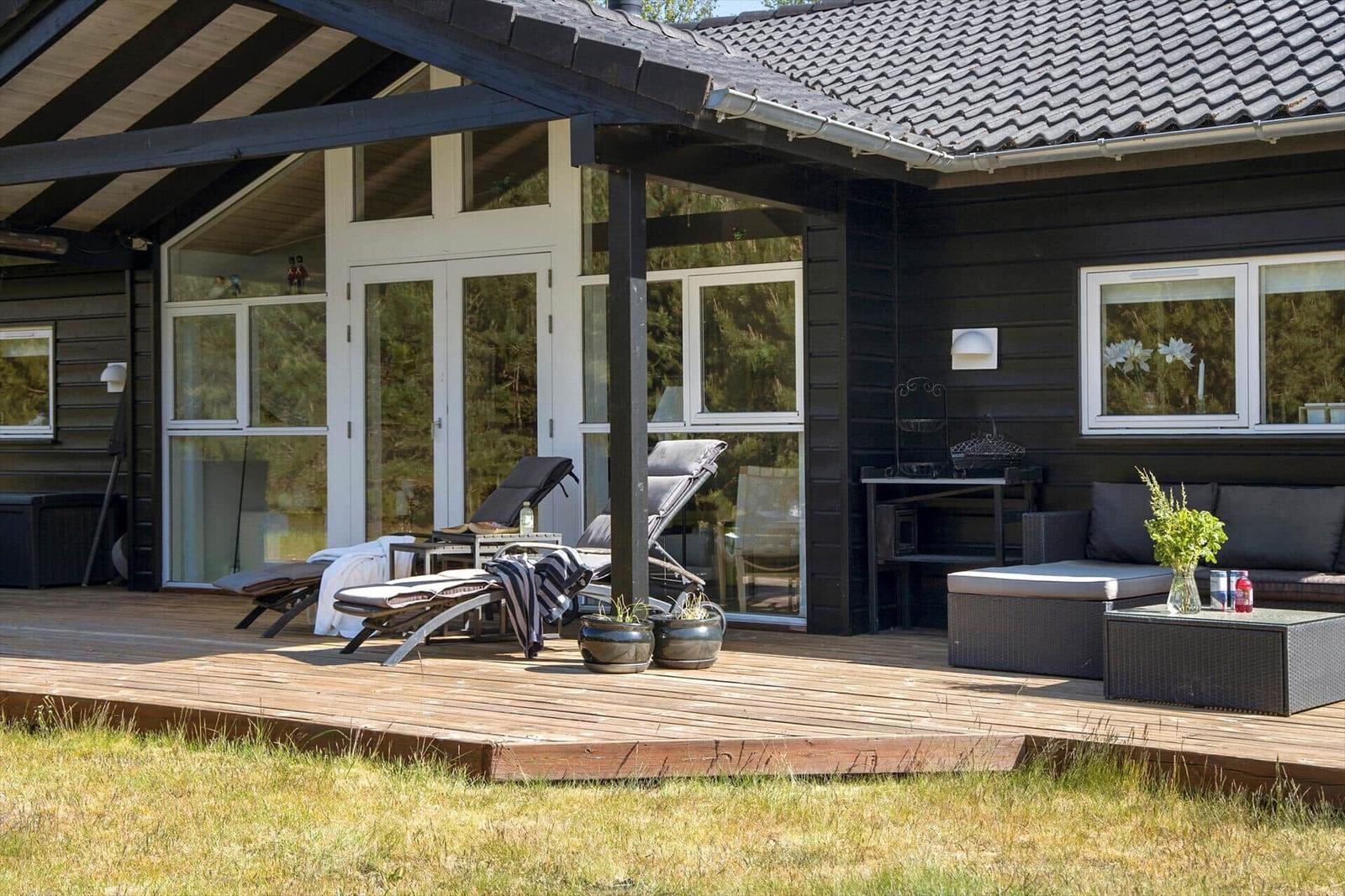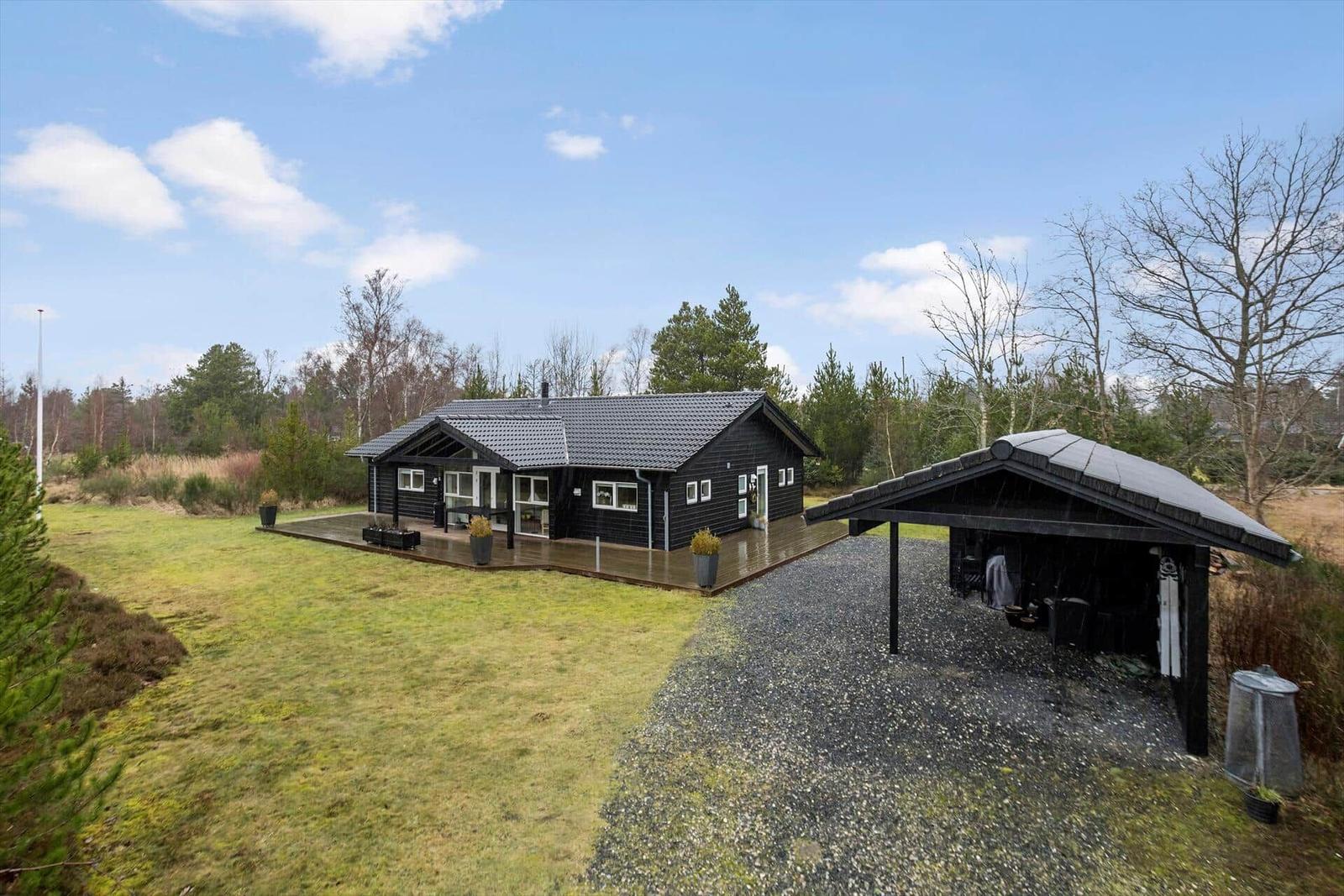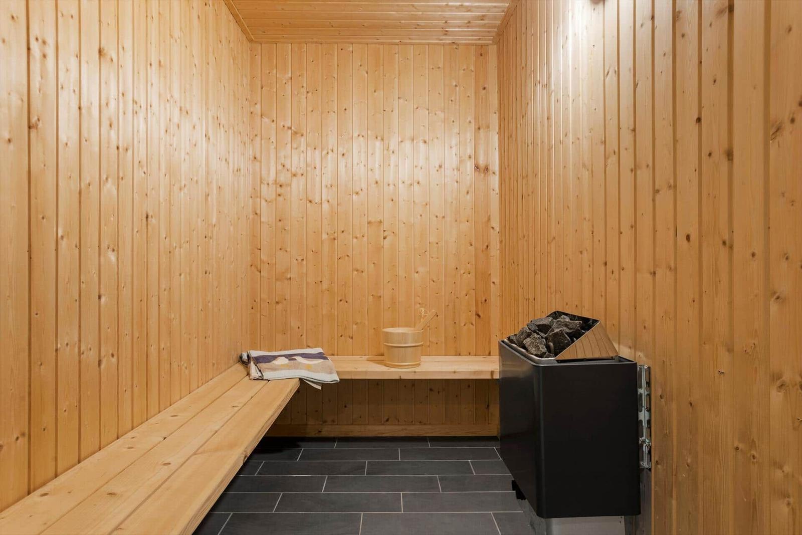 Zur Entspannung stehen ein Kamin im Wohnschlafzimmer, eine eigene Sauna und der Zugang zu schnellem WLAN bereit. Zusätzlich erleichtern Waschmaschine, Wäschetrockner und Bügeleisen den Aufenthalt. Nur 700 Meter trennen die Gäste vom Strand, während sich Einkaufsmöglichkeiten in 3.000 Metern Entfernung befinden. Auf dem großzügigen 3.000 m² Grundstück mit Schaukel ist Platz für Spiel und Spaß.