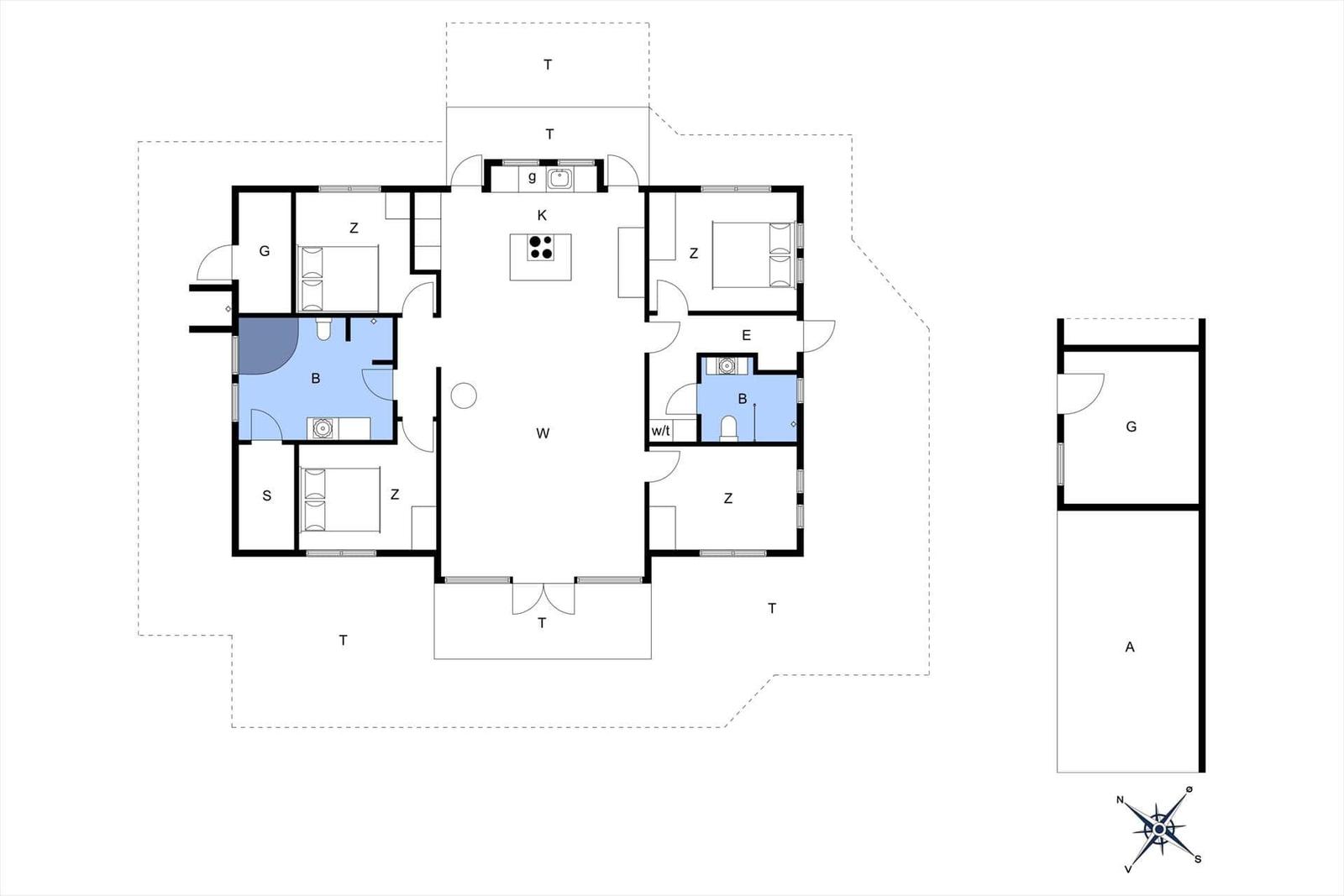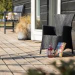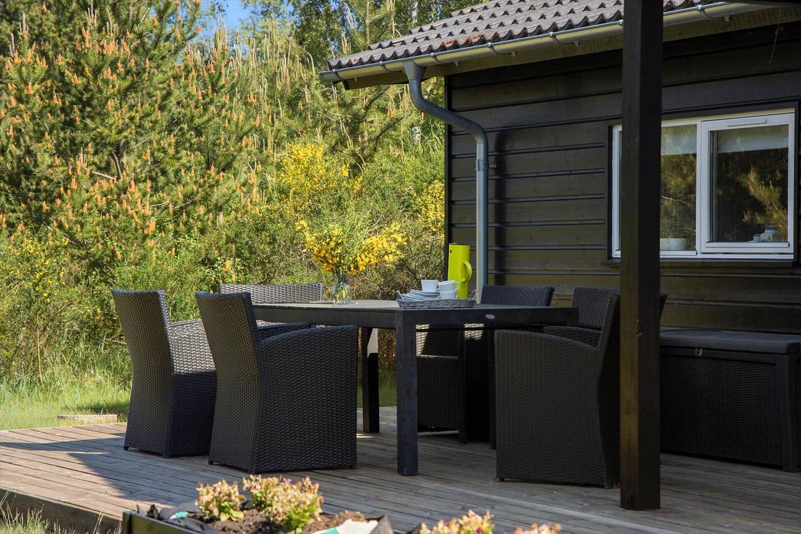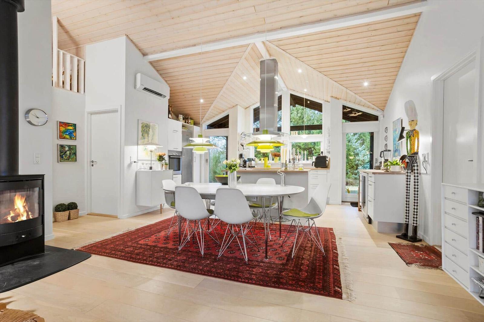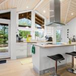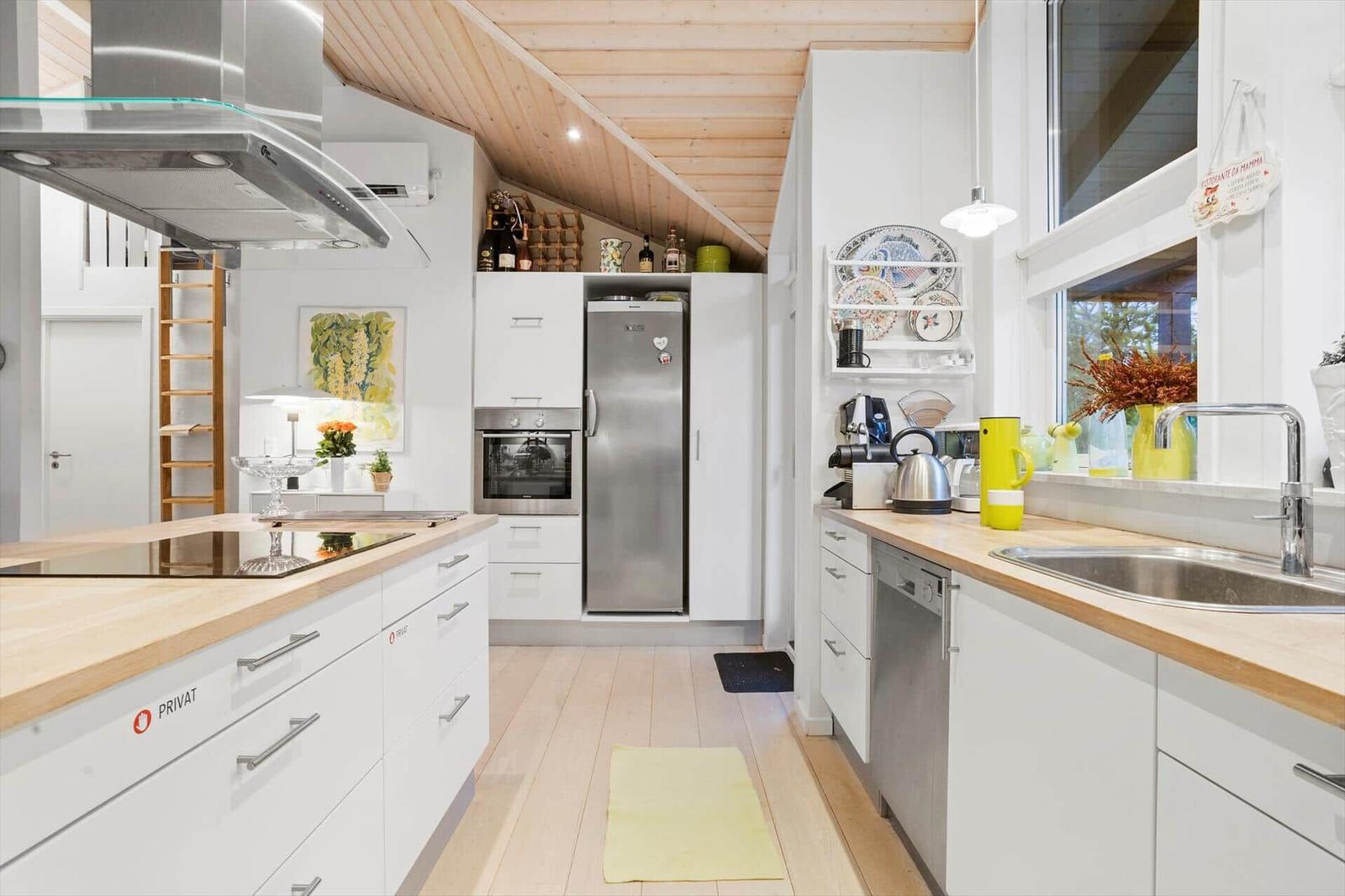 Zur Entspannung stehen ein Kamin im Wohnschlafzimmer, eine eigene Sauna und der Zugang zu schnellem WLAN bereit. Zusätzlich erleichtern Waschmaschine, Wäschetrockner und Bügeleisen den Aufenthalt. Nur 700 Meter trennen die Gäste vom Strand, während sich Einkaufsmöglichkeiten in 3.000 Metern Entfernung befinden. Auf dem großzügigen 3.000 m² Grundstück mit Schaukel ist Platz für Spiel und Spaß.