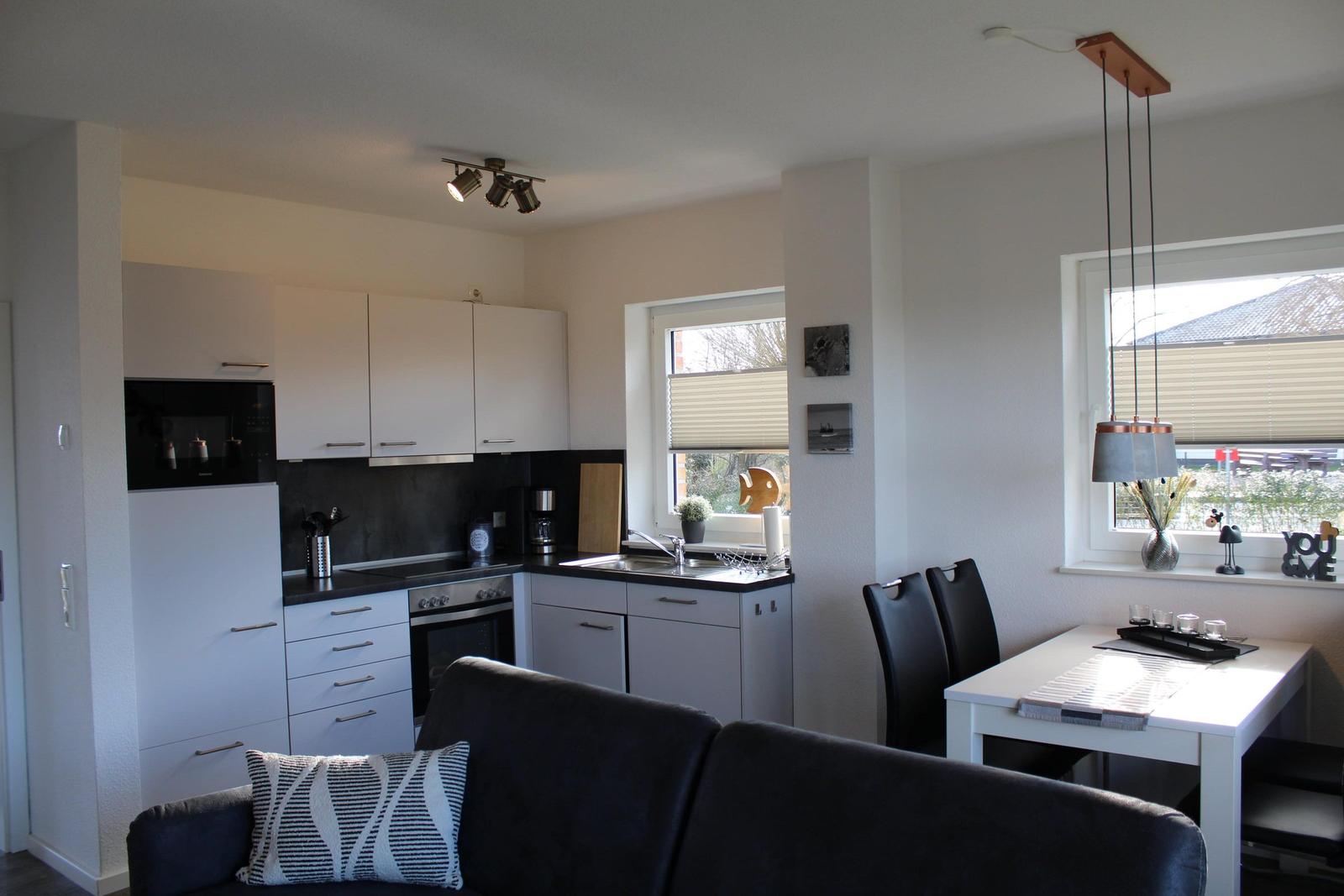 Die Ferienwohnung bietet eine helle und einladende Umgebung, ideal für einen entspannten Aufenthalt. Sie verfügt über zwei gemütliche Schlafzimmer, die jeweils mit einem Doppelbett ausgestattet sind, und somit ausreichend Platz für bis zu vier Personen bieten. Das modern gestaltete Badezimmer ist mit allen Annehmlichkeiten ausgestattet, die für einen komfortablen Aufenthalt erforderlich sind. Der offene Wohnbereich lädt zum Entspannen ein und ist ideal für gesellige Abende. Die großzügige Küche ist mit modernen Geräten ausgestattet, sodass die Zubereitung von Mahlzeiten zum Vergnügen wird. Zudem sorgt die stilvolle Einrichtung für eine angenehme Atmosphäre, die zum Wohlfühlen einlädt. Die Lage der Wohnung ermöglicht eine direkte Anbindung an lokale Freizeitmöglichkeiten und Sehenswürdigkeiten, was sie zu einem perfekten Ausgangspunkt für Erkundungen macht.