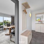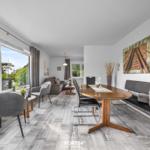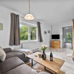Die Ferienwohnung bietet eine großzügige und moderne Ausstattung, die für einen angenehmen Aufenthalt sorgt. Mit insgesamt drei Schlafzimmern, die zwei Doppelbetten und zwei Einzelbetten beinhalten, ist sie ideal für Familien oder Gruppen. Die offene Küche ist vollständig ausgestattet mit einem Geschirrspüler, Elektro-/Gasherd, Backofen, Kühlschrank, Kaffeemaschine und Toaster; alles, was man für die Zubereitung von Mahlzeiten benötigt. Ein Essbereich mit Esstisch ermöglicht gesellige Zusammenkünfte. Die Wohnung verfügt über zwei Badezimmer, eines davon mit bodengleicher Dusche, Haartrockner und Spiegel. Für Unterhaltung sorgen die HiFi-Anlage und der TV. Ein Arbeitsplatz mit Schreibtisch und WLAN stellt sicher, dass auch das Arbeiten nicht zu kurz kommt. Kinderfreundliche Ausstattungen, wie ein Kinderhochstuhl, sind ebenfalls vorhanden. Ein Parkplatz rundet das Angebot ab. Die Wohnung verbindet Komfort mit Funktionalität und lädt zu einem entspannten Aufenthalt ein.
