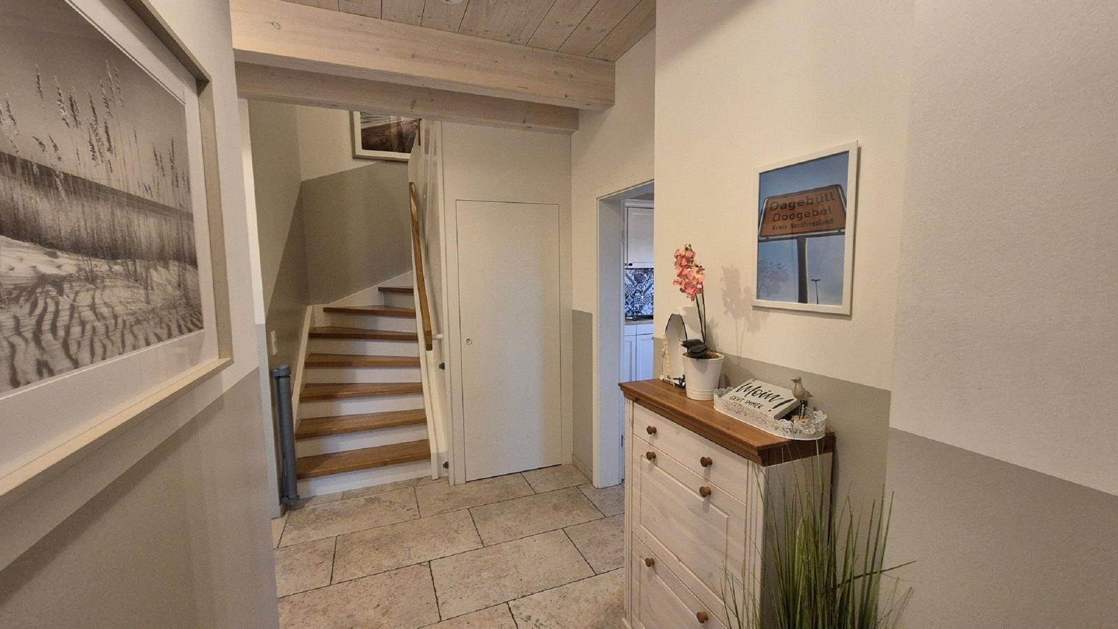 Die Anreise erfolgt bequem mit dem Auto, wobei zwei private Parkplätze direkt an der Unterkunft zur Verfügung stehen. Besucher können die Ruhe der nordfriesischen Küste genießen und die charmante Idylle der Region entdecken, die ideal für einen erholsamen Urlaub ist.
