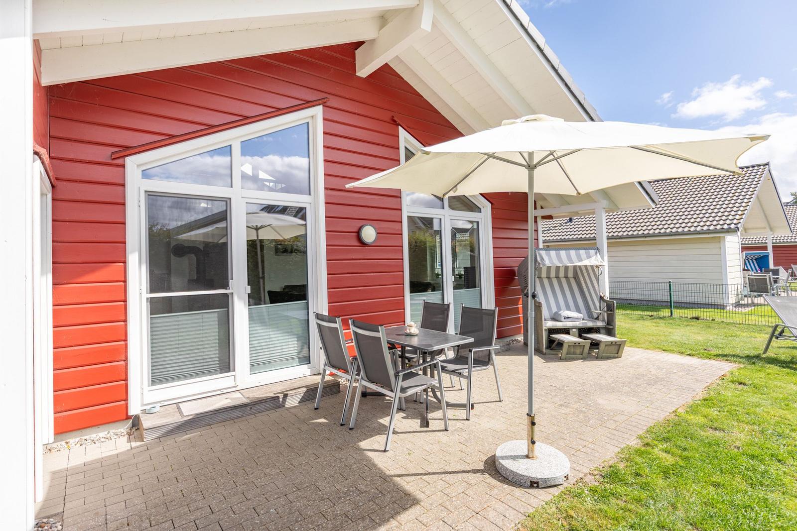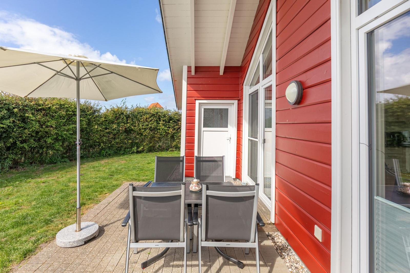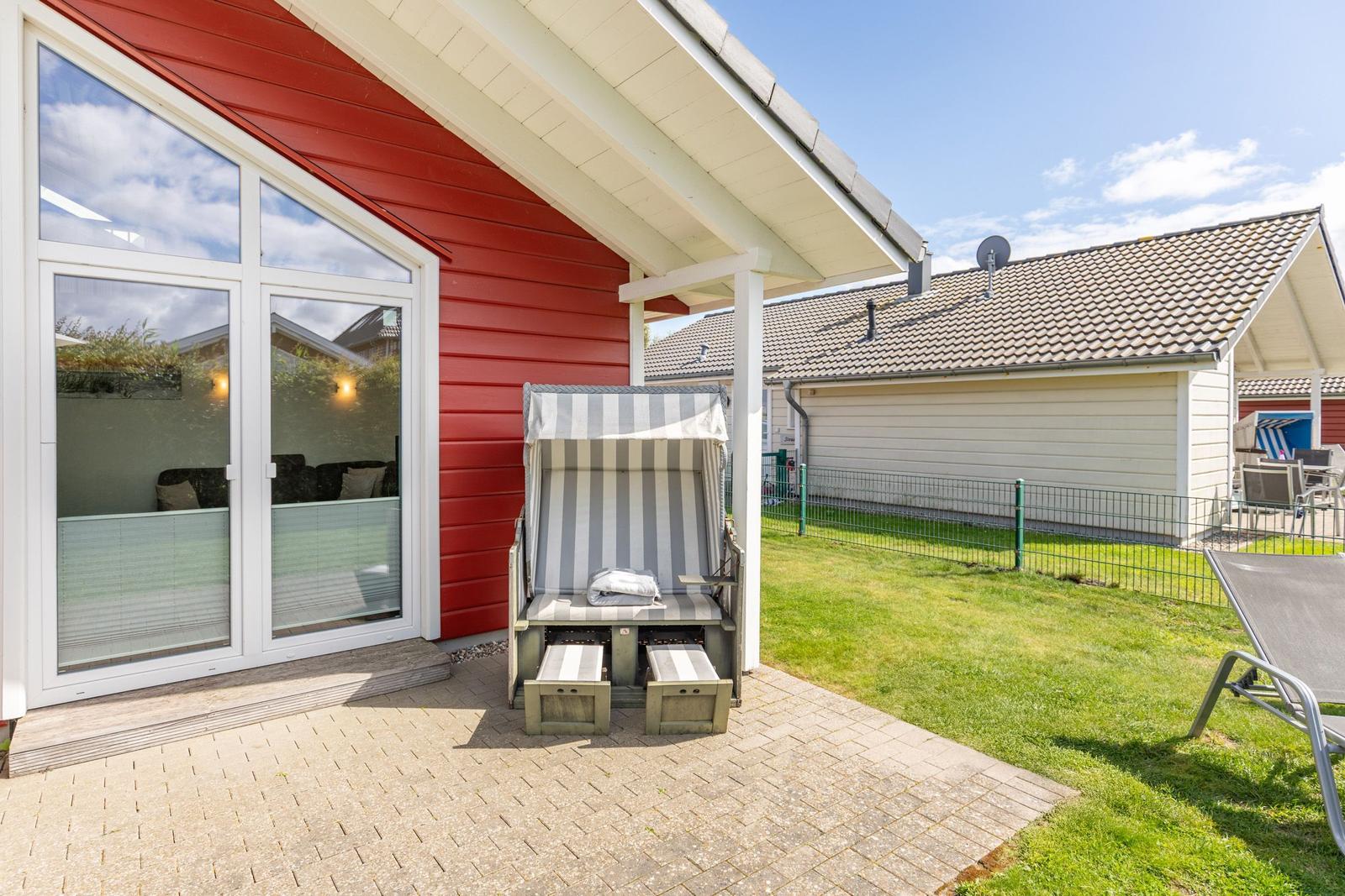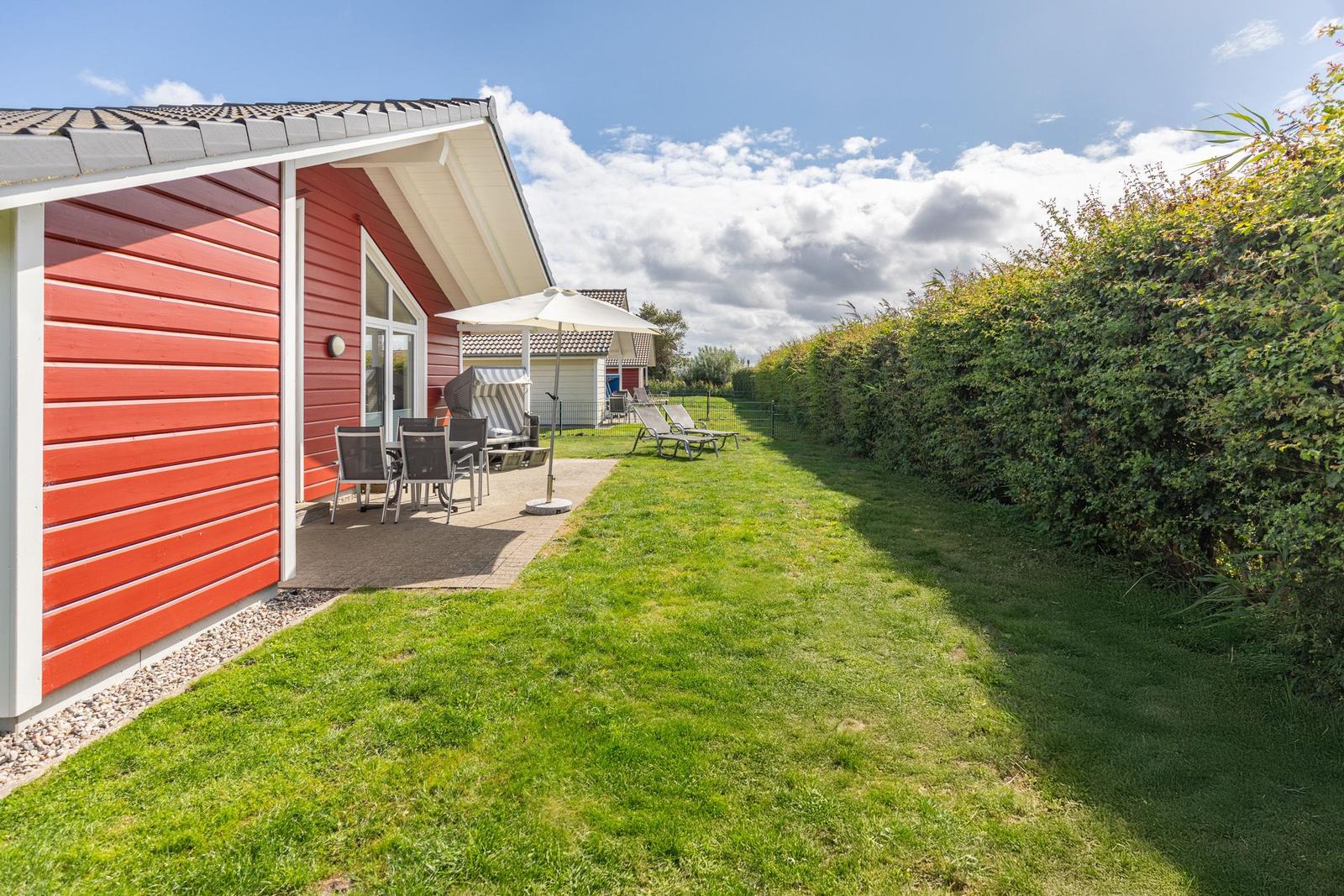 Das Ferienhaus "Friesengeist" in Dagebüll bietet einen einladenden Außenbereich, der zur Erholung und Entspannung einlädt. Die überdachte, windgeschützte Terrasse ist mit komfortablen Gartenstühlen, Sonnenliegen und einem Strandkorb ausgestattet, sodass man die Sonnenstrahlen in vollen Zügen genießen kann. Der großzügig angelegte Außenbereich ist gemeinschaftlich nutzbar und fügt sich harmonisch in die luxuriöse Umgebung des Ferienhausgebiets ein. Hier finden Gäste auch eine Ladenzeile mit Geschäften für den täglichen Bedarf. Das gesamte Areal bietet nicht nur eine ruhige Atmosphäre, sondern auch zahlreiche wander- und erlebnisreiche Möglichkeiten direkt am nahegelegenen bewachten Badestrand. Dank der besonderen Lage eignet sich der Außenbereich ideal für Feriengäste, die die Naturschönheiten der Nordsee erkunden möchten.