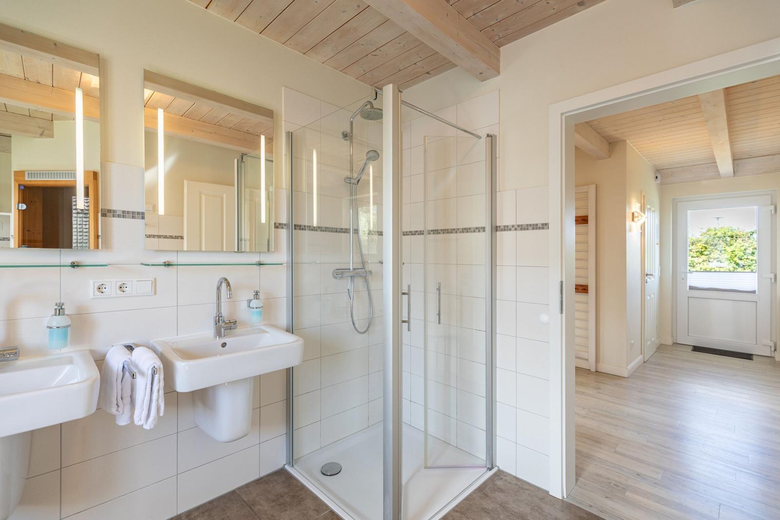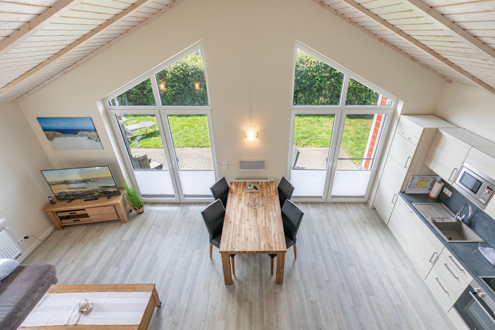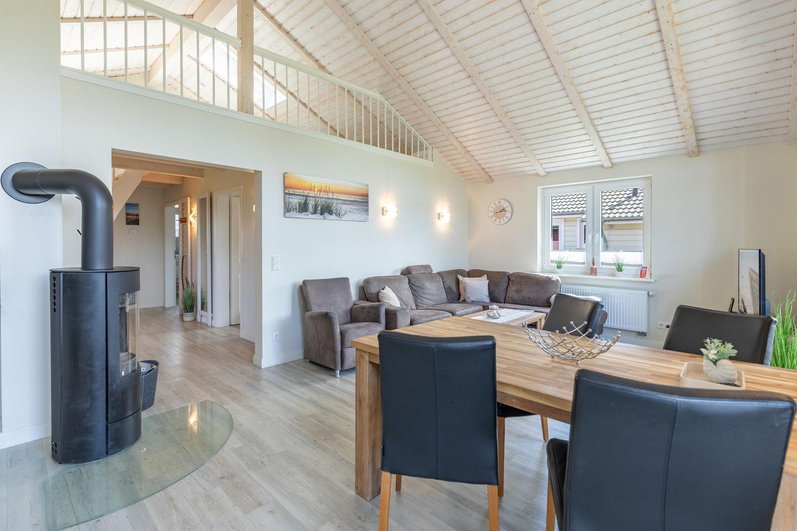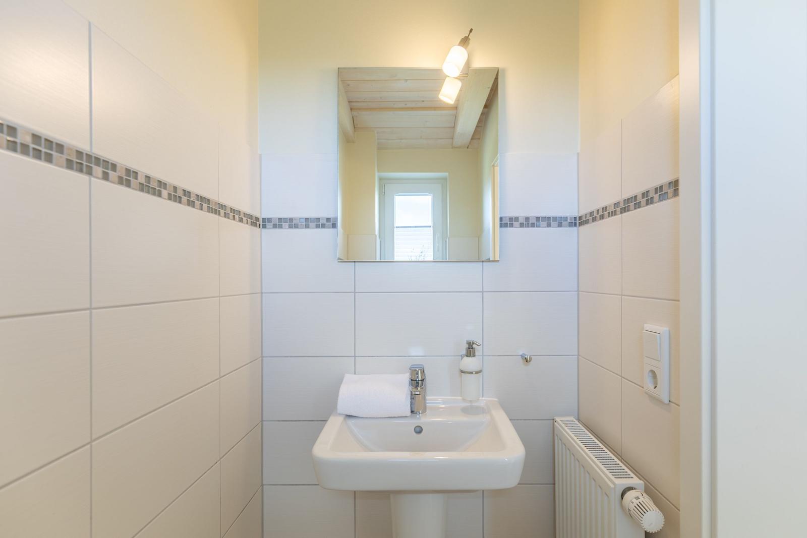 Das Ferienhaus "Friesengeist" in Dagebüll bietet einen einladenden Außenbereich, der zur Erholung und Entspannung einlädt. Die überdachte, windgeschützte Terrasse ist mit komfortablen Gartenstühlen, Sonnenliegen und einem Strandkorb ausgestattet, sodass man die Sonnenstrahlen in vollen Zügen genießen kann. Der großzügig angelegte Außenbereich ist gemeinschaftlich nutzbar und fügt sich harmonisch in die luxuriöse Umgebung des Ferienhausgebiets ein. Hier finden Gäste auch eine Ladenzeile mit Geschäften für den täglichen Bedarf. Das gesamte Areal bietet nicht nur eine ruhige Atmosphäre, sondern auch zahlreiche wander- und erlebnisreiche Möglichkeiten direkt am nahegelegenen bewachten Badestrand. Dank der besonderen Lage eignet sich der Außenbereich ideal für Feriengäste, die die Naturschönheiten der Nordsee erkunden möchten.