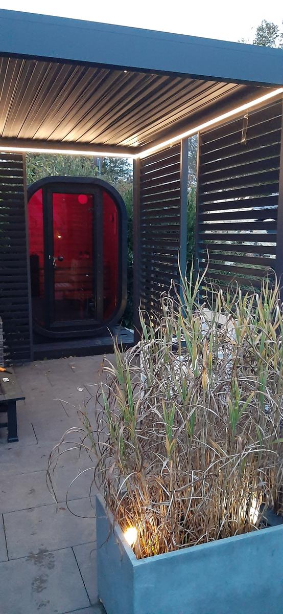 Der Garten läd zum spielen,grillen und chillen ein. Es gibt eine große Terrasse mit Lounge-Möbeln, hübscher Beleuchtung,Markise, Liegen,Grill und Essbereich. Die kleine Terrasse läd am späten Nachmittag mit Lamellenpavillion, Gartensauna,Strandkorb, Sonnenschirm,Tisch und Stühlen auf die letzten Sonnenstrahlen bei einem Glas Wein ein.