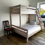 Die Ferienwohnung bietet eine harmonische Kombination aus Komfort und Funktionalität. Sie umfasst zwei Schlafzimmer, eines davon mit einem Doppelbett, und zwei Badezimmer, die mit einer bodengleichen Dusche und einer Badewanne ausgestattet sind. Die offene Küche lässt mit einem Geschirrspüler, Elektro-/Gasherd, Backofen, Mikrowelle, Kühlschrank und weiteren Küchengeräten keine Wünsche offen. Ein Esstisch lädt zu geselligem Beisammensein ein.