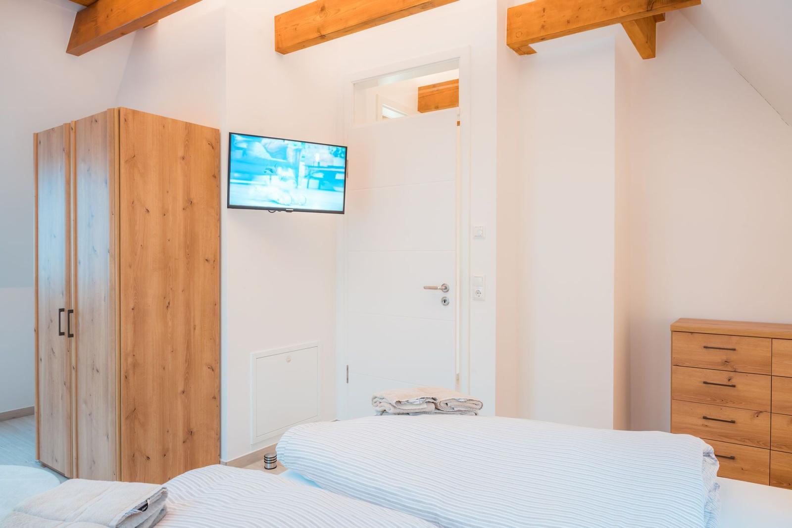 In dieser charmanten Ferienwohnung findet sich eine harmonische Kombination aus modernen Annehmlichkeiten und stilvollem Design. Die Unterkunft verfügt über zwei geräumige Schlafzimmer mit jeweils einem Doppelbett, ideal für Erholung und Entspannung. Zwei Badezimmer, eines mit bodengleicher Dusche und Fenster, sorgen für zusätzlichen Komfort.