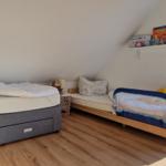 Die stilvolle Ferienwohnung besticht durch ihre durchdachte Raumaufteilung und hochwertige Ausstattung. Sie verfügt über zwei komfortable Schlafzimmer – eines mit einem Doppelbett und eines mit zwei Einzelbetten – ideal für Familien oder Paare. Das Badezimmer mit Fenster bietet eine bodengleiche Dusche und eine angenehme Fußbodenheizung. Die separate Küche ist vollständig eingerichtet, darunter Geschirrspüler, Elektro-/Gasherd, Backofen, Mikrowelle und Kühlschrank, um den kulinarischen Bedürfnissen gerecht zu werden. Ein gemütliches Wohnzimmer mit Sofa, TV und HiFi-Anlage lädt zum Entspannen ein. Für zusätzlichen Komfort stehen ein Gäste-WC, Haartrockner, Waschmaschine und kostenloses WLAN zur Verfügung. Für Familien bieten sich ein Kinderhochstuhl und Spielzeug an. Ein Parkplatz ist ebenfalls vorhanden, und Fahrräder können genutzt werden. Diese Ferienwohnung garantiert ein angenehmes und allergikerfreundliches Ambiente für erholsame Tage.