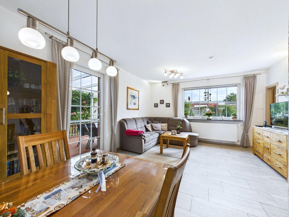Die Ferienwohnung bietet eine komfortable und gut ausgestattete Unterkunft für bis zu acht Personen. Sie verfügt über zwei geräumige Schlafzimmer, in denen jeweils ein Doppelbett Platz findet, sowie zusätzlich zwei Doppelbetten im Wohnbereich. Die separate Küche ist modern ausgestattet mit einem Elektro-/Gasherd, Backofen, Mikrowelle, Geschirrspüler und Kühlschrank, wodurch das Kochen zum Vergnügen wird. Eine Kaffeemaschine, ein Toaster und Gefriermöglichkeiten runden das Angebot ab. Im stilvollen Duschbad gibt es neben einer Waschmaschine auch praktische Ablagemöglichkeiten. Der großzügige Esstisch lädt zu geselligen Mahlzeiten ein. Für Unterhaltung sorgt ein TV, während das Internet ohne WLAN einen zuverlässigen Zugang bietet. Heizung und Rauchmelder sorgen für Sicherheit und Komfort. Diese Ferienwohnung ist der ideale Rückzugsort für einen gelungenen Aufenthalt.