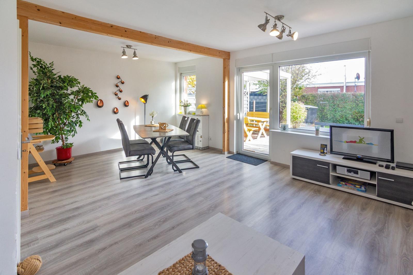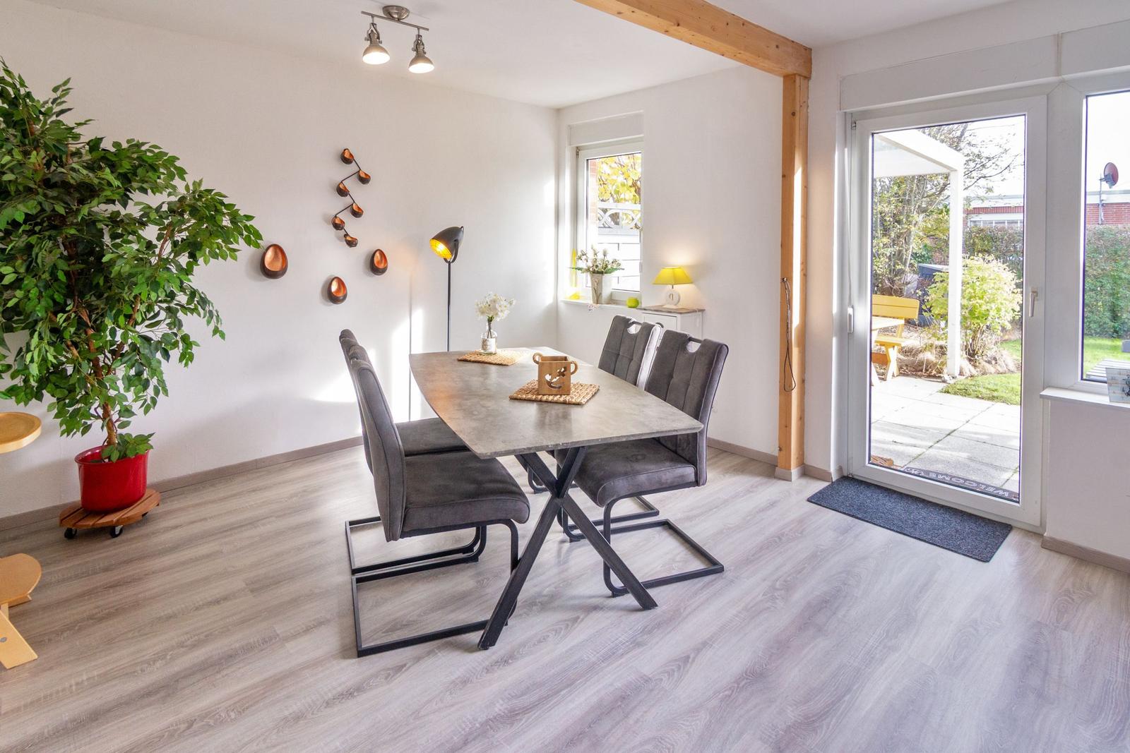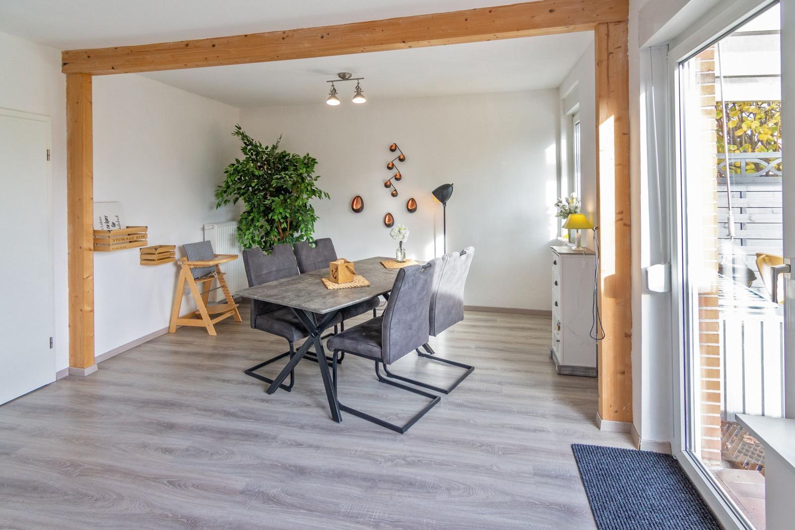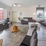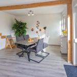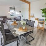 Die Ferienwohnung bietet großzügigen Platz mit zwei Schlafzimmern, einschließlich eines Doppelbettes und zwei Einzelbetten. Sie ist hell und einladend gestaltet und eignet sich hervorragend für Familien oder Gruppen. Die separate Küche ist komplett ausgestattet mit einem Geschirrspüler, Elektro- und Gasherd, Mikrowelle, Kühlschrank und Toaster sowie nützlichen Küchengeräten wie einer Kaffeemaschine, einem Mixer und einem Eierkocher.