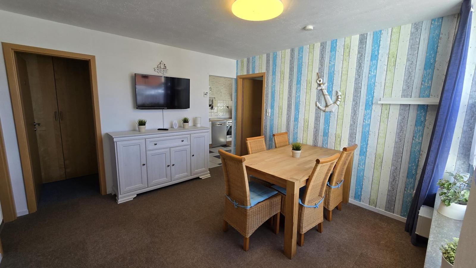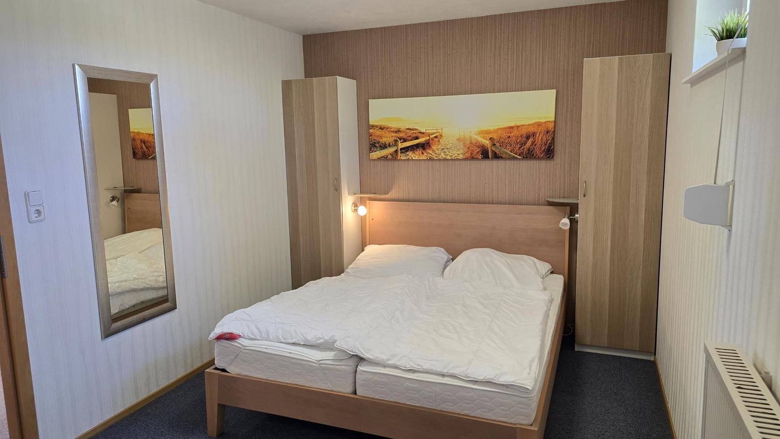 Diese moderne Ferienwohnung bietet eine optimale Ausstattung für einen erholsamen Aufenthalt. Mit zwei geräumigen Schlafzimmern, ausgestattet mit insgesamt vier Doppelbetten, finden bis zu acht Personen Platz. Die barrierefreie und seniorengerechte Gestaltung gewährleistet zusätzlichen Komfort. Eine gut ausgestattete Küchenzeile mit Elektro-/Gasherd, Backofen, Kühlschrank, Kaffeemaschine, Wasserkocher und Toaster lädt zum Kochen ein. Das Duschbad mit Haartrockner sorgt für erfrischende Momente. Für entspannte Stunden stehen ein einladendes Sofa und ein Esstisch zur Verfügung. WLAN-Internet, ein TV sowie die Waschmaschine bieten moderne Annehmlichkeiten. Ein privater Eingang und ein Parkplatz sind ebenso vorhanden wie Maßnahmen zur Mülltrennung und Energieeffizienz durch Bio-/Öko-Strom. Zur Sicherheit tragen Rauchmelder und ein Kohlenmonoxid-Detektor bei. Der Kinderhochstuhl rundet das Angebot ab, um Familien einen unbeschwerten Aufenthalt zu ermöglichen.