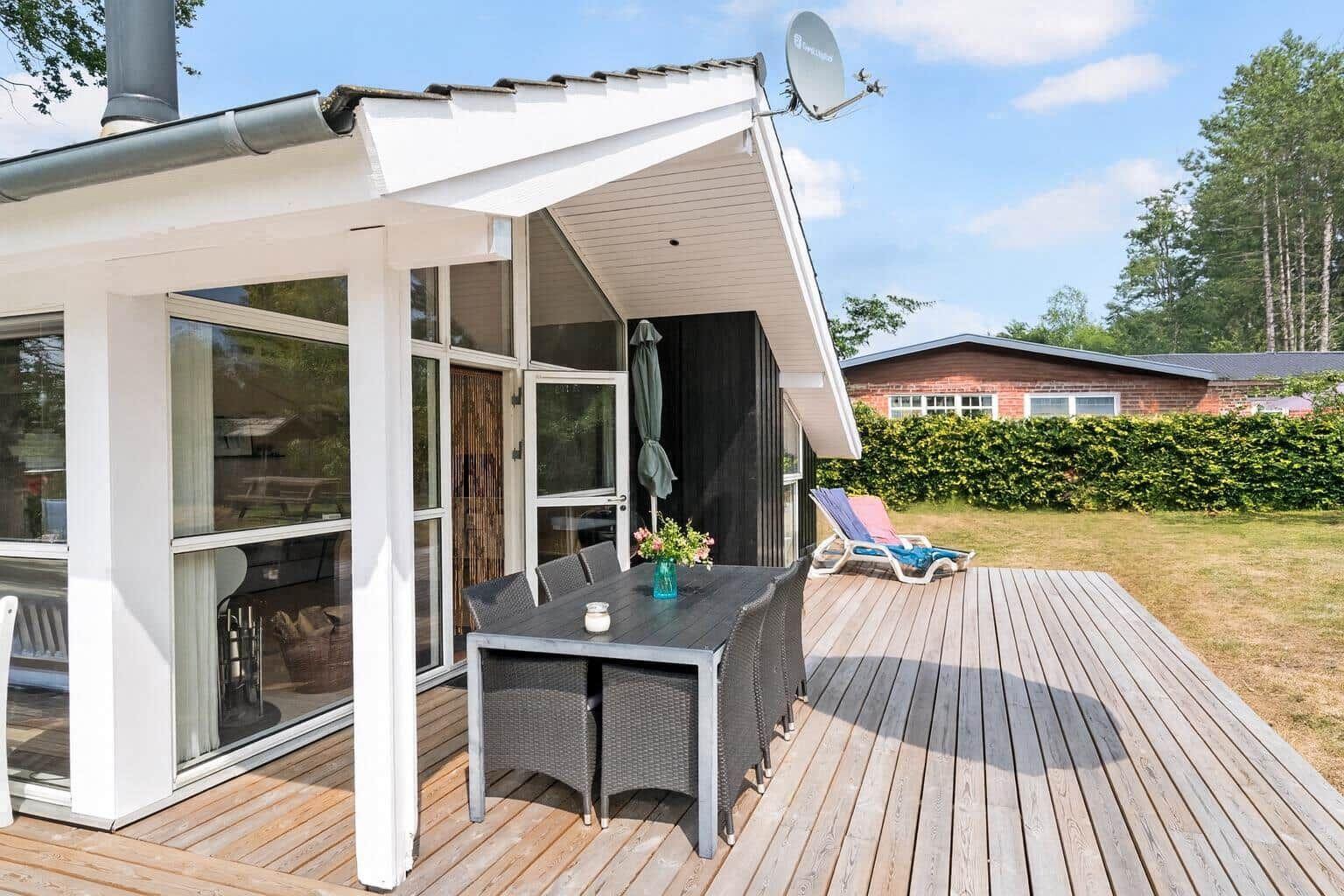 Die voll ausgestattete Küche umfasst einen Geschirrspüler, einen Elektro-/Gasherd, einen Backofen, eine Mikrowelle, einen Kühlschrank mit Gefriermöglichkeit sowie eine Kaffeemaschine und einen Wasserkocher. Ein Kinderhochstuhl ist ebenfalls vorhanden. Weitere Annehmlichkeiten sind Internet mit WLAN, ein TV, eine Waschmaschine und Fußbodenheizung. Außenbereich mit Schaukel und Sandkasten auf einem großzügigen 1.000 m² Grundstück, nur 400 Meter zum Strand.