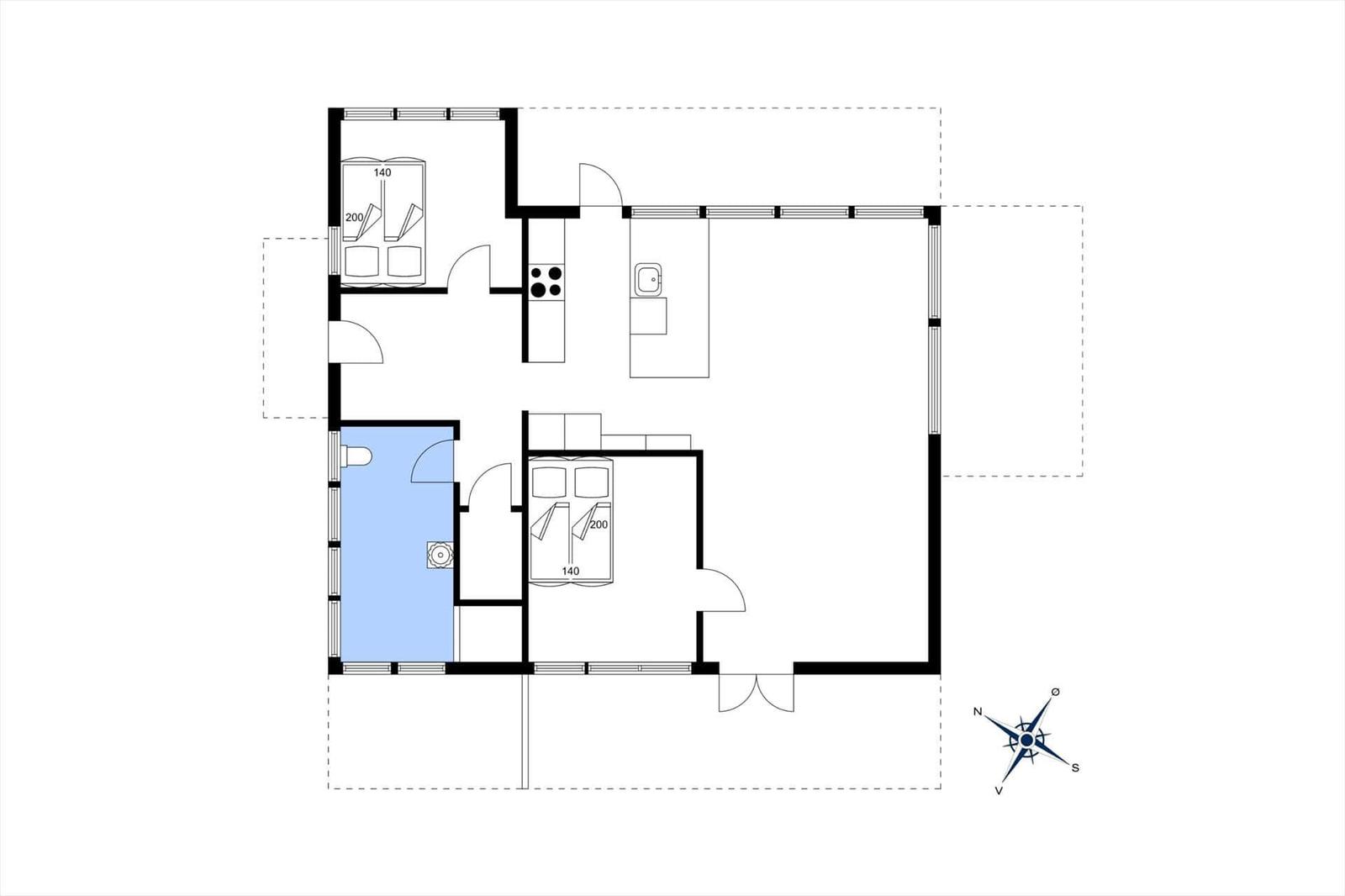 Die Unterkunft verfügt über 5 Schlafzimmer, darunter 4 Doppelbetten, 2 Einzelbetten und 2 Kinderbetten, sowie 2 Badezimmer mit Duschbad. Die beiden Wohnschlafzimmer bieten zusätzlichen Platz. Für den persönlichen Wohnkomfort sorgt die Fußbodenheizung, während Waschmaschine und Wäschetrockner den Alltag erleichtern. Internet mit WLAN ist ebenfalls verfügbar, und der nahegelegene Strand liegt nur 75 Meter entfernt. Ein weitläufiges Grundstück mit Trampolin rundet das Angebot ab.