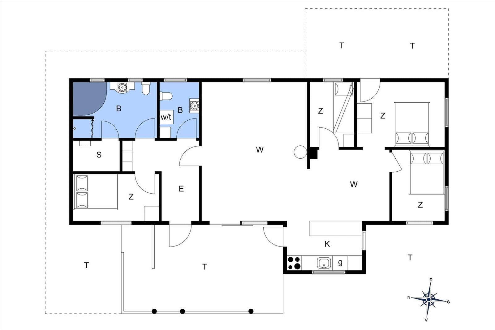 Die zwei Badezimmer sind modern gestaltet und mit einem Duschbad ausgestattet. Der offene Wohnbereich integriert ein Wohnzimmer mit Smart-TV und einen Essbereich mit einem Kinderhochstuhl. Die Küche lässt keine Wünsche offen: Sie ist mit einem Geschirrspüler, Elektro-/Gasherd, Backofen, Mikrowelle, Kühlschrank sowie einer Kaffeemaschine und Gefriermöglichkeiten ausgestattet.