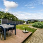 Diese moderne Ferienwohnung bietet eine stilvolle und komfortable Unterkunft mit beeindruckendem Ausblick über die Ho Bucht. Die gut durchdachte Ausstattung umfasst einen offenen Küchen-, Wohn- und Essbereich, der mit großen Fensterfronten das Licht optimal einfängt. Die helle Küche ist mit einem Geschirrspüler, Elektro- und Gasherd, Mikrowelle, Kühlschrank, Kaffeemaschine und Wasserkocher ausgestattet. Der Wohnbereich lädt mit einem Smart-TV und einem romantischen Kamin zum Entspannen ein. Die Wohnung verfügt über drei Schlafzimmer, darunter zwei mit Doppelbetten, und zwei elegante Badezimmer mit Waschsäule, Waschmaschine und Wäschetrockner. Ein energieeffizientes Heizungssystem sorgt für Wohlfühltemperaturen. WLAN ist im gesamten Haus verfügbar, ideal für entspannte Abende oder die Planung von Ausflügen. Genießen Sie die großzügige Terrasse mit traumhafter Aussicht und profitieren Sie von der ruhigen Lage in der Nähe von Strand und Wald.