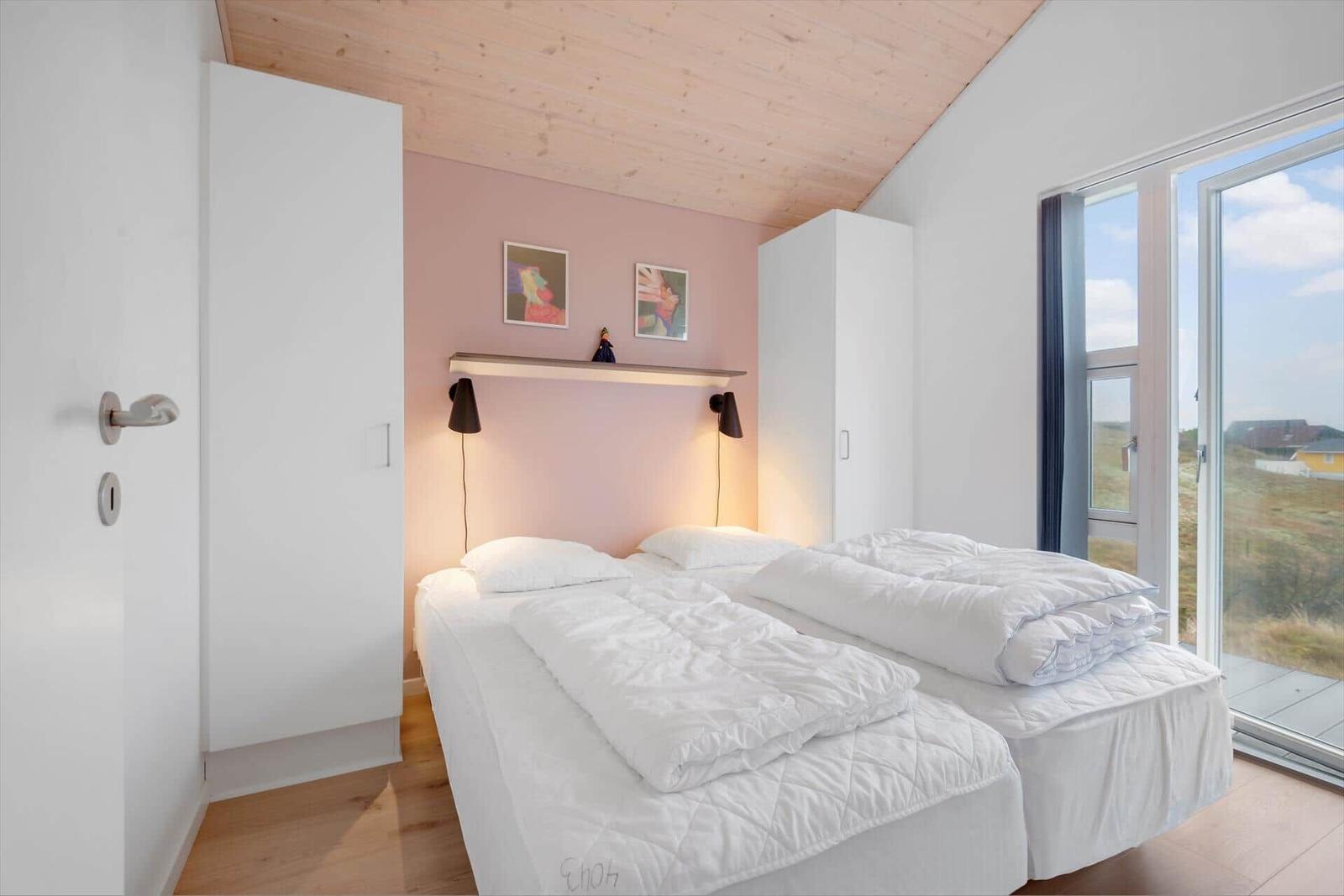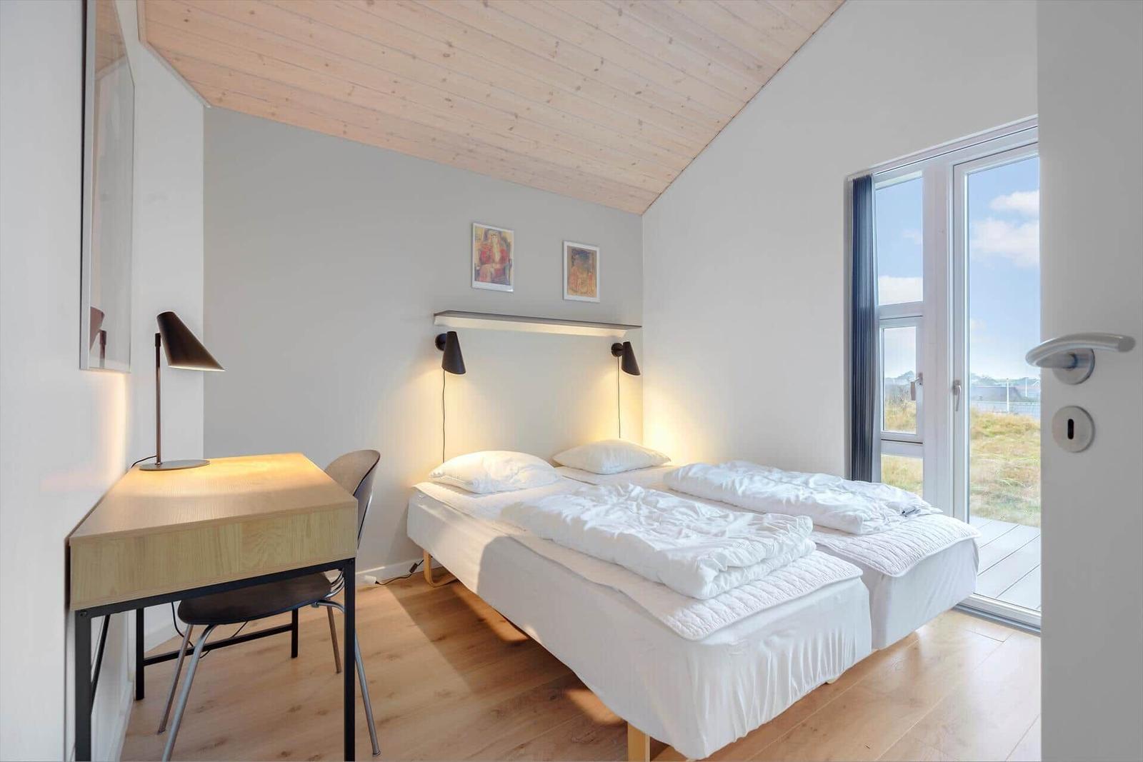 Technologische Annehmlichkeiten wie WLAN, TV und ein DVD-/Blu Ray-Player sorgen für Unterhaltung. Hauswirtschaftliche Geräte wie Waschmaschine, Wäschetrockner und Wasserkocher machen den Aufenthalt komfortabel. Die Fußbodenheizung und die energieeffiziente Heizung garantieren Gemütlichkeit zu jeder Jahreszeit. Ein großes Grundstück mit Schaukel und Sandkasten rundet das Angebot ab. Nur 700 Meter bis zum Strand und zu Einkaufsmöglichkeiten.