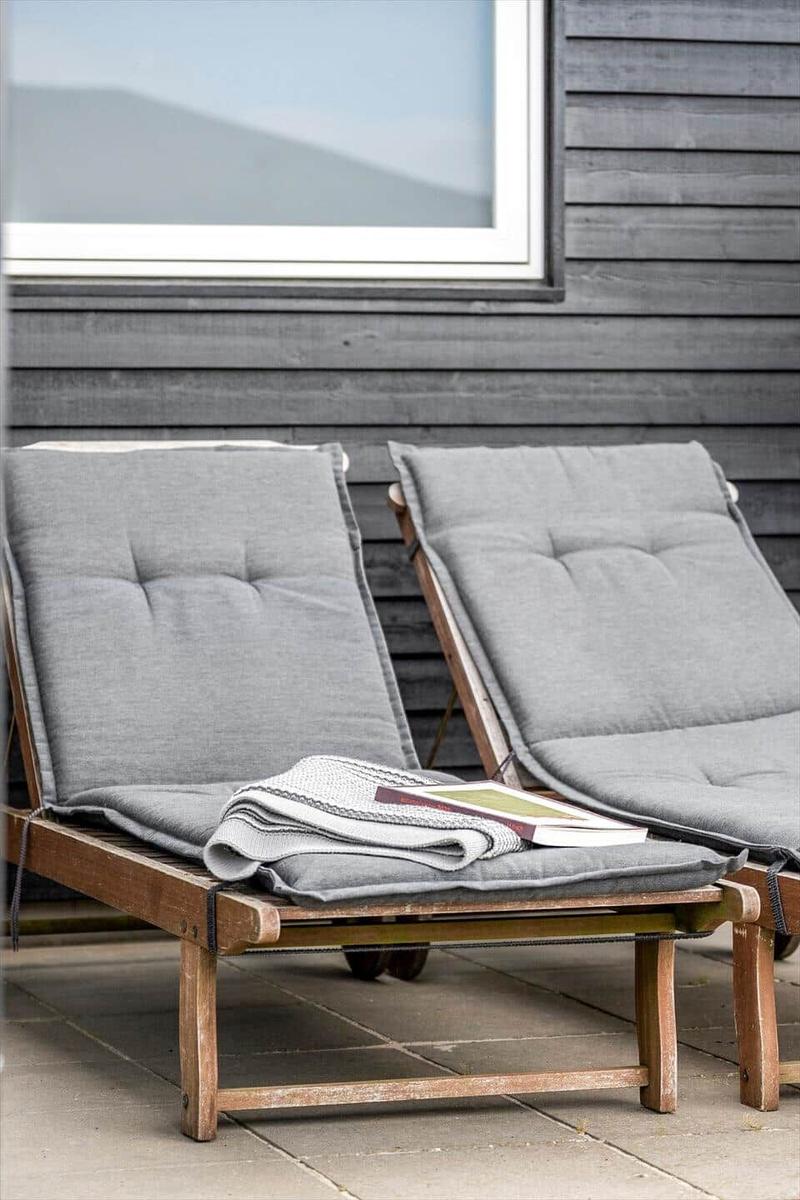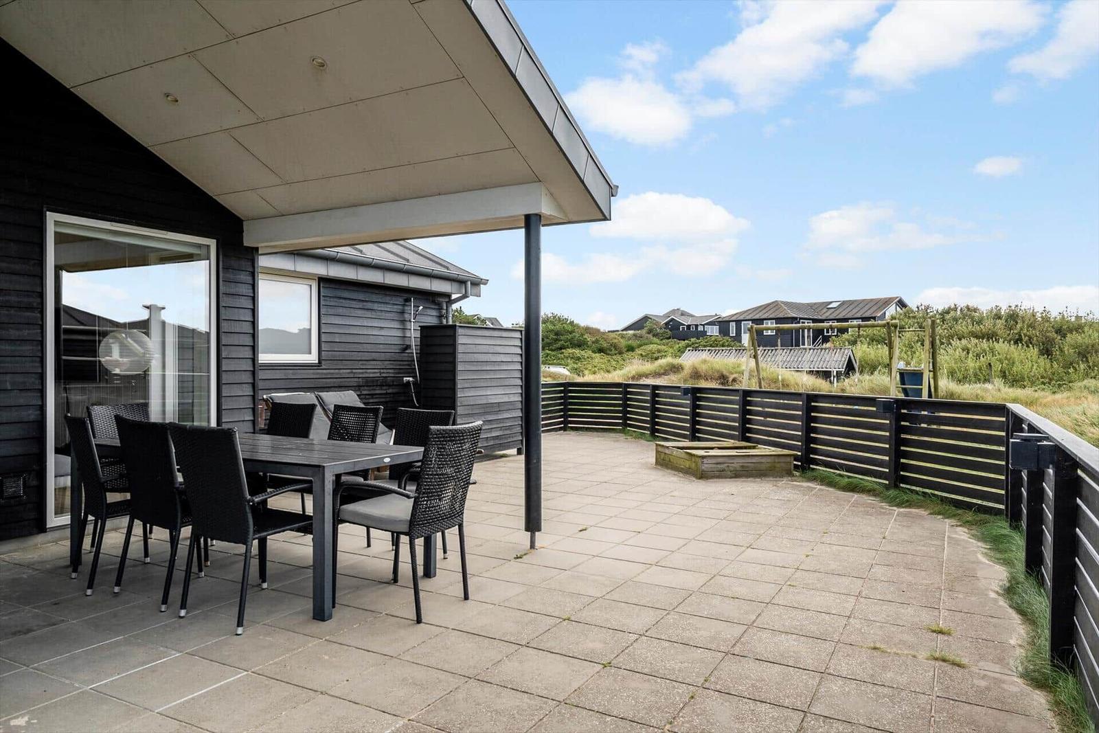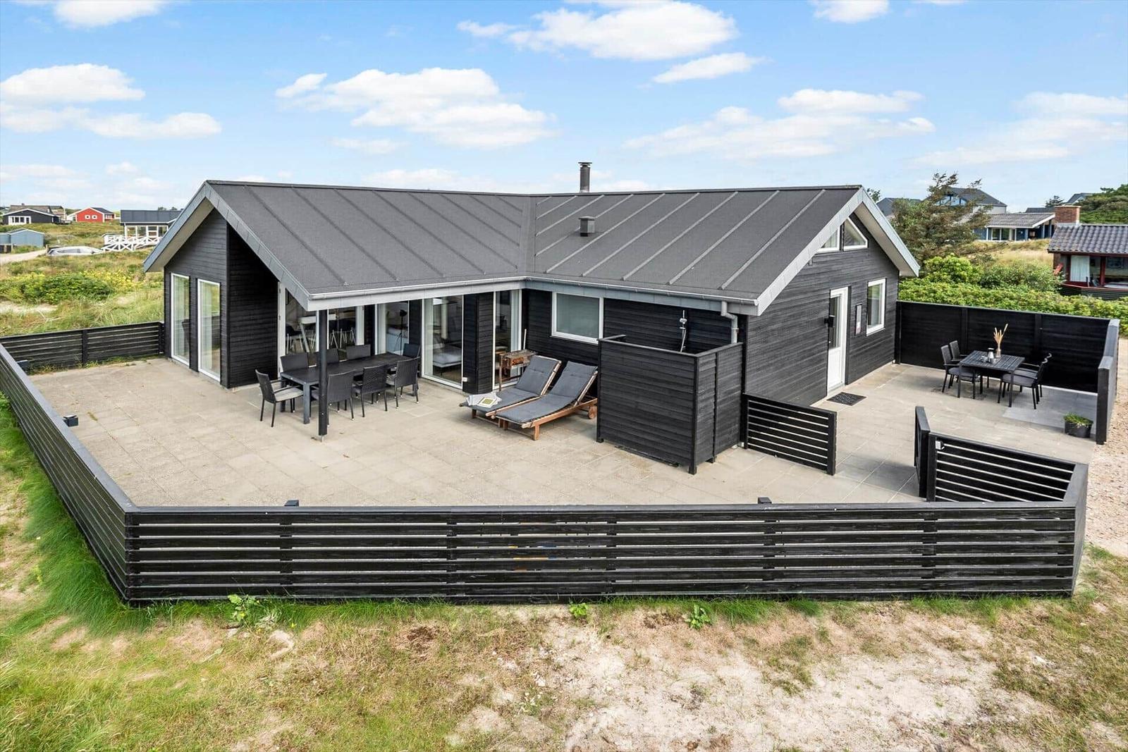 Zusätzliche Annehmlichkeiten wie WLAN, TV, Waschmaschine, Wäschetrockner und Fußbodenheizung sorgen für höchsten Komfort. Der Außenbereich bietet ein 1.400 m² großes Grundstück mit Schaukel und Sandkasten, ideal für erholsame Tage in der Nähe des Strandes.