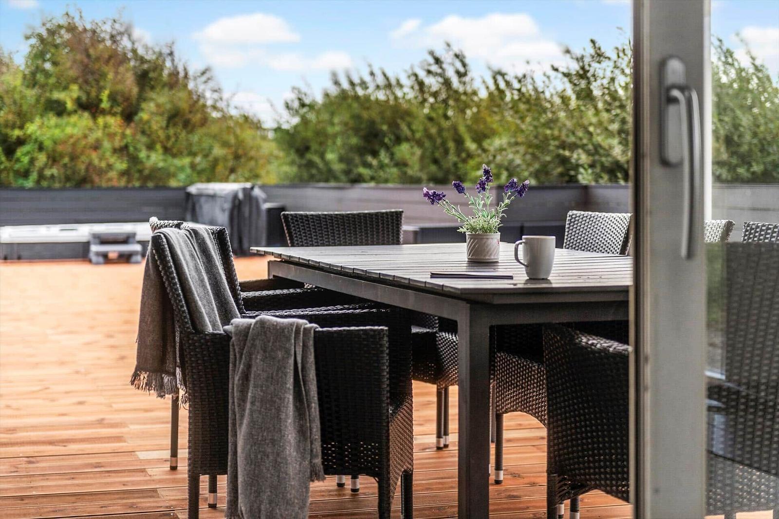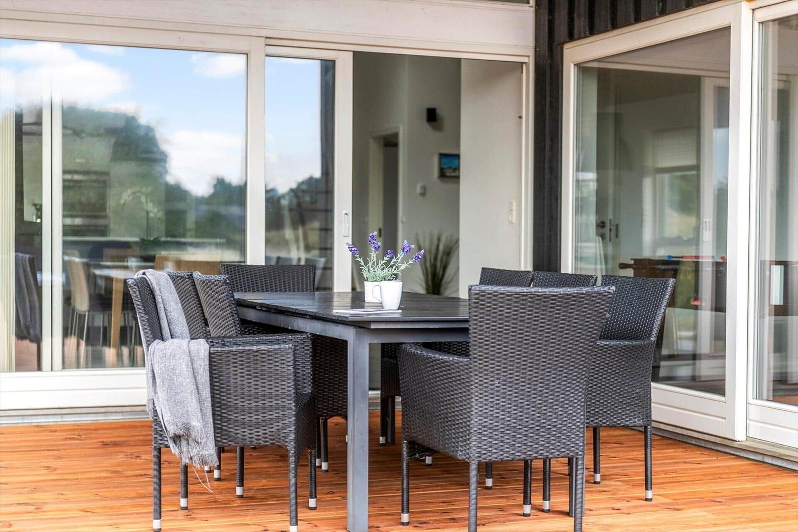 Die Ferienwohnung in Sønderho, Westjütland, bietet auf großzügigen 170 m² Platz für bis zu 10 Erwachsene und 2 Haustiere. Die fünf Schlafzimmer, ausgestattet mit vier Doppelbetten, schaffen eine behagliche Atmosphäre. Sie verfügt über zwei moderne Badezimmer sowie ein einladendes Wohnschlafzimmer. Die offene Küche ist mit hochwertigen Geräten wie einem Elektro-/Gasherd, Backofen, Geschirrspüler und Kühlschrank ausgestattet, ergänzt durch eine Mikrowelle und eine Kaffeemaschine. Für Familien steht ein Kinderhochstuhl bereit.