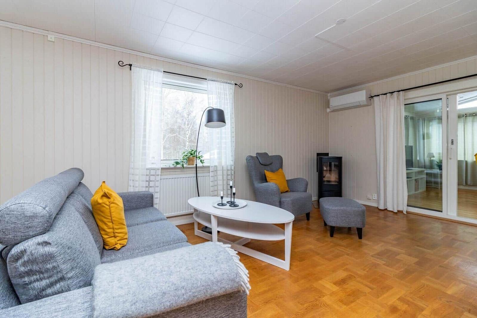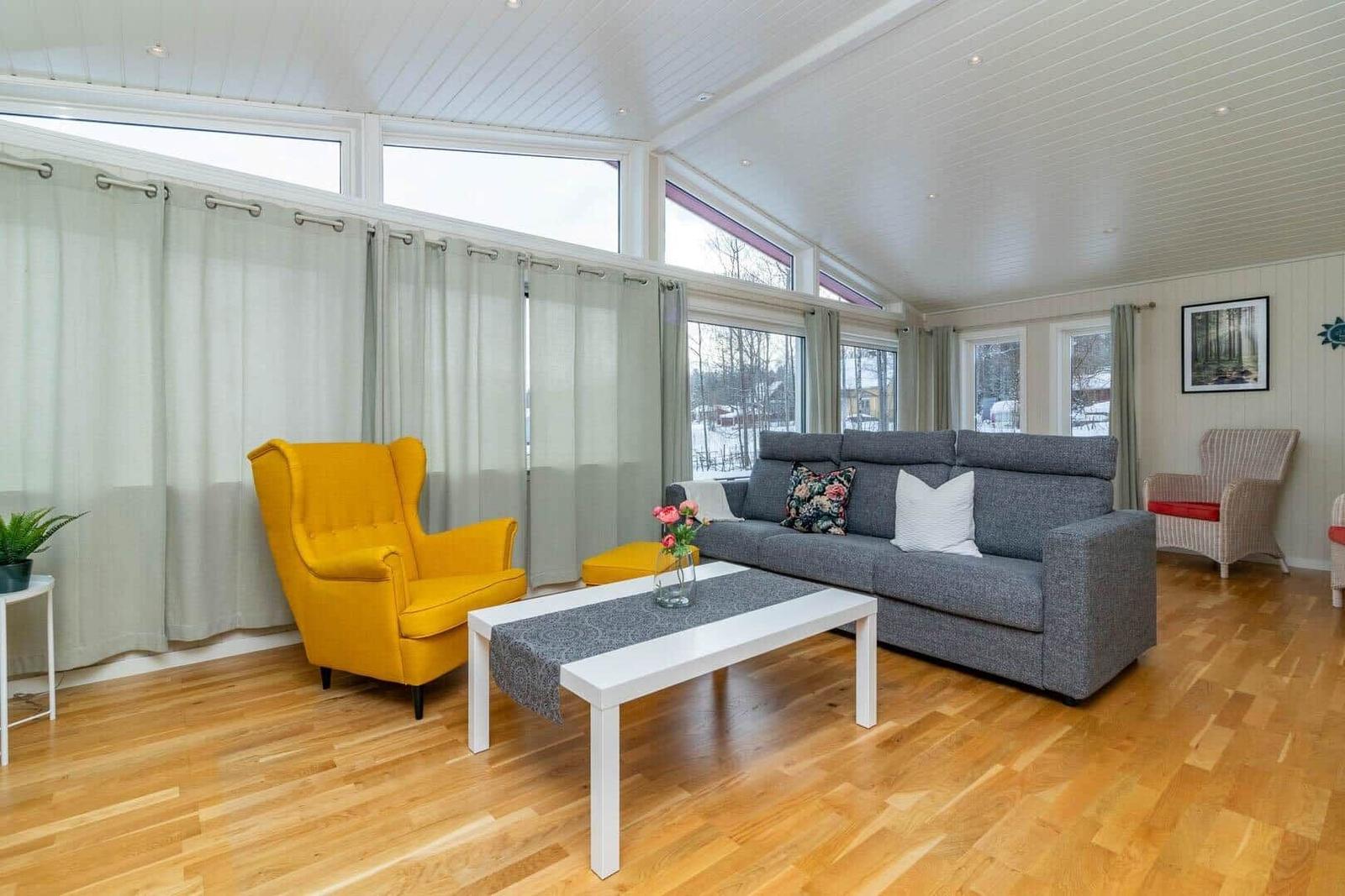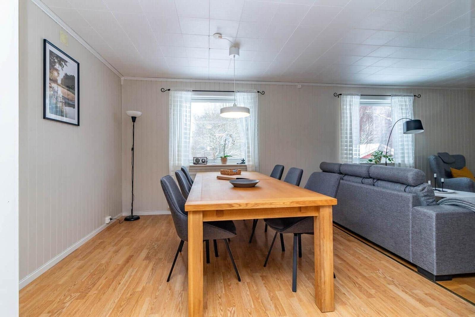 Das Ferienhaus in Fengersfors bietet auf ca. 110 m² Platz für bis zu 4 Personen und besticht durch seine moderne Ausstattung. Es verfügt über zwei Wohnzimmer, von denen eines offen zur gut ausgestatteten Küche ist. Die Küche ist mit einem 4-Platten-Cerankochfeld, Backofen, Kühlschrank, Spülmaschine, Mikrowelle und Kaffeemaschine ausgestattet. Zwei Schlafzimmer bieten komfortable Schlafmöglichkeiten: eines mit Doppelbett (180 cm × 200 cm) und das andere mit einem Etagenbett (unten 120 cm × 200 cm) und einem Spielbereich für Kinder. Zwei Badezimmer, eines mit Dusche im Erdgeschoss und das andere mit Badewanne im Keller, sowie ein Hauswirtschaftsraum mit Waschmaschine und Trockner runden das Angebot ab. Internetzugang und Kaminholz sind kostenlos verfügbar. Haustiere sind nicht gestattet. Bettwäsche und Handtücher sind von den Gästen mitzubringen.