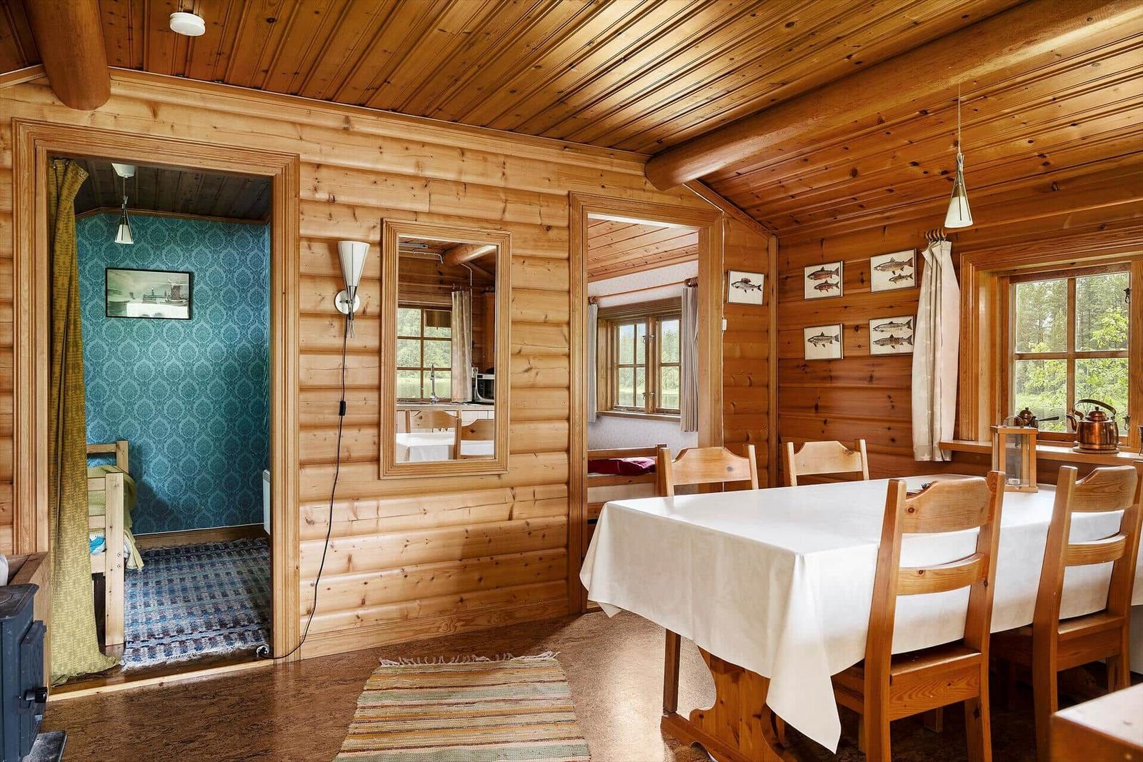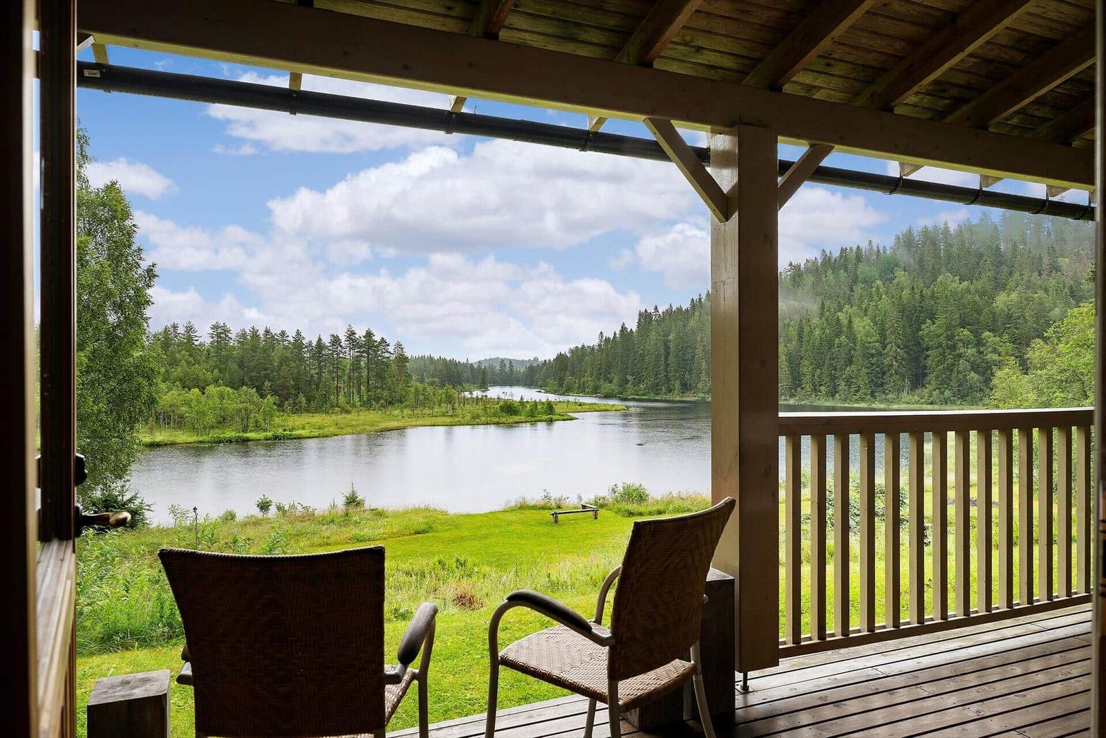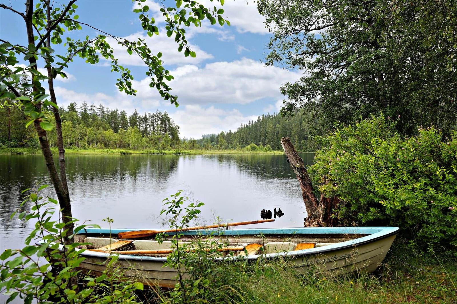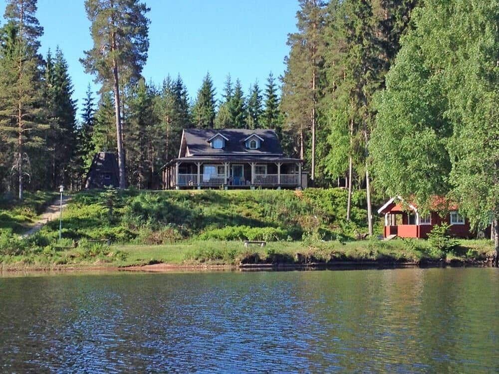 Der Außenbereich der Ferienhäuser "Vintersjön" bietet eine idyllische Lage direkt am schmalen See Vintersjön, der durch den Fluss Svartälven fließt. Auf einem großzügigen Hanggrundstück von etwa 3.000 m² gelegen, befindet sich ein kinderfreundlicher Badestrand nur 30 Meter vom Haus entfernt. Gäste können die umlaufende, überdachte Veranda des Haupthauses nutzen, die mit Gartenmöbeln ausgestattet ist und einen herrlichen Blick auf den See ermöglicht. Zudem stehen ein Ruderboot und ein Kanu zur Verfügung, um die Umgebung vom Wasser aus zu erkunden. Eine mit Holz beheizbare finnische Sauna Kota am See sorgt für Entspannung. Die Nutzung des Außenbereichs ist gemeinschaftlich, ideal für Familien oder Gruppen, die räumlich getrennt, aber gemeinsam Urlaub machen möchten. Die An- und Abreise erfolgt wöchentlich, ausschließlich samstags.