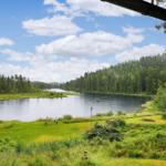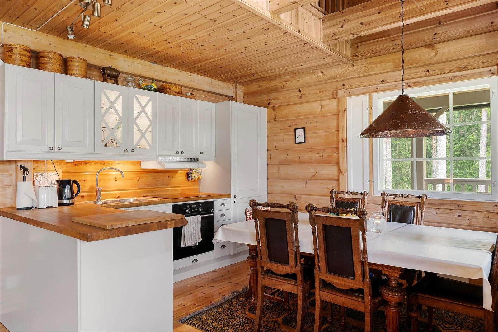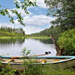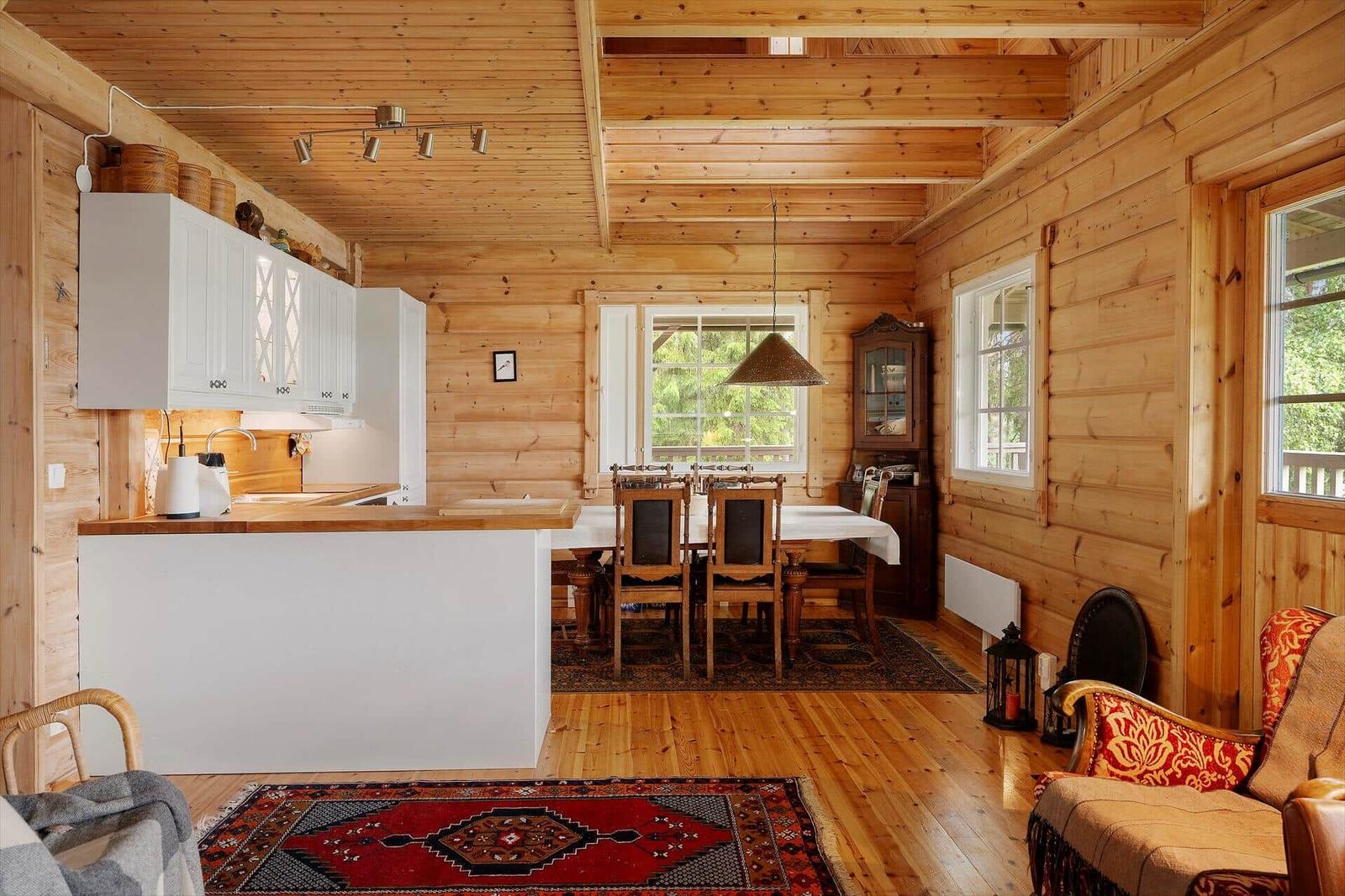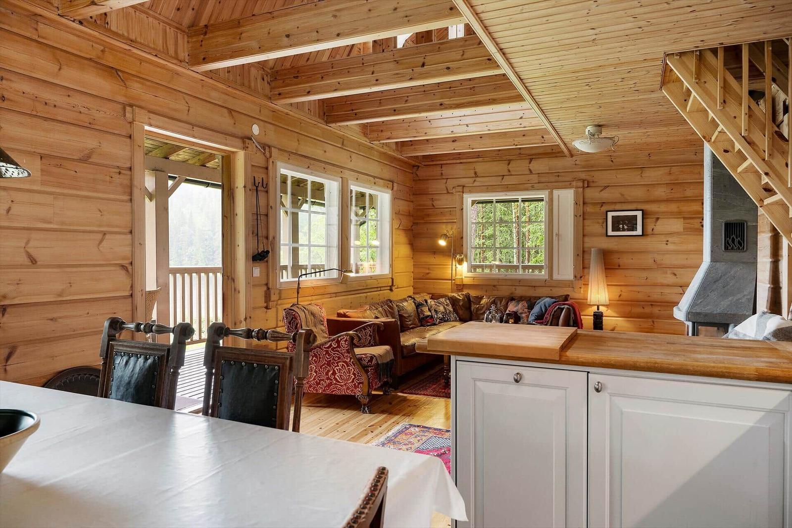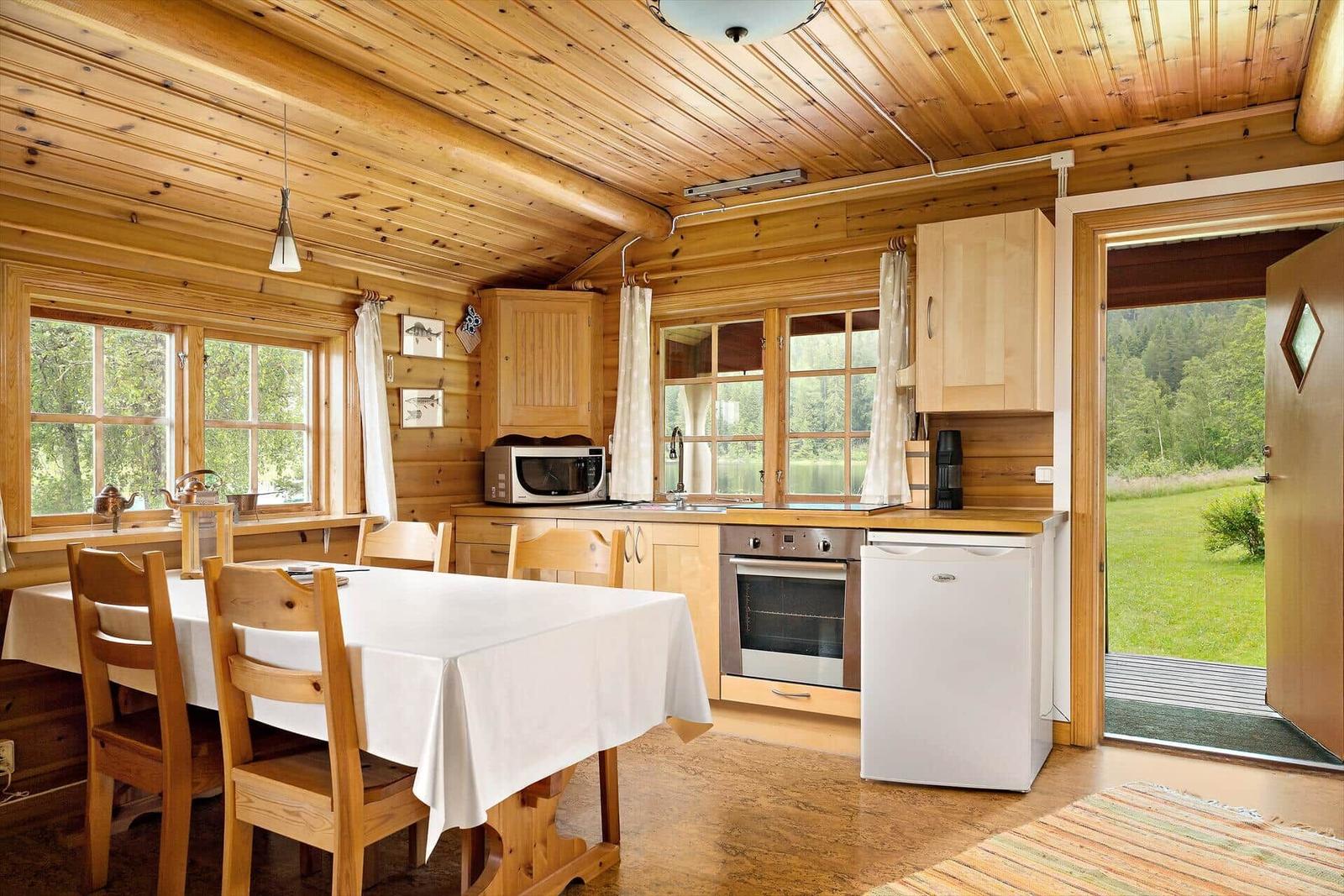 Der Außenbereich der Ferienhäuser "Vintersjön" bietet eine idyllische Lage direkt am schmalen See Vintersjön, der durch den Fluss Svartälven fließt. Auf einem großzügigen Hanggrundstück von etwa 3.000 m² gelegen, befindet sich ein kinderfreundlicher Badestrand nur 30 Meter vom Haus entfernt. Gäste können die umlaufende, überdachte Veranda des Haupthauses nutzen, die mit Gartenmöbeln ausgestattet ist und einen herrlichen Blick auf den See ermöglicht. Zudem stehen ein Ruderboot und ein Kanu zur Verfügung, um die Umgebung vom Wasser aus zu erkunden. Eine mit Holz beheizbare finnische Sauna Kota am See sorgt für Entspannung. Die Nutzung des Außenbereichs ist gemeinschaftlich, ideal für Familien oder Gruppen, die räumlich getrennt, aber gemeinsam Urlaub machen möchten. Die An- und Abreise erfolgt wöchentlich, ausschließlich samstags.